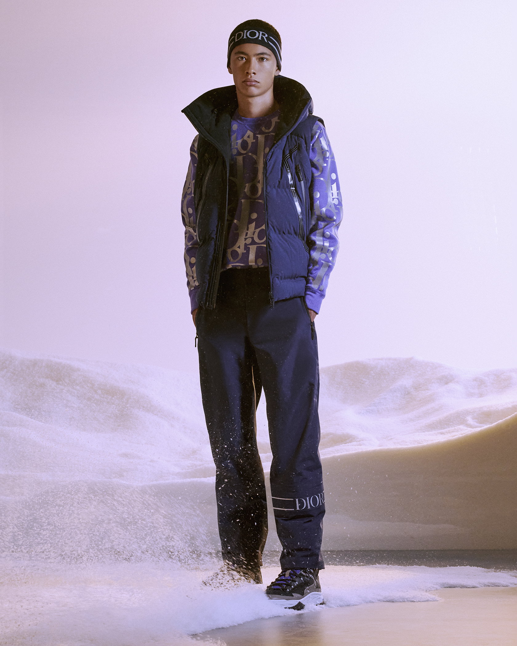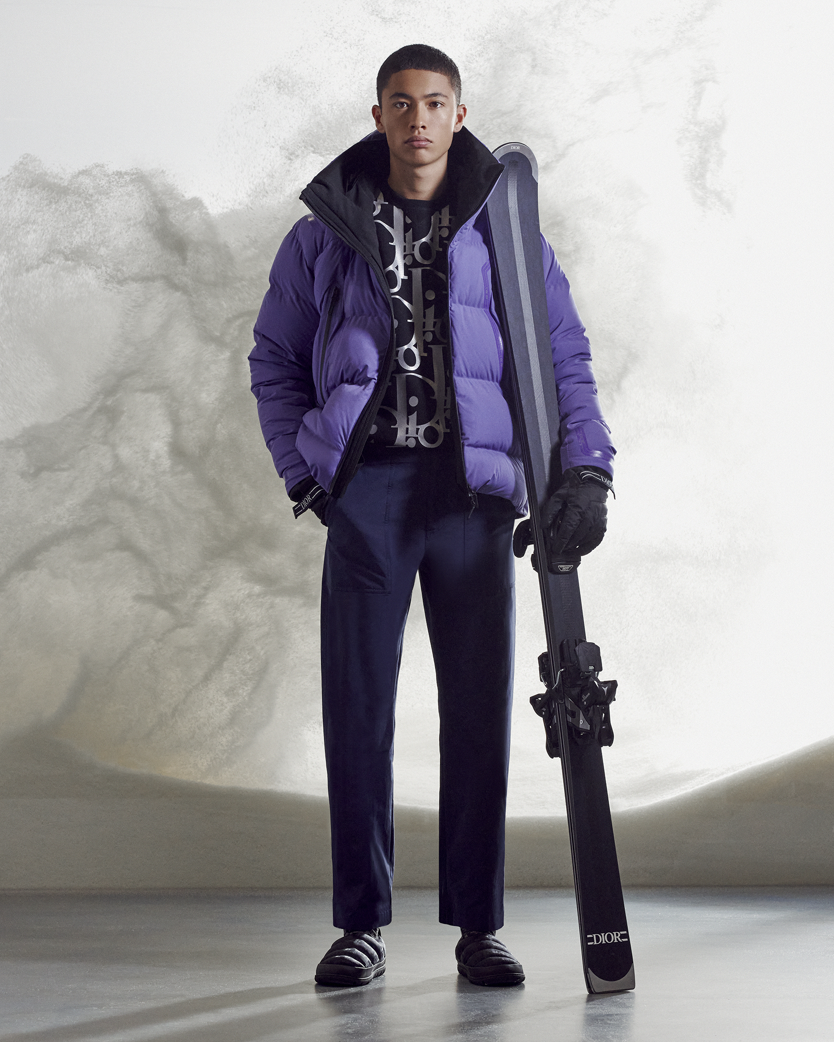 LA MAISON DIOR DÉVOILE LA TOUTE PREMIÈRE SKI CAPSULE, UNE COLLECTION INÉDITE DE PRÊT-À-PORTER, DE SKIS, DE SNOWBOARDS ET D’ACCESSOIRES, IMAGINÉE PAR KIM JONES, LE DIRECTEUR ARTISTIQUE DES COLLECTIONS HOMME, EN ÉTROITE COLLABORATION AVEC LES MARQUES DESCENTE, AK SKI ET POC. SIGNATURES DISTINCTIVES D’UNE SILHOUETTE SPORTSWEAR, CES PIÈCES DE HAUTE PERFORMANCE CONJUGUENT EXPERTISE DE POINTE ET DESIGN MINIMALISTE POUR UNE TOUCHE D’AUDACE.