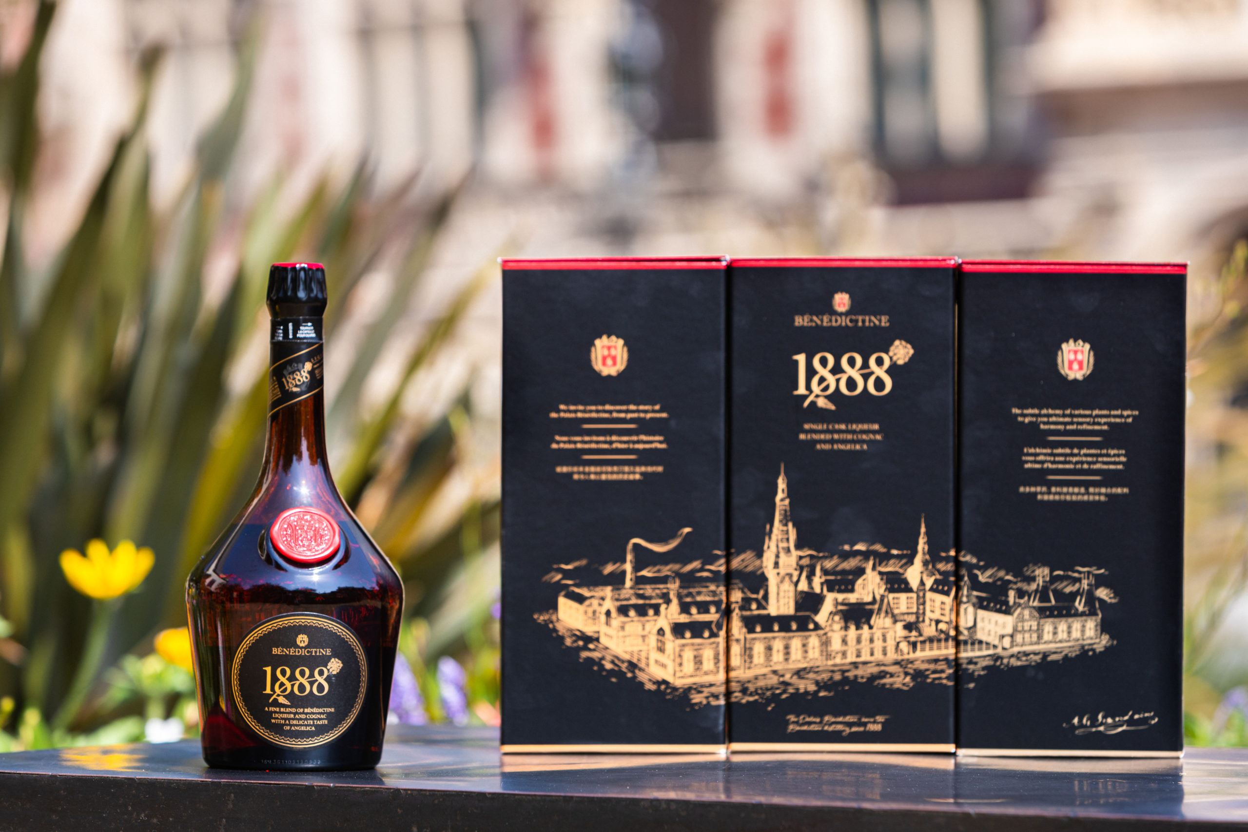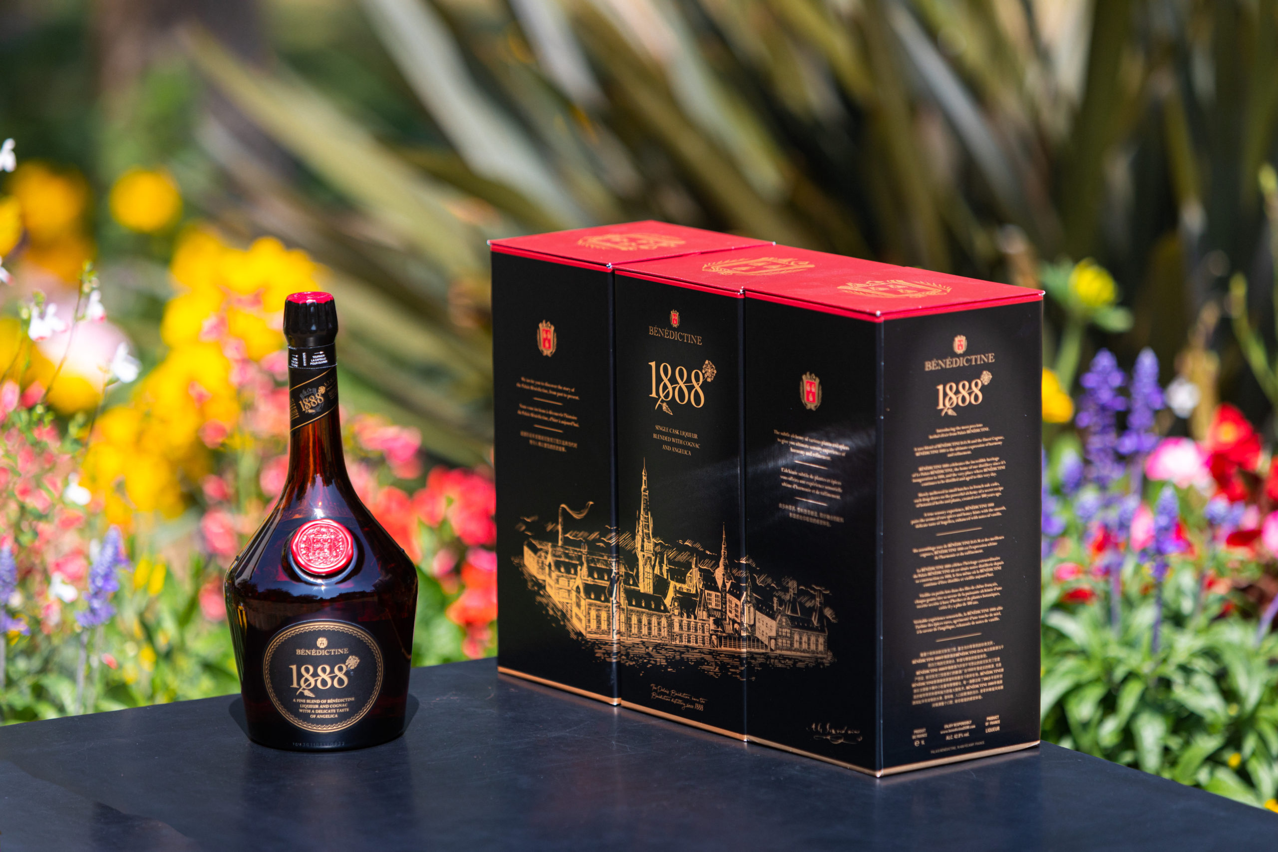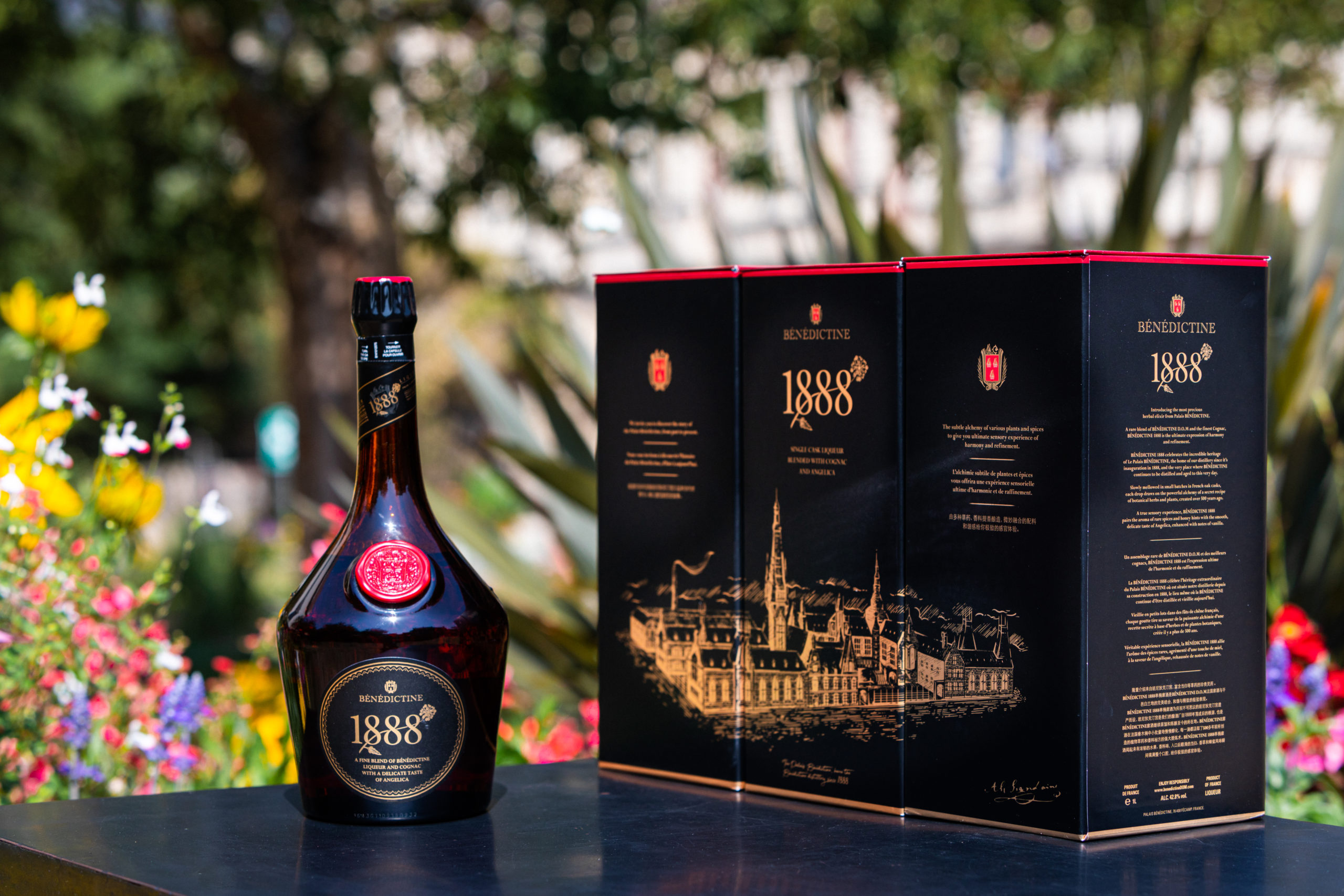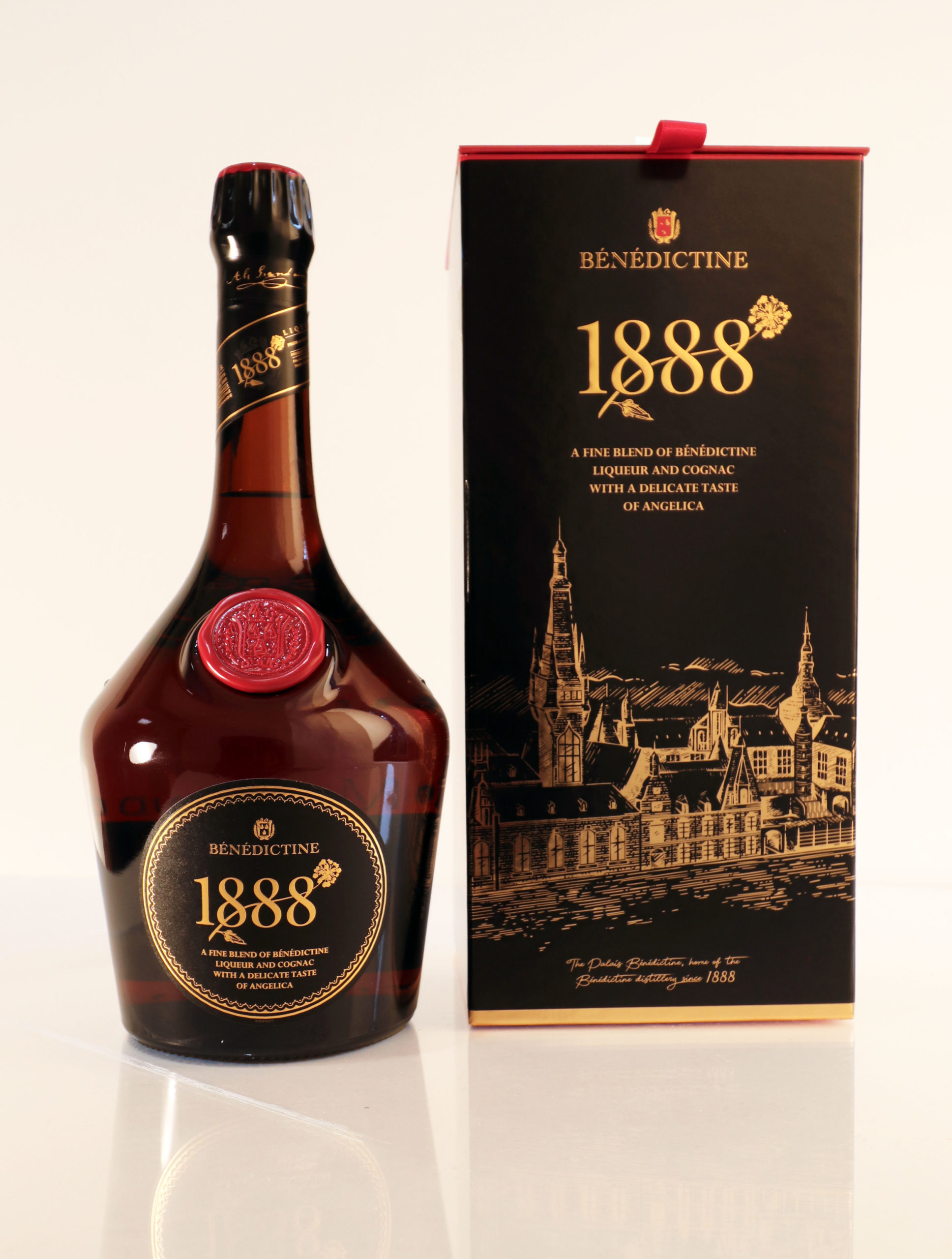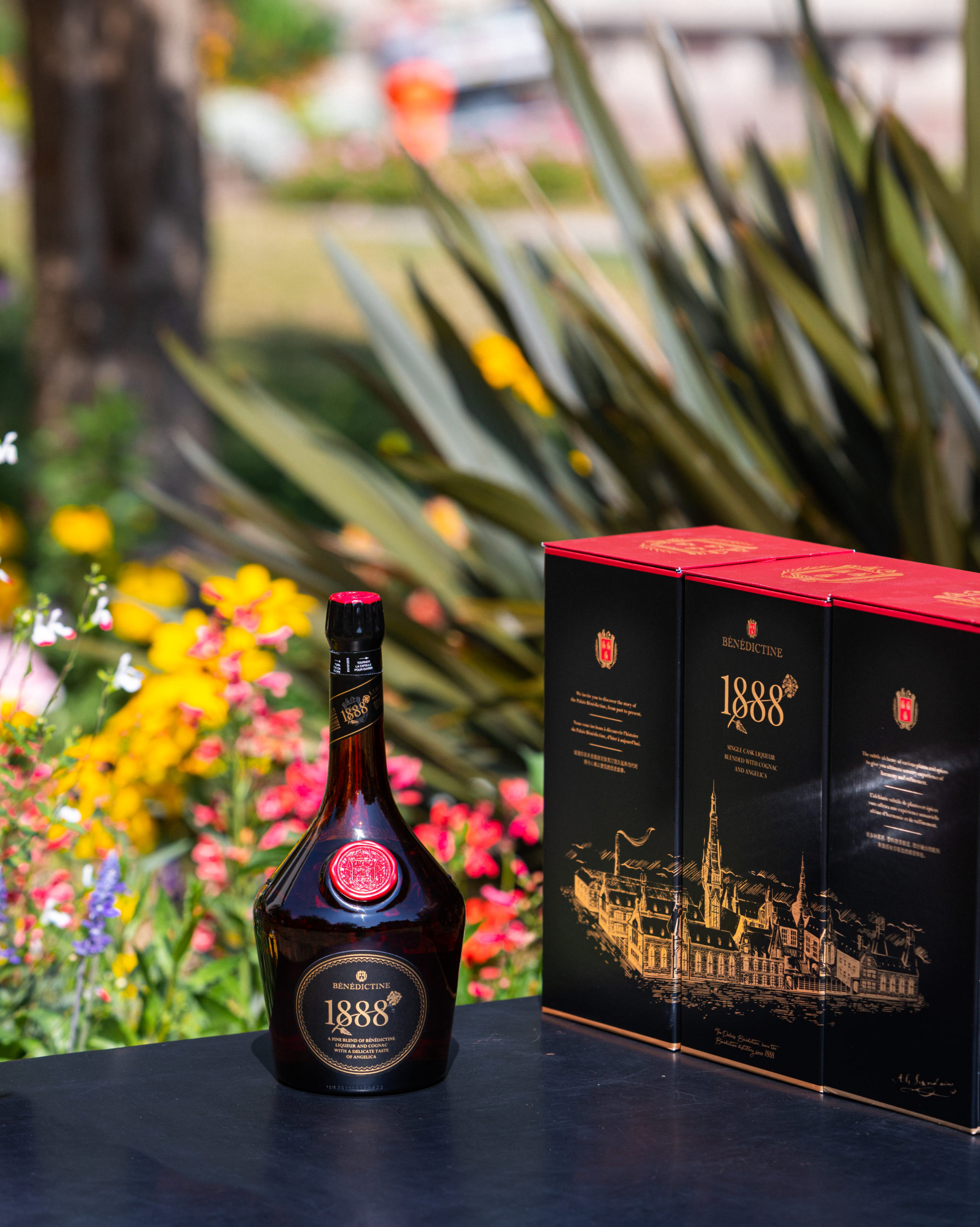 Cette nouvelle Expression est un assemblage de liqueur Bénédictine et de Cognac. Un mélange qui repose ensuite quelques mois dans des fûts de chêne français précédemment utilisés pour vieillir du cognac. Le résultat est subtil, Bénédictine 1888 est limpide, parfaitement brillante, elle présente une couleur ambrée avec de légers reflets verts et révèle au nez des notes d’agrumes et de citron qui s’enrichissent aux arômes de vanille et de miel. Le Cognac apporte une rondeur et de la chaleur. L’écrin dans lequel Bénédictine 1888 est présentée est illustré par le Palais, unique lieu d’élaboration de Bénédictine dans le monde. Cette nouvelle Expression rend hommage à l’année de l’inauguration de la distillerie.