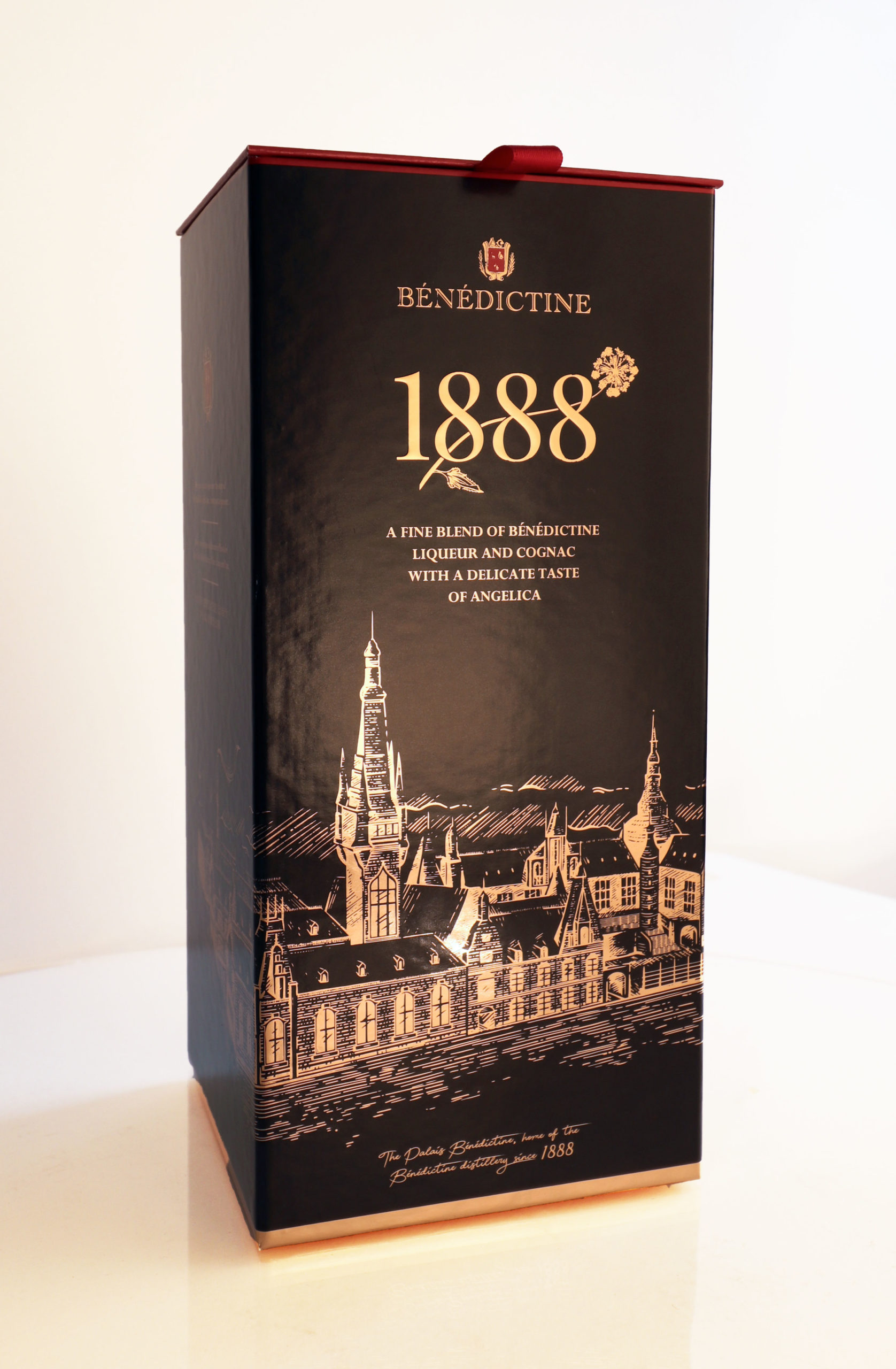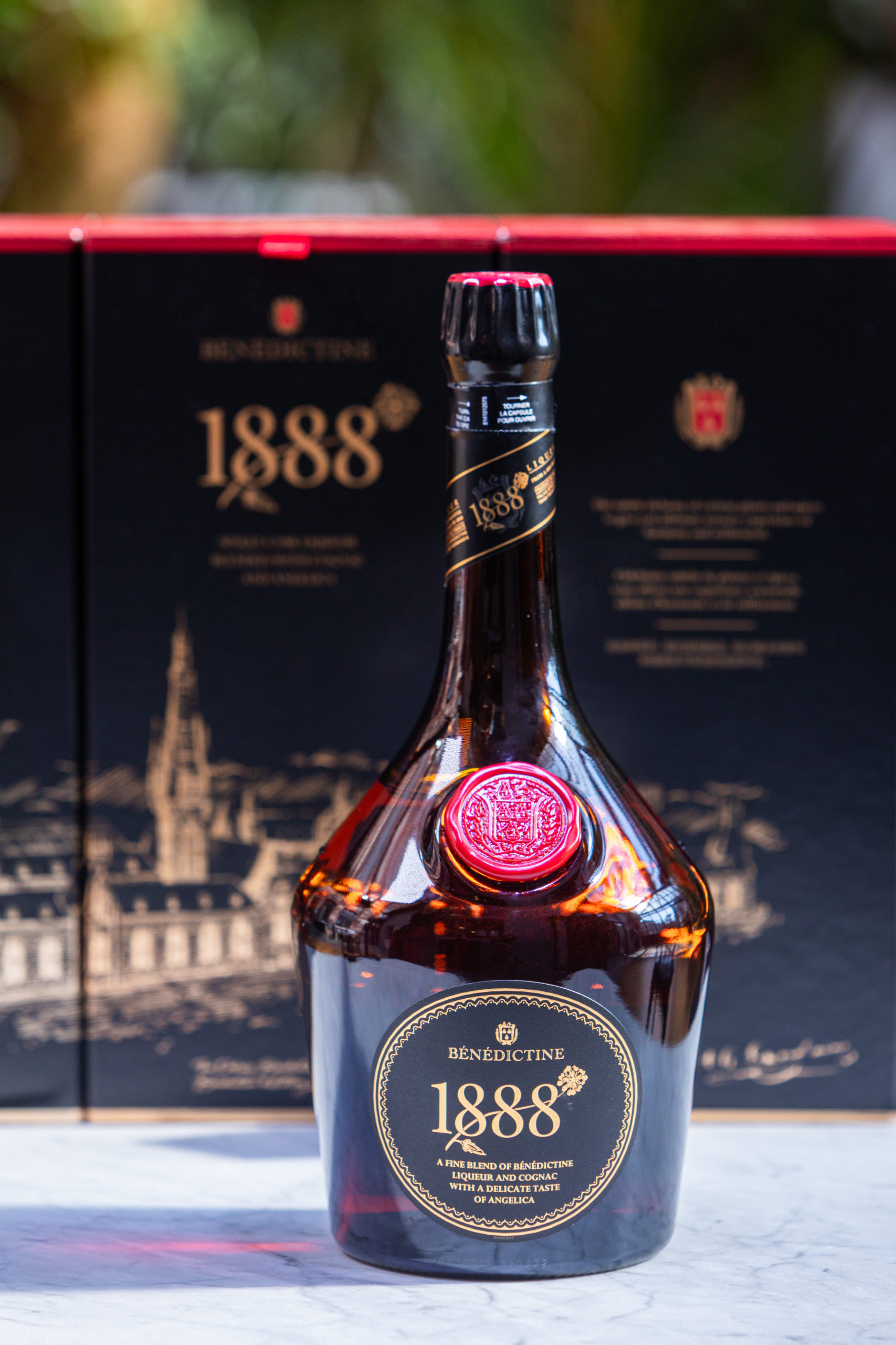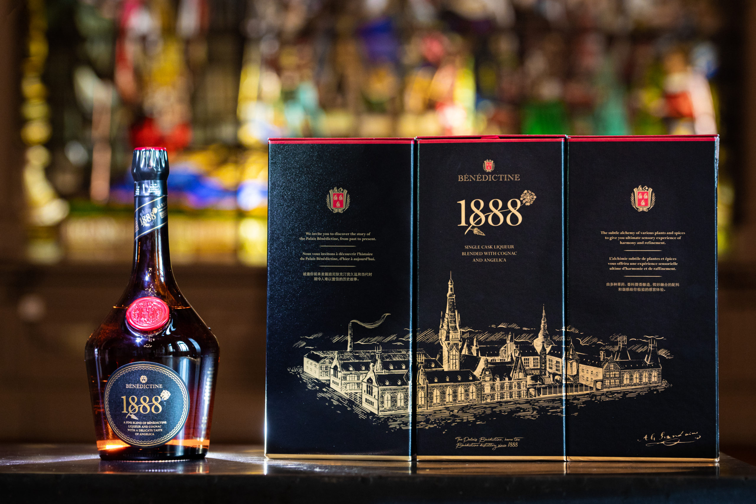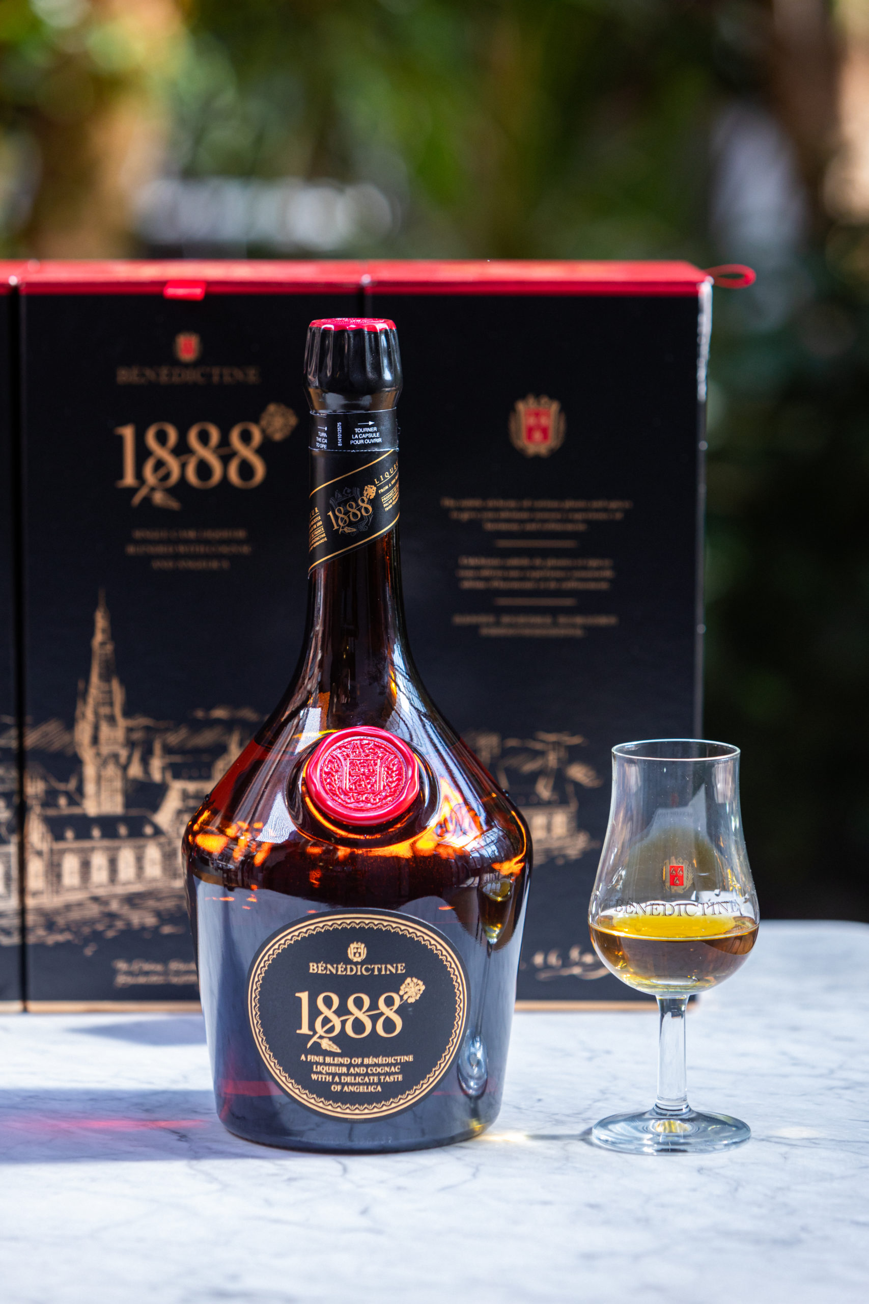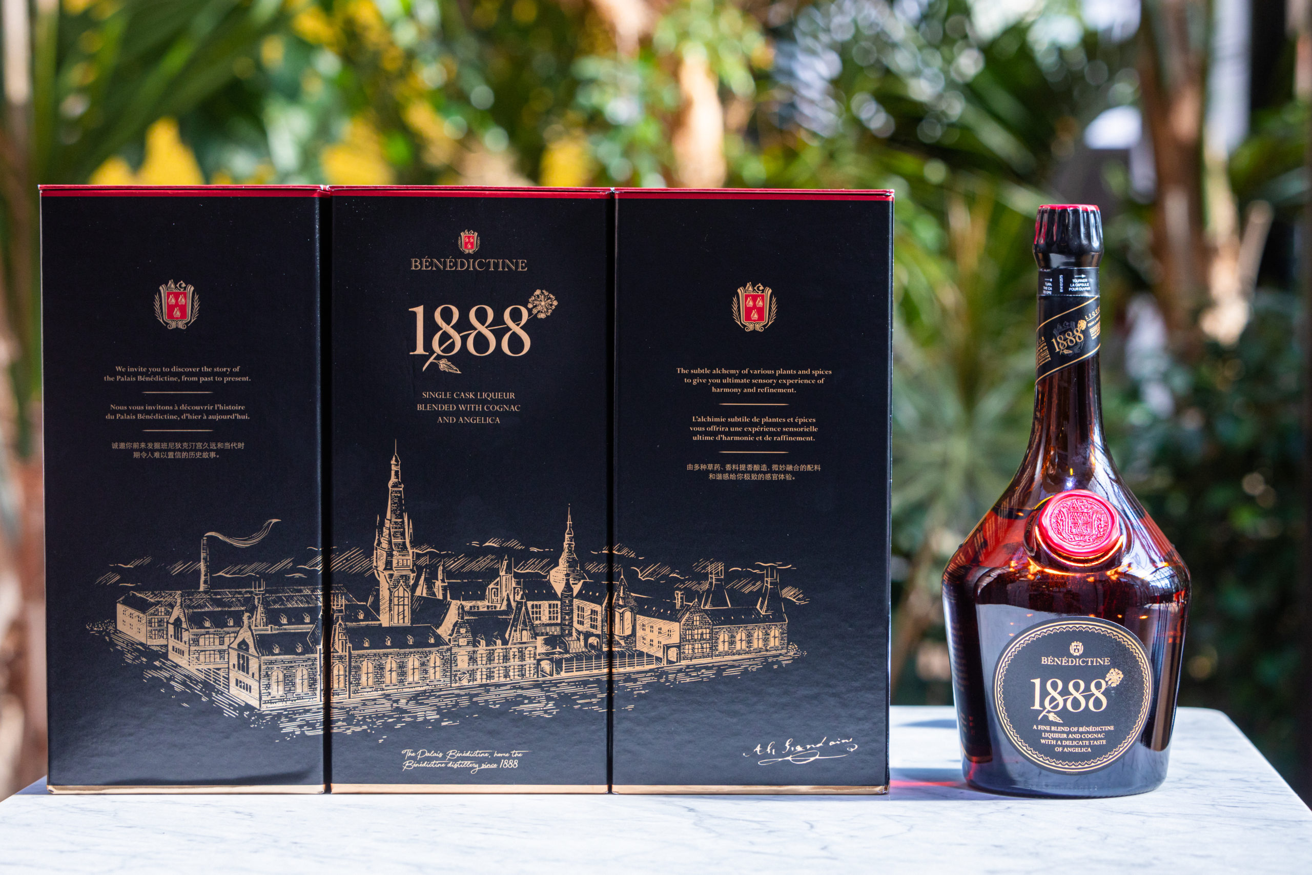 Cette nouvelle Expression est un assemblage de liqueur Bénédictine et de Cognac. Un mélange qui repose ensuite quelques mois dans des fûts de chêne français précédemment utilisés pour vieillir du cognac. Le résultat est subtil, Bénédictine 1888 est limpide, parfaitement brillante, elle présente une couleur ambrée avec de légers reflets verts et révèle au nez des notes d’agrumes et de citron qui s’enrichissent aux arômes de vanille et de miel. Le Cognac apporte une rondeur et de la chaleur. L’écrin dans lequel Bénédictine 1888 est présentée est illustré par le Palais, unique lieu d’élaboration de Bénédictine dans le monde. Cette nouvelle Expression rend hommage à l’année de l’inauguration de la distillerie.