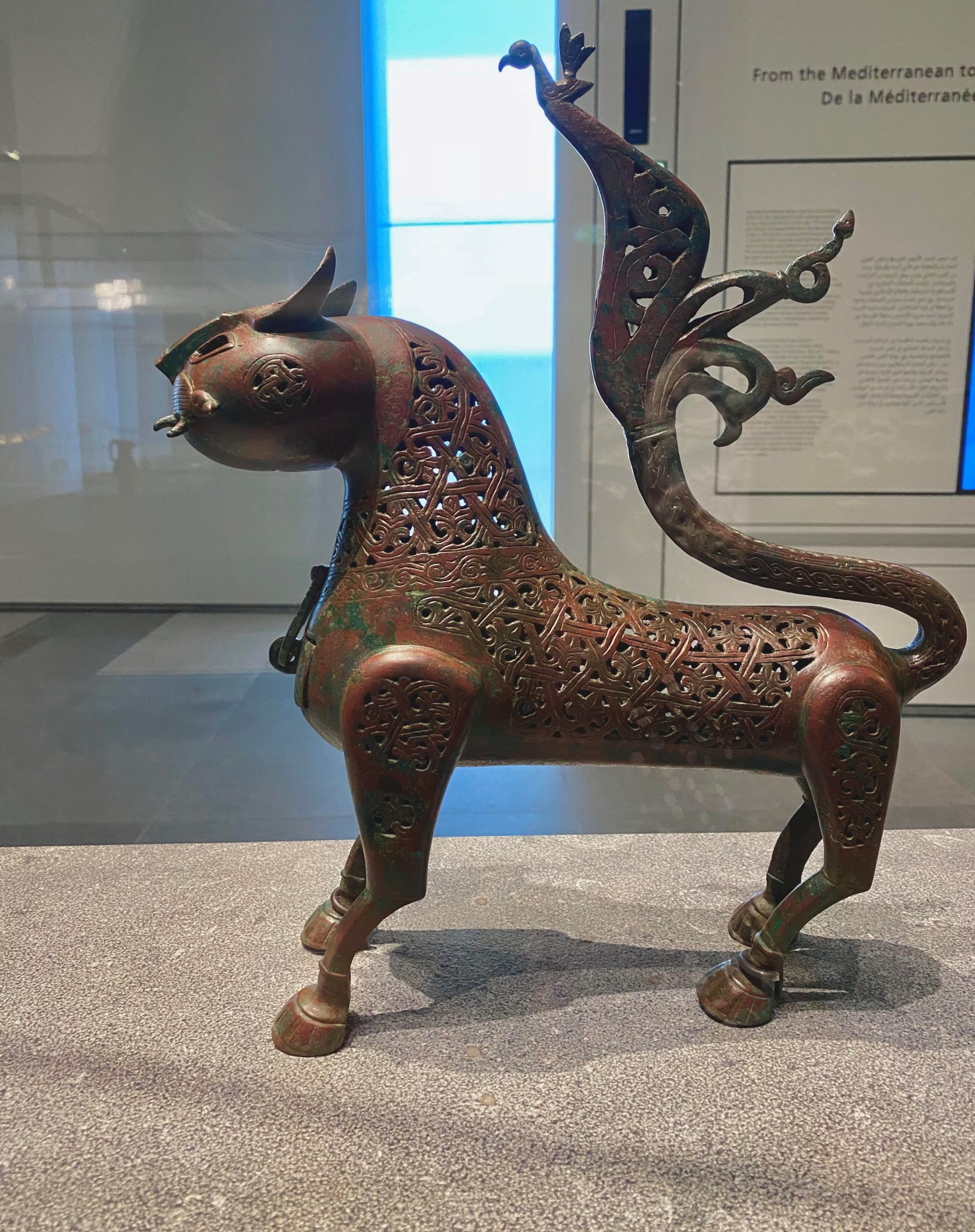 De nouvelles acquisitions sont venues agrandir la collection permanente du Louvre Abu Dhabi, dont plusieurs pièces au début de la ligne chronologique de la créativité humaine proposée par le musée. Une Figure sumérienne de femme en prière (du Mésopotamie du troisième siècle), vient enrichir la réflexion sur les croyances religieuses dans la galerie introductive, et sera présentée à côté d’une Statue égyptienne de figure agenouillée (vers 4ème-7ème siècle, Égypte). Une sculpture jaïn d’un Jina debout (11ème siècle, Inde) rejoint la galerie qui explore les routes commerciales asiatiques, tandis qu’un Brûle-parfum en forme de félin (11ème siècle, Asie centrale), de facture exceptionnelle, se trouve désormais en tête à tête avec la renommée Aquamanile en forme de lion de la collection du Louvre Abu Dhabi (13ème siècle, Allemagne du nord).