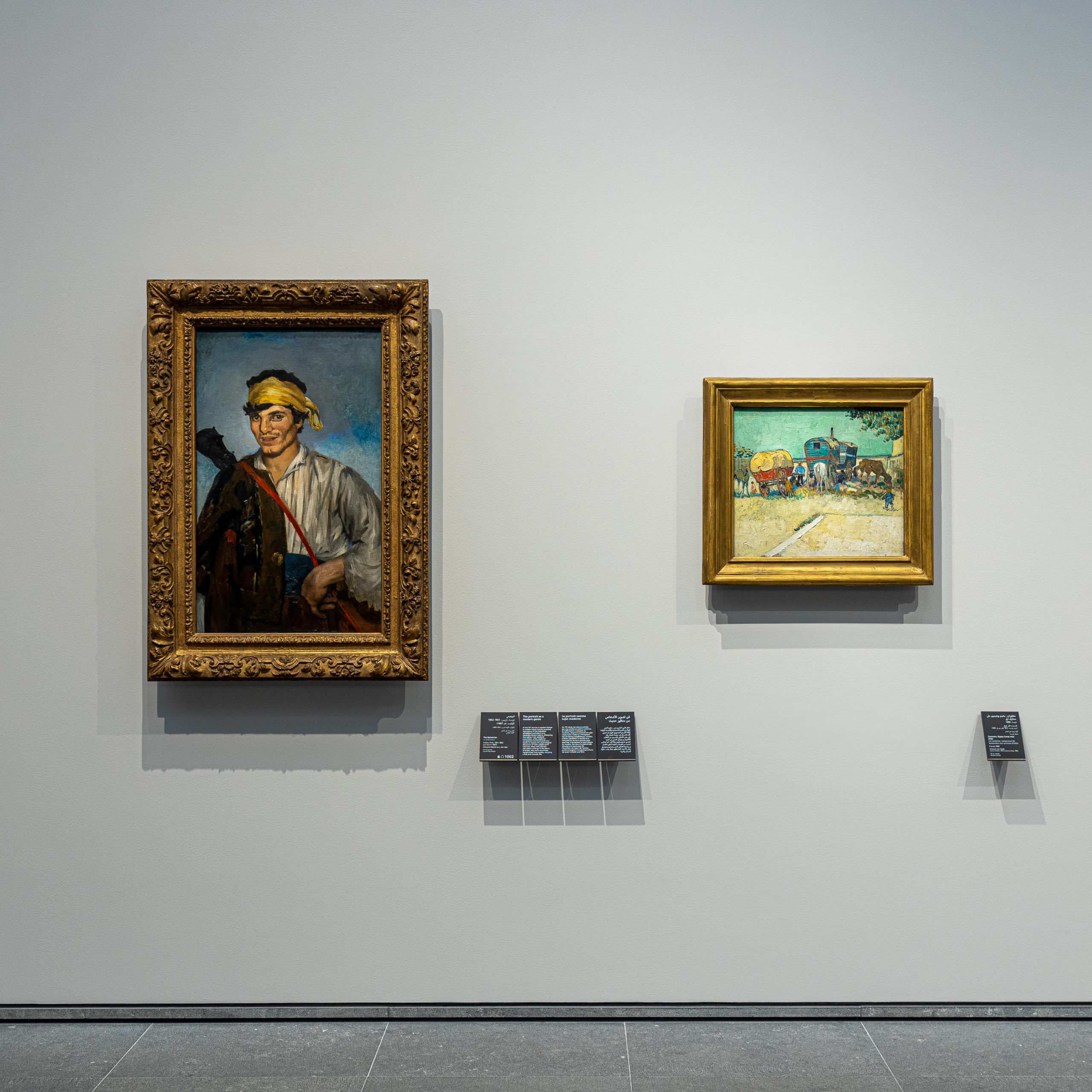 La stratégie de conservation du Louvre Abu Dhabi s’articule autour d’histoires qui célèbrent les connexions culturelles – une forme de vision empathique dont nous avons crucialement besoin aujourd’hui. Ces connexions s’expriment à travers un assemblage d’œuvres qui transcende les cultures, l’espace et le temps. Grâce à un système de rotation annuelle, où il reçoit des prêts d’institutions partenaires, le musée propose désormais, dans ses galeries permanentes, des chefs d’œuvre du musée d’Orsay, dont La Famille Bellelli, de Edgar Degas (1858-1869), le Pont du chemin de fer à Chatou, de Pierre-Auguste Renoir (1881), Les Roulottes, campement de bohémiens aux environs d’Arles, de Vincent Van Gogh (1888), Meules, fin de l’été, de Claude Monet (1891), L’arrivée du « La Fayette » à New-York, de Eugène Louis Gillot (début du 20ème siècle), le Vieil homme devant des tombeaux d’enfants, d’Osman Hamdi Bey (1903), et Décor méridional, le Cannet de Pierre Bonnard (1928). Le musée expose également plusieurs cartes et manuscrits précieux, prêtés par la Bibliothèque nationale de France, qui couvrent une période allant du 14 au 18ème siècle. Il s’agit de textes sacrés et scientifiques originaires de Syrie, de France, d’Égypte, d’Inde, ou d’Iran, parmi lesquels on compte des écritures au fondement des trois grandes religions abrahamiques – le judaïsme, le christianisme et l’islam.