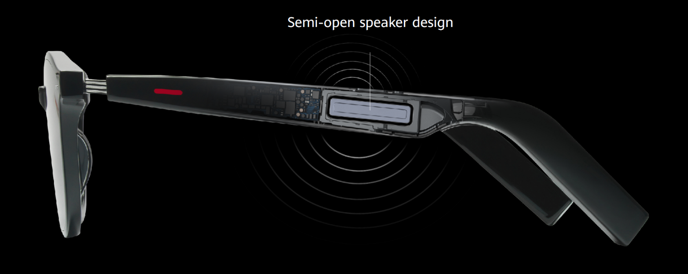 Les lunettes Eyewear II présentent également des fonctionnalités acoustiques uniques dans un design discret, avec un haut-parleur semi-ouvert de chaque côté des branches, qui dirige le son directement vers l’oreille du porteur via la chambre sonore directionnelle. Cela réduit efficacement la perte de son tout en offrant une expérience stéréo plus claire et plus riche. Par ailleurs, les deux branches sont dotées d’un dispositif qui permet de compenser les ondes sonores directionnelles générées par les cavités sonores, réduisant un peu plus la perte de son. Dotées d’une technologie de réglage du volume, les Eyewear II baissent automatiquement le volume en fonction de l’environnement sonore, ce qui garantit à l’utilisateur un son clair tout en gênant le moins possible les personnes autour de lui. Audio intelligent, interaction intelligente