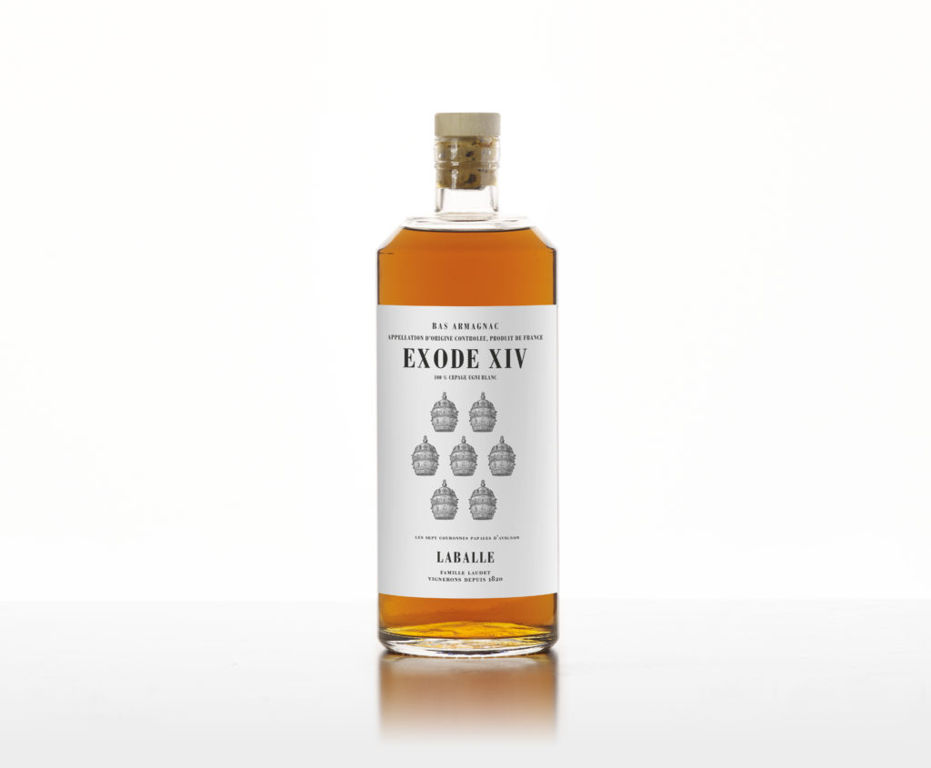 Pour Exode XIV, un Bas-Armagnac 100% Ugni Blanc (43%), le Domaine Laballe a souhaité transmettre l’histoire de ce cépage aux influences italiennes, désormais très présent dans le Sud-Ouest.