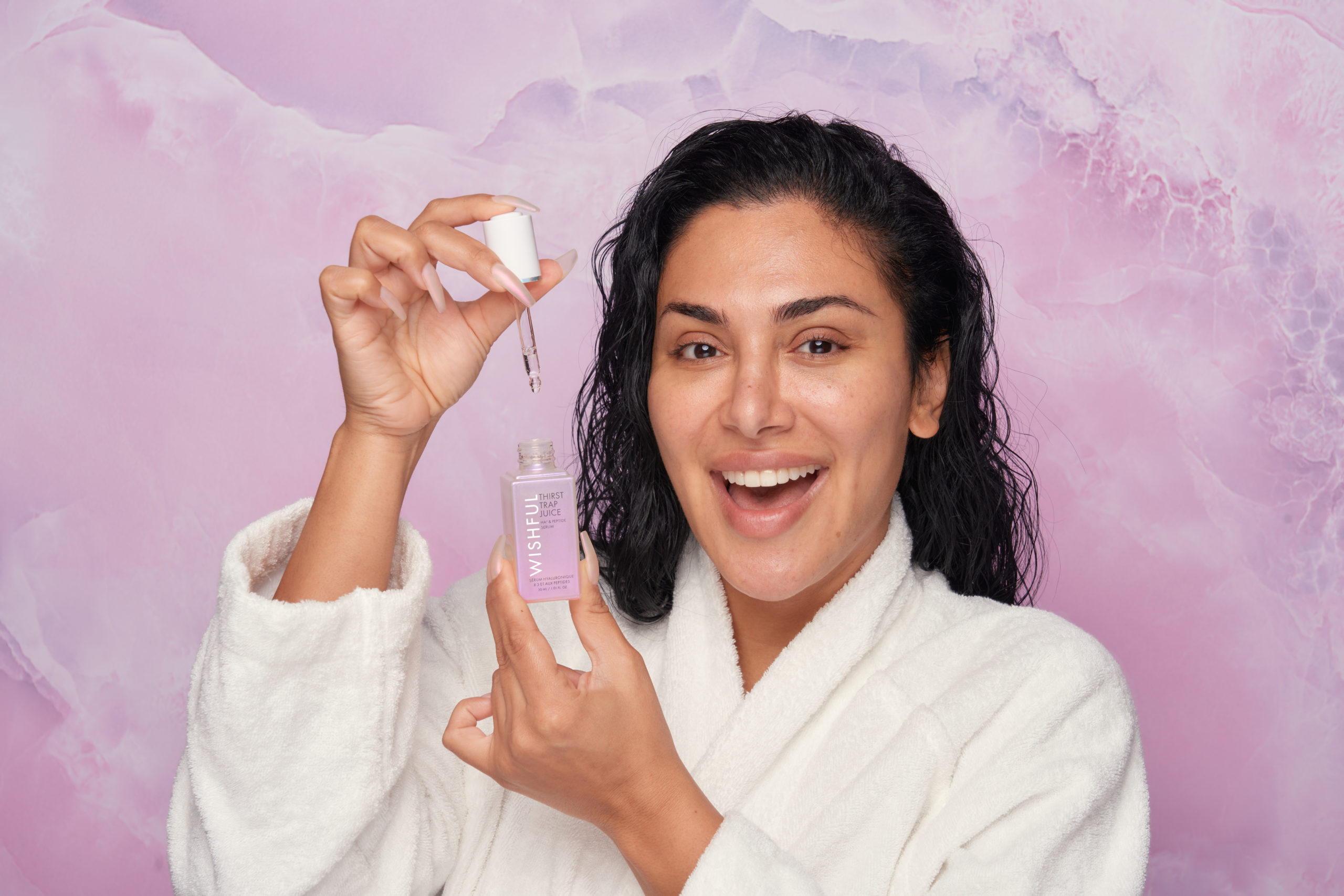 Véritable adepte du Thirst Trap Cocoon Mask de WISHFUL, Huda n’a pas hésité à décliner sa formule super hydratante dans un format flacon, et à lui ajouter encore plus d’acide hyaluronique et de peptides raffermissants. Le nouveau concentré désaltérant Thirst Trap Juice HA3 & Peptide Serum de WISHFUL offre donc tous les bienfaits du super masque hydratant avec encore plus d’efficacité ! Une vague d’hydratation instantanée et durable grâce à une formule puissante pour un éclat immédiat et des résultats réparateurs à long terme. Gorgé d’ingrédients qui raffermissent, fortifient et améliorent la souplesse et l’élasticité de la peau, ce sérum ultra efficace apporte un glow à faire pâlir de jalousie tous les fans de skincare.