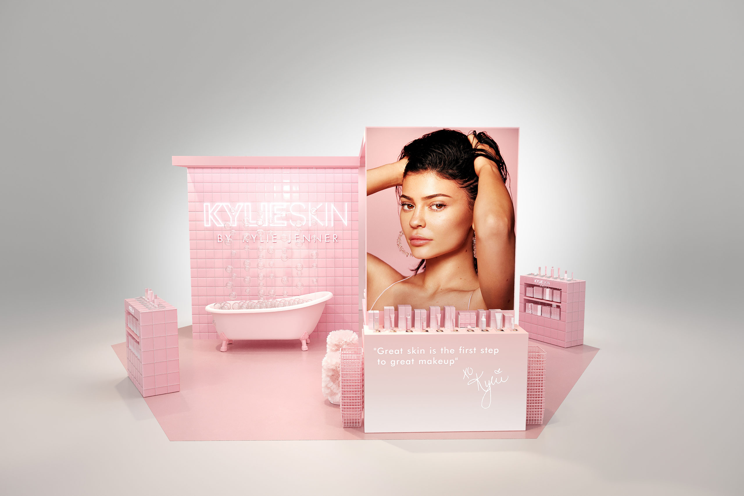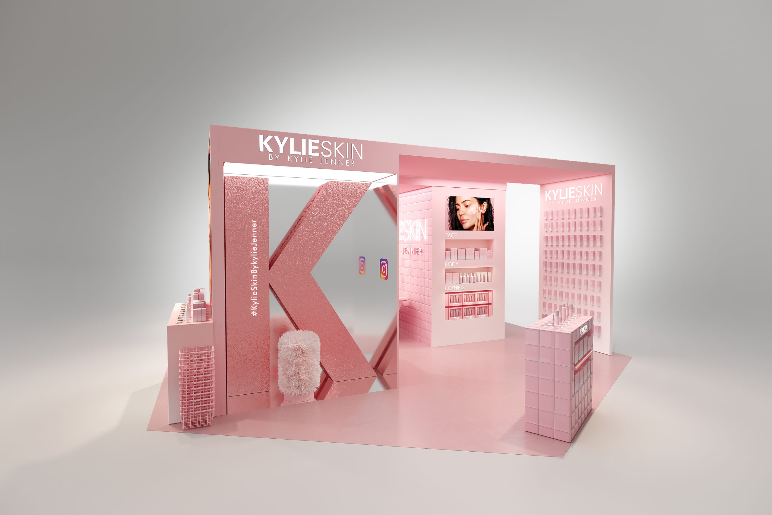Du 25 janvier au 16 février 2021, Kylie Jenner dévoile neuf produits phares de sa ligne de soins visage et corps dans un pop-up store immersif imaginé pour les Galeries Lafayette Champs-Elysées.