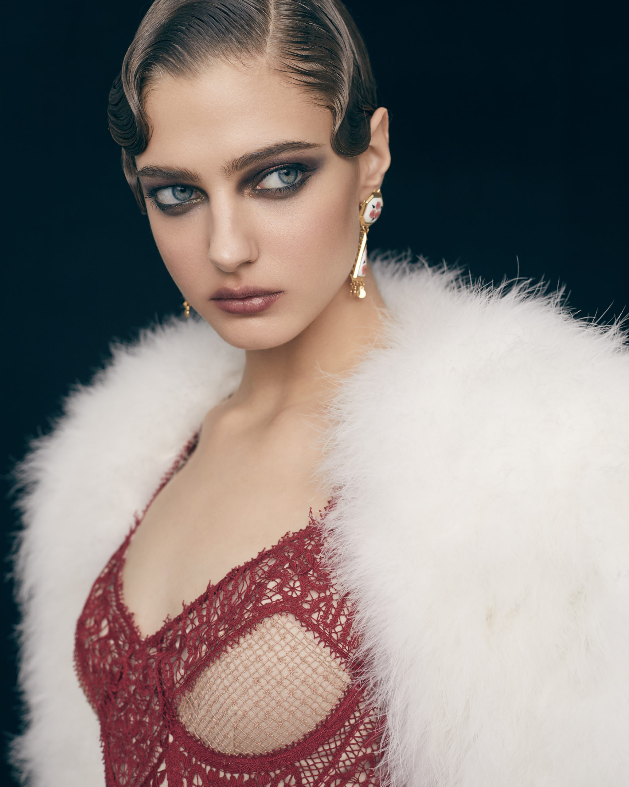 Vera, known as “the queen of the screen, » charmed audiences with her gracious beauty and the piercing gaze of her bottomless eyes, drowning in a sea of dark shadows—an image that became a classic over the short, but thrilling few years of her career. Almost a hundred years later, Ulyana pays an homage to her image and tells the story of a heroine of a new era: bohemian and romantic, strong and brave, and unflappably elegant.