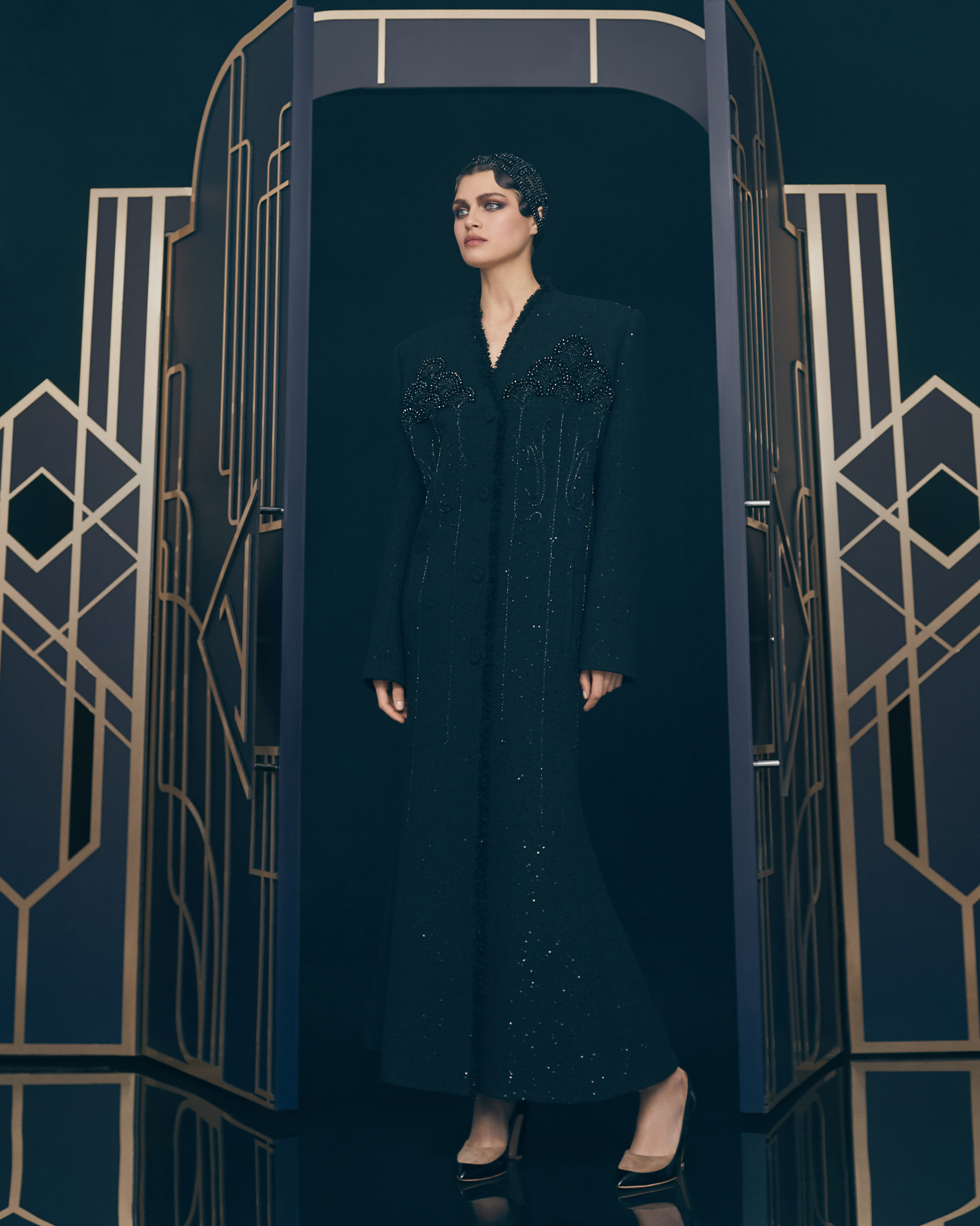 The character of all the collection’s elements and artistic approaches was inspired by Art-Déco — the ruling style of the 1920s when the icons of the brand’s collection lived and worked. The style’s influence can be traced through the combination of textures, the nature of the lines and silhouettes, the choice of colors, and the graphic focus of the ornamentation and embroidery. In the new collection, all of the attention is devoted, as usual, to natural fabrics, manual labor, and the exquisite quality of the pieces.