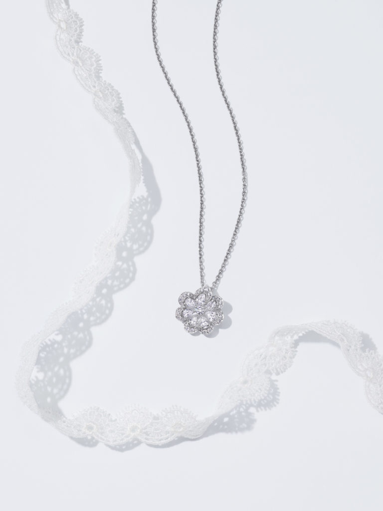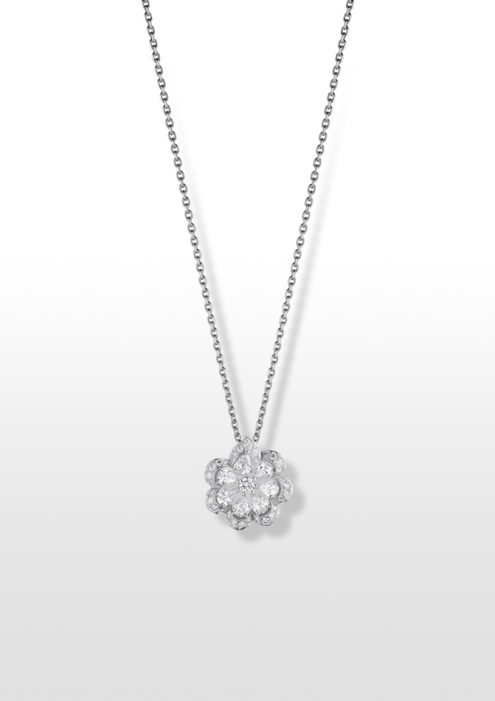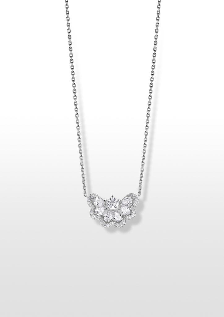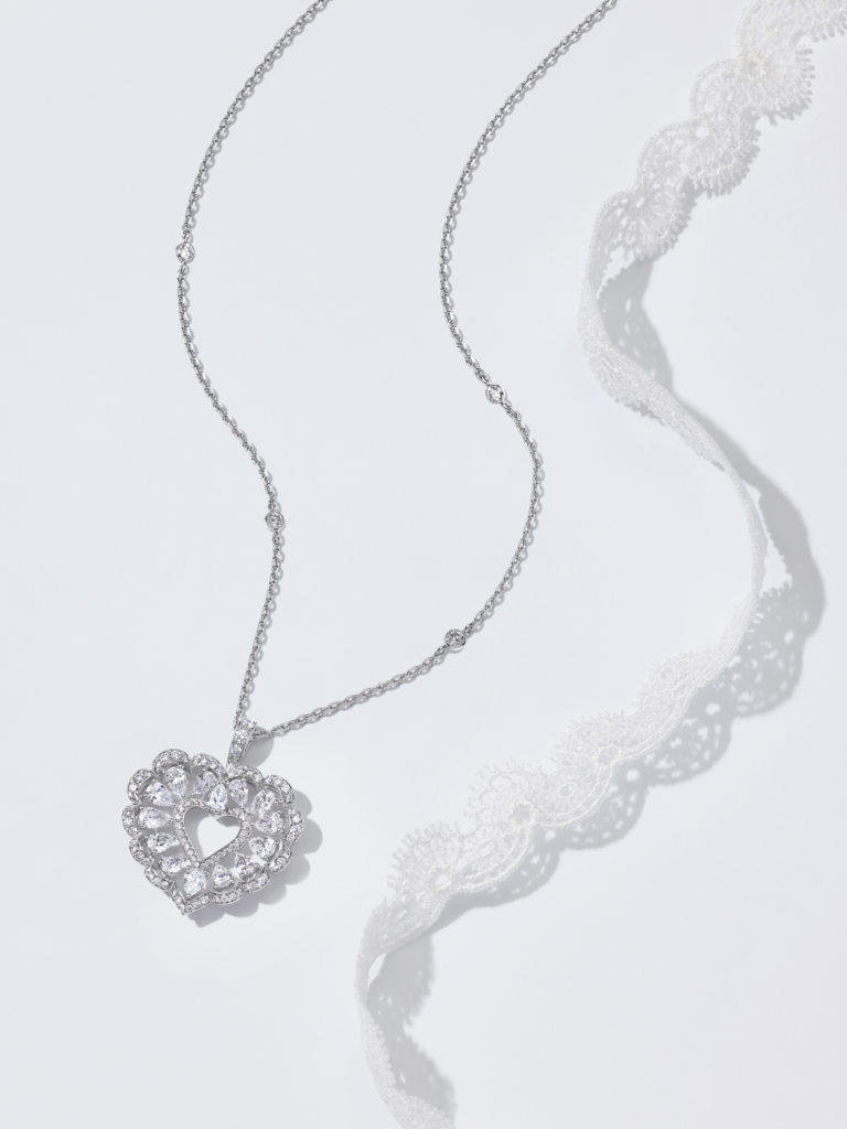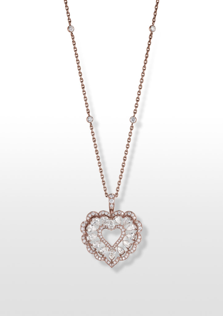 Leurs motifs font écho aux motifs floraux, aux arabesques, aux ondoiements et aux bords festonnés des fines dentelles d’autrefois. Le motif central de la collection Precious Lace – une volute rythmée et ondulante en or sertie de diamants, entourant une ligne déroulante de diamants taille poire – est maintenant miniaturisé à travers quatre dessins. Le premier, en « Vague », avec ses proportions évoquant les rouleaux d’écume se formant sur la mer, se décline en une paire de boucles d’oreilles, un pendentif et une bague. Le motif de fleur stylisée, appelé « Mini-Froufrou », avec ses bordures festonnées et ses pétales de diamant taille poire sur un fond ajouré, est travaillé en bague, en boucles d’oreilles, en pendentif et en un bracelet jonc. Un fleuron semi-circulaire de style similaire devient un pendentif et une chaîne de cou, des boucles d’oreilles et une bague dits « Nuage ». Enfin, Chopard offre à son iconique pendentif « Cœur » le traitement Precious Lace, dans deux choix de taille.
