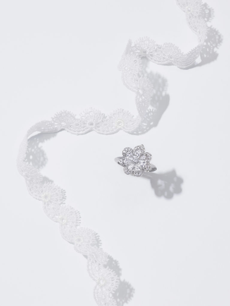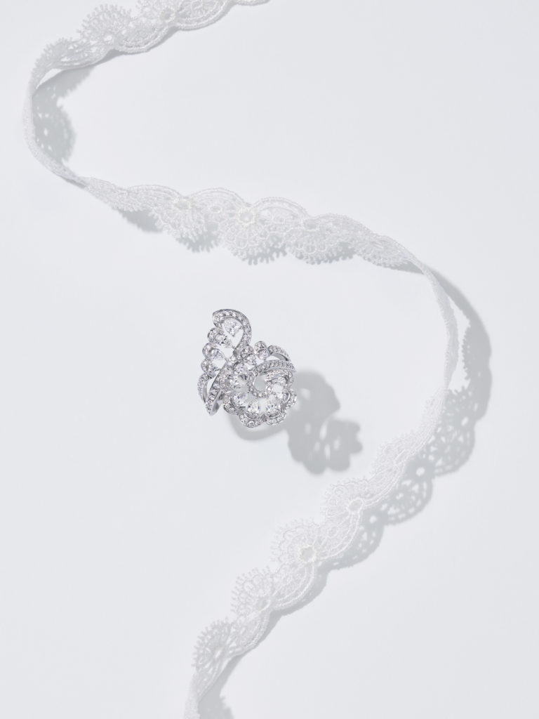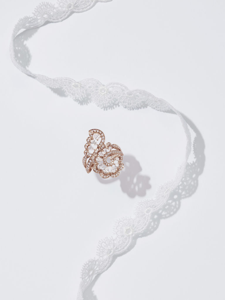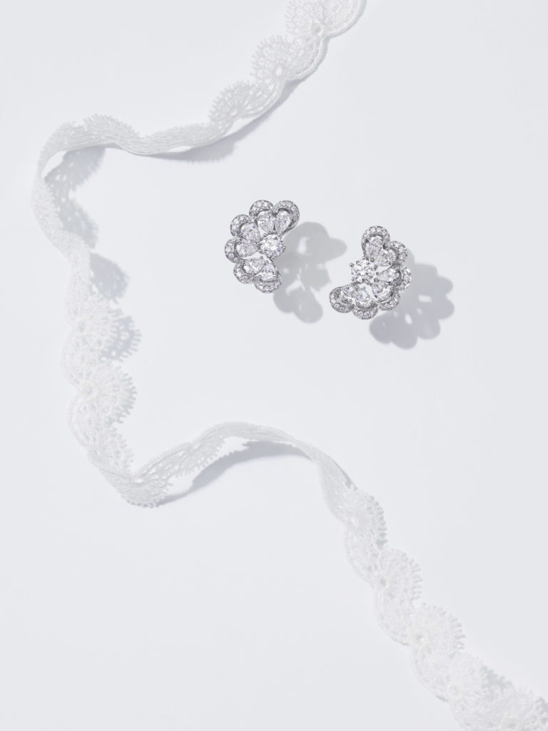 Avec Precious Lace, l’effet d’une dentelle exquise faite à la main est recréé par le jeu des diamants taille poire et taille brillant, en jouant de leurs formes et de leurs silhouettes dans l’espace ajouré de chaque motif, afin d’apporter une cadence lyrique, une fluidité ludique et une stylisation contemporaine au classicisme absolu du thème. La délicatesse de la dentelle est reproduite par l’extrême précision du travail de l’or, des montures très fines et un côté aérien qui se conjuguent pour mettre en valeur l’éclat des diamants, tout en démontrant le savoir-faire ultime des artisans de la Maison. Un savoir-faire proche de celui des petites mains de la Haute Couture dont Chopard partage les valeurs : choix des matériaux les plus nobles, sens du détail, confort au porter et surtout, amour des femmes.