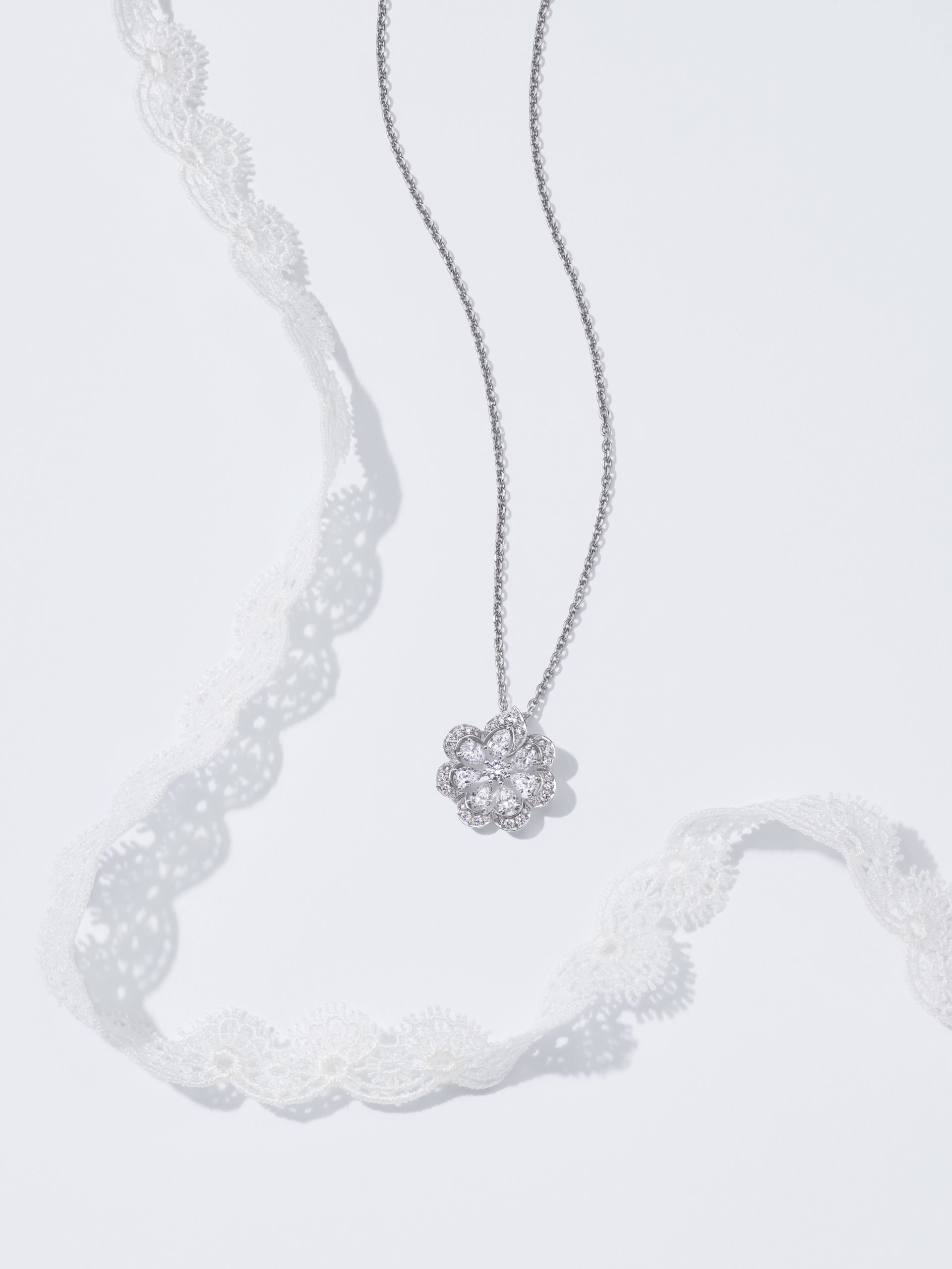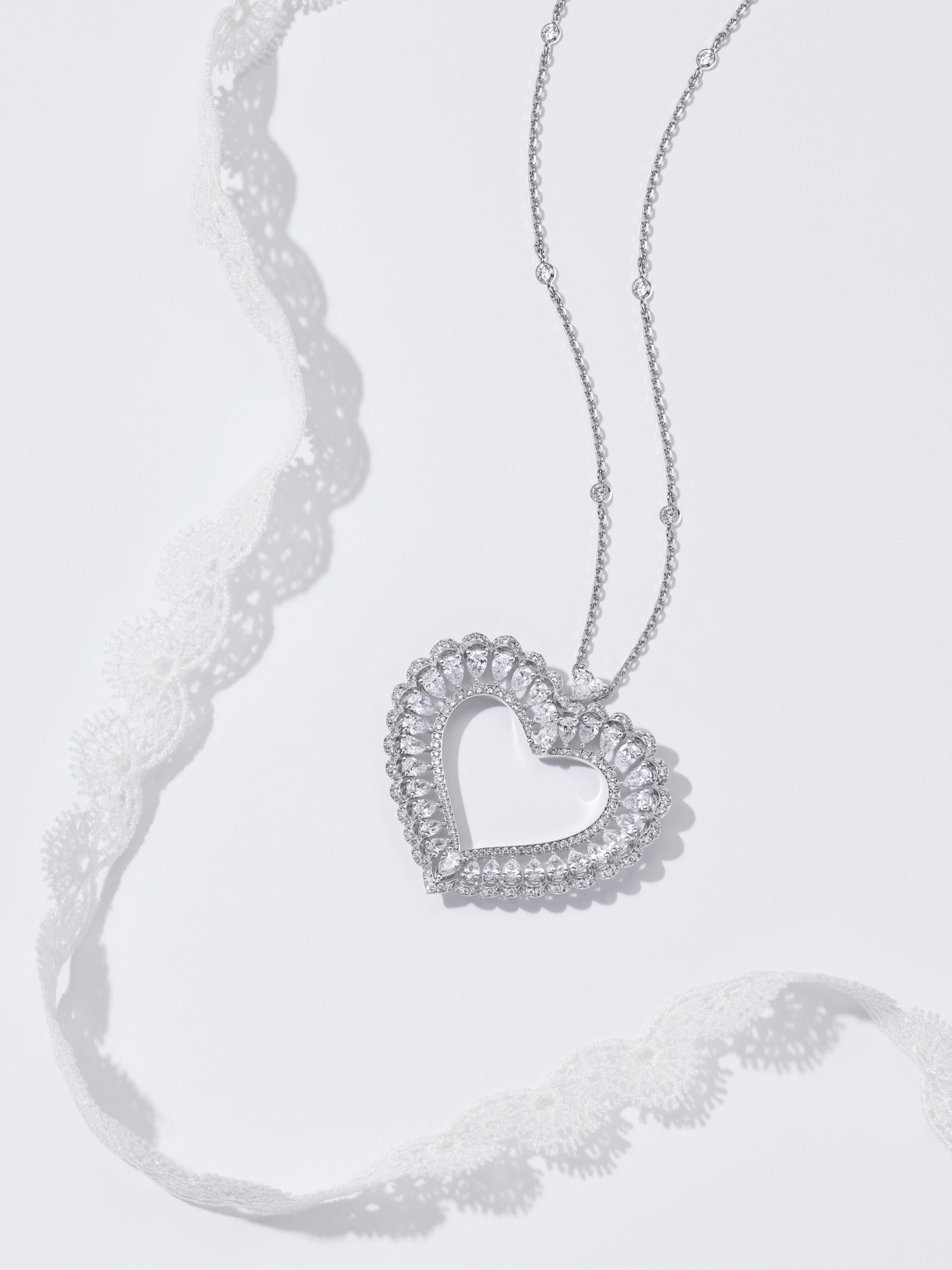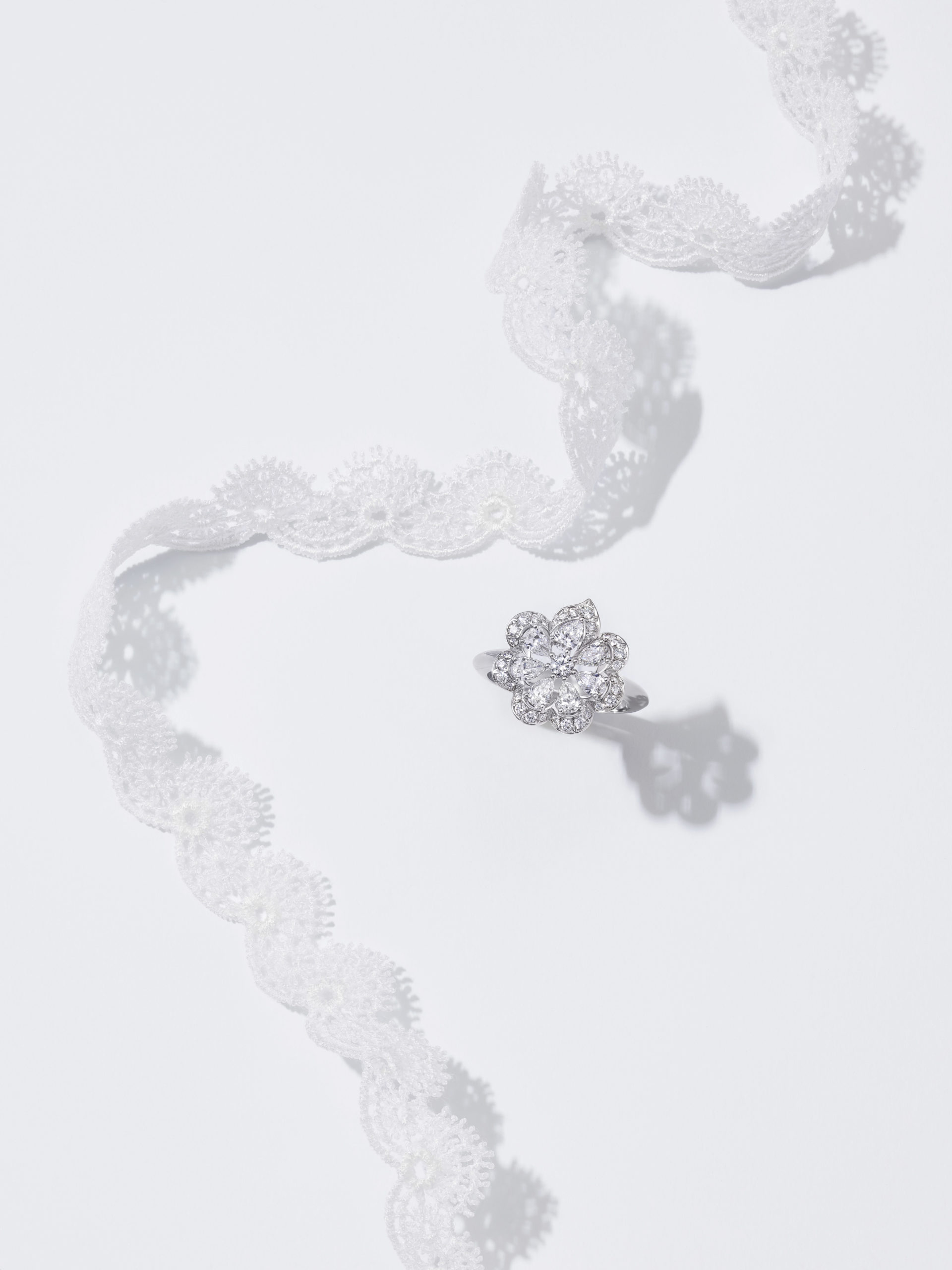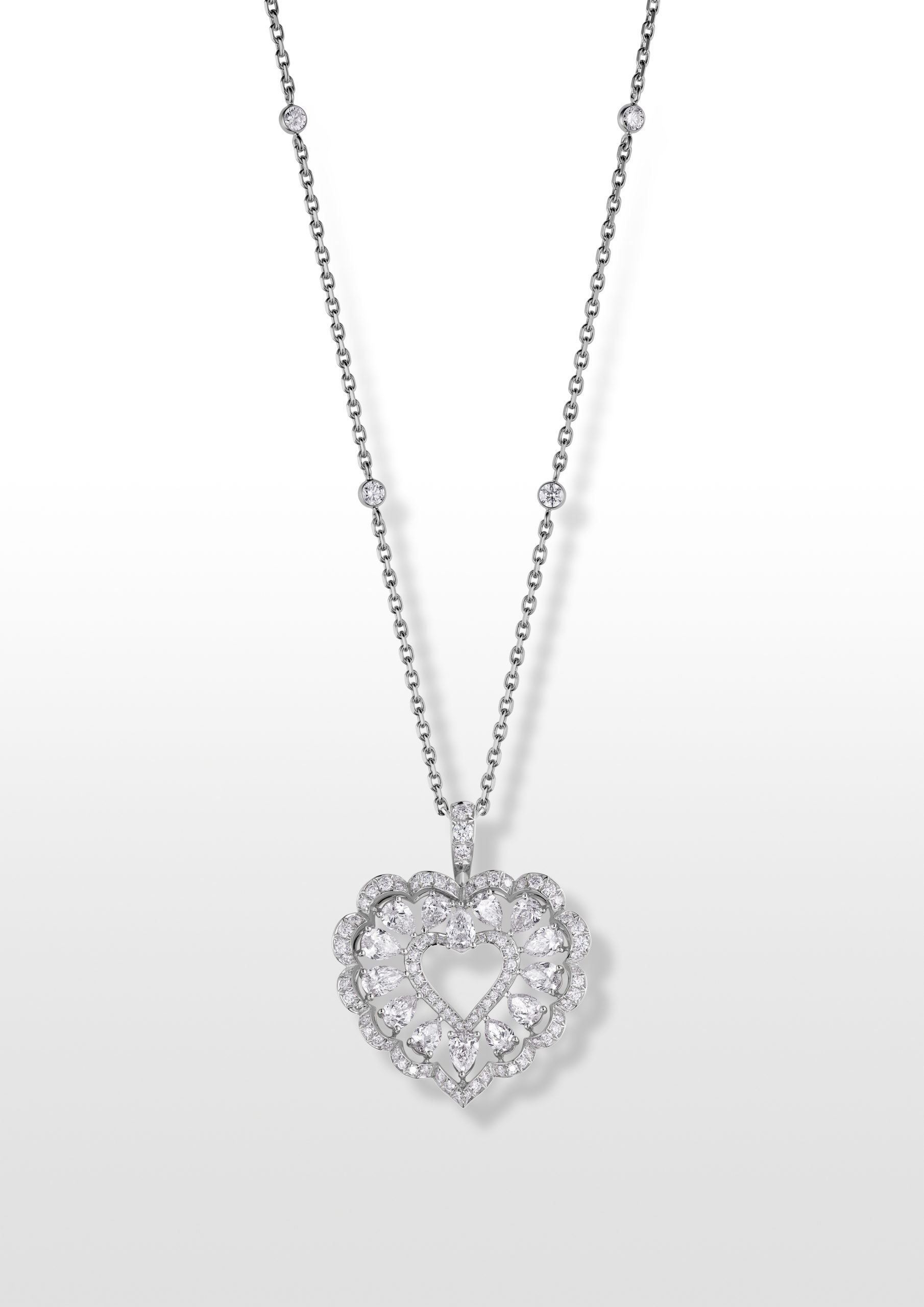 Leurs motifs font écho aux motifs floraux, aux arabesques, aux ondoiements et aux bords festonnés des fines dentelles d’autrefois. Le motif central de la collection Precious Lace – une volute rythmée et ondulante en or sertie de diamants, entourant une ligne déroulante de diamants taille poire – est maintenant miniaturisé à travers quatre dessins. Le premier, en « Vague », avec ses proportions évoquant les rouleaux d’écume se formant sur la mer, se décline en une paire de boucles d’oreilles, un pendentif et une bague. Le motif de fleur stylisée, appelé « Mini-Froufrou », avec ses bordures festonnées et ses pétales de diamant taille poire sur un fond ajouré, est travaillé en bague, en boucles d’oreilles, en pendentif et en un bracelet jonc. Un fleuron semi-circulaire de style similaire devient un pendentif et une chaîne de cou, des boucles d’oreilles et une bague dits « Nuage ». Enfin, Chopard offre à son iconique pendentif « Cœur » le traitement Precious Lace, dans deux choix de taille.
