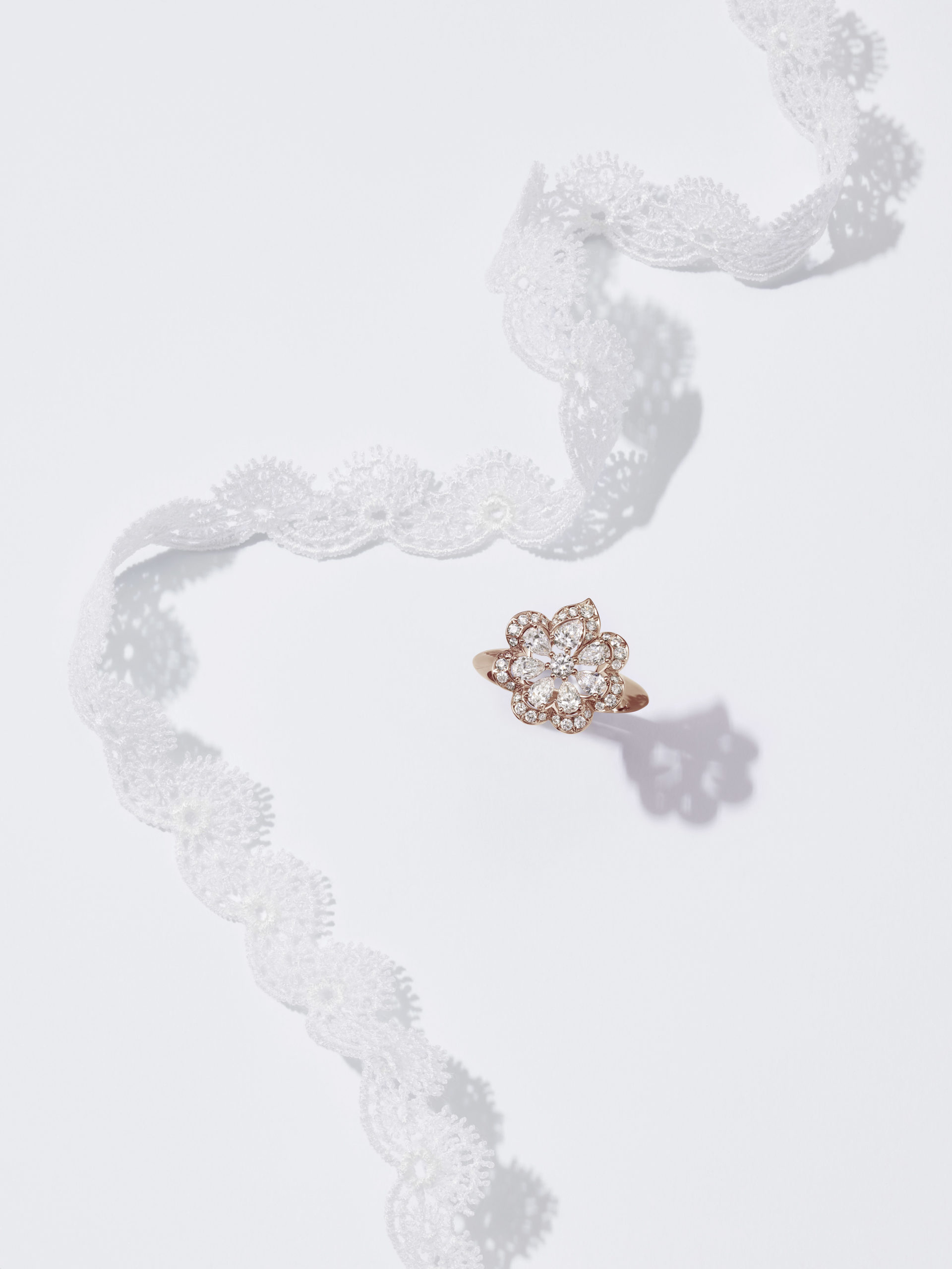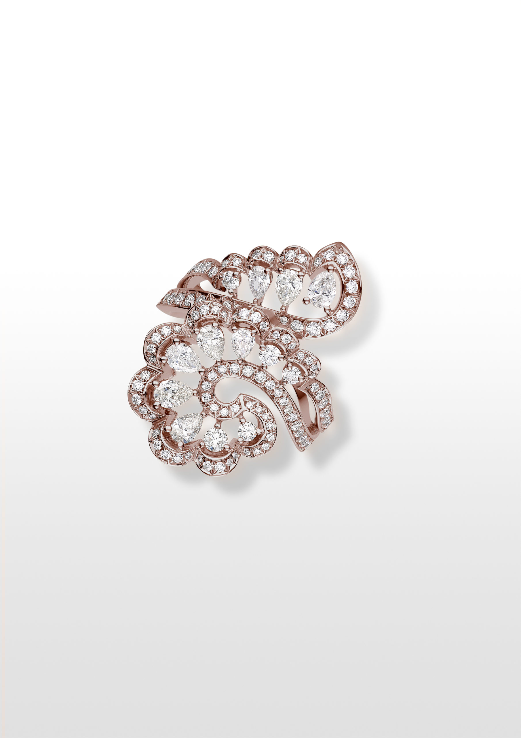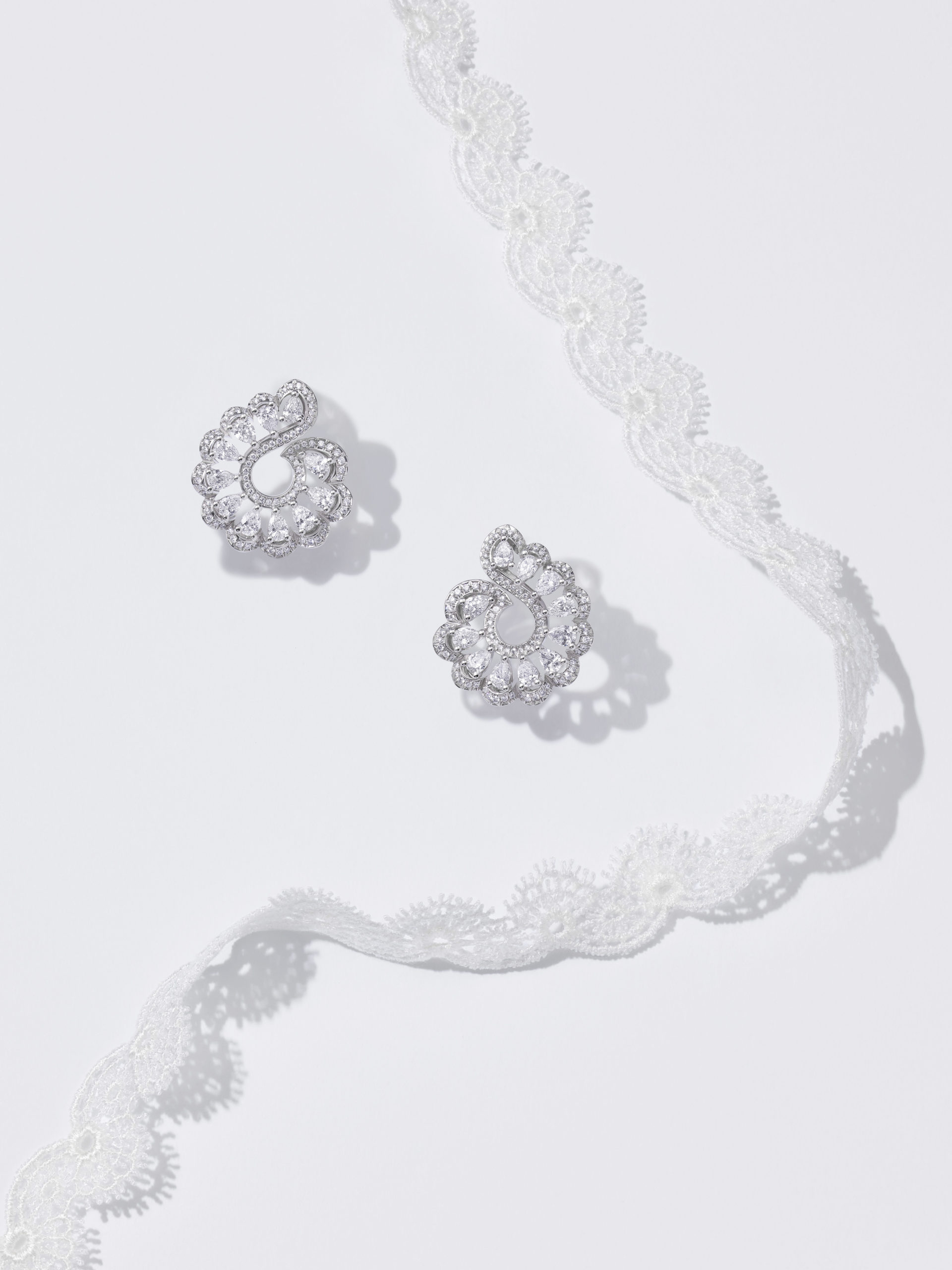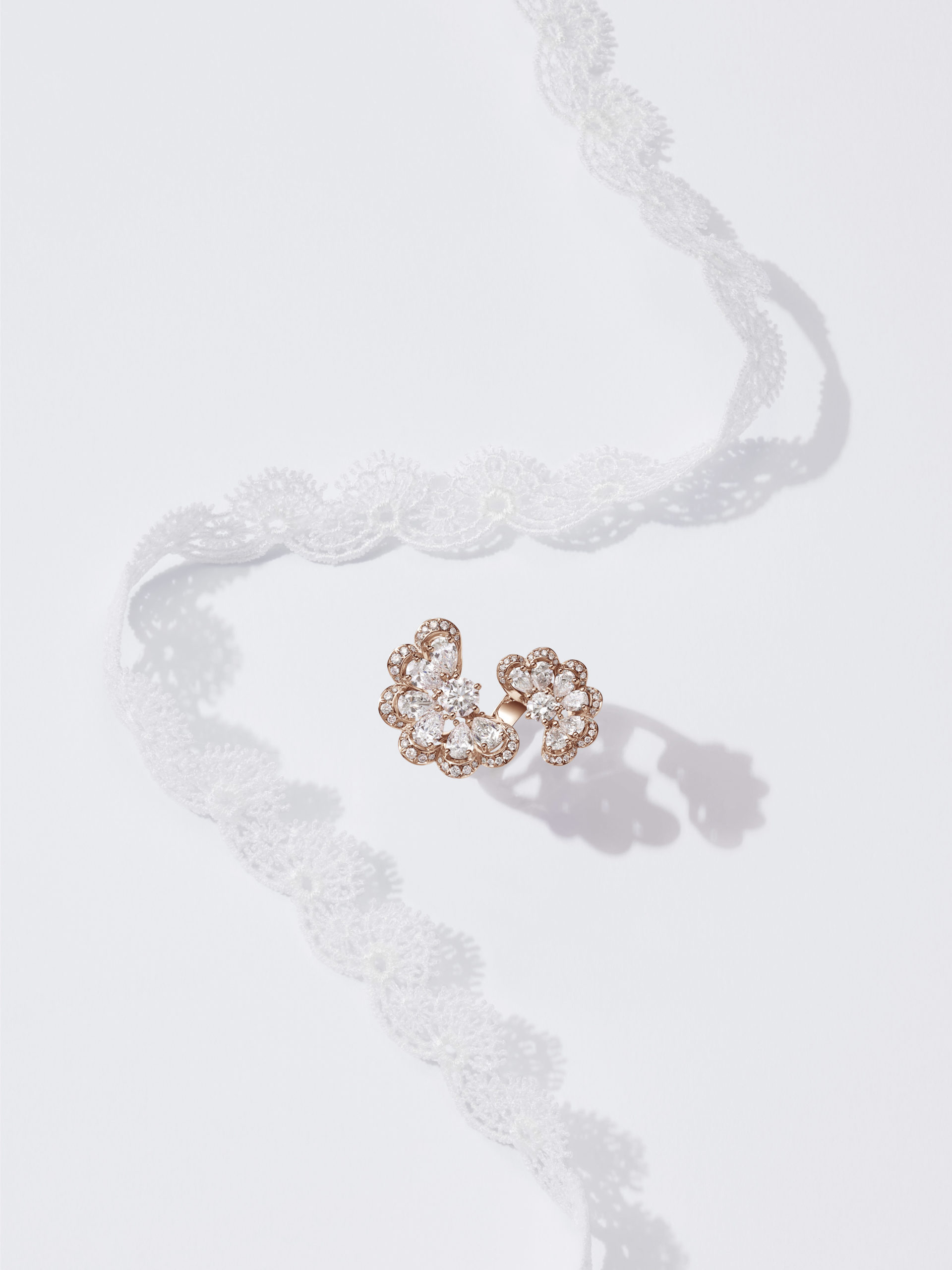 Avec Precious Lace, l’effet d’une dentelle exquise faite à la main est recréé par le jeu des diamants taille poire et taille brillant, en jouant de leurs formes et de leurs silhouettes dans l’espace ajouré de chaque motif, afin d’apporter une cadence lyrique, une fluidité ludique et une stylisation contemporaine au classicisme absolu du thème. La délicatesse de la dentelle est reproduite par l’extrême précision du travail de l’or, des montures très fines et un côté aérien qui se conjuguent pour mettre en valeur l’éclat des diamants, tout en démontrant le savoir-faire ultime des artisans de la Maison. Un savoir-faire proche de celui des petites mains de la Haute Couture dont Chopard partage les valeurs : choix des matériaux les plus nobles, sens du détail, confort au porter et surtout, amour des femmes.