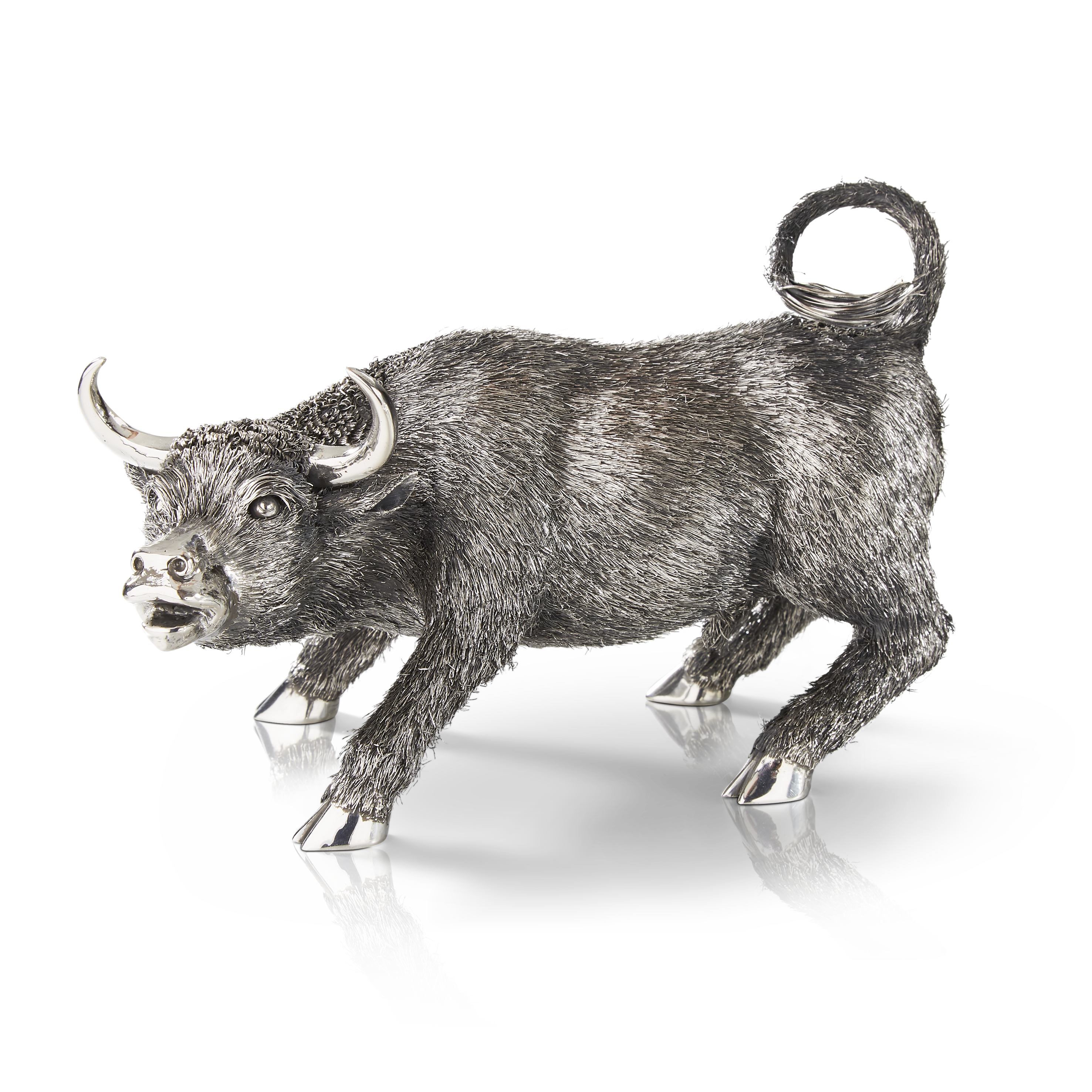 Buffle Buccellati en argent massif gravé et poils en argent, pièce unique, prix sur demande