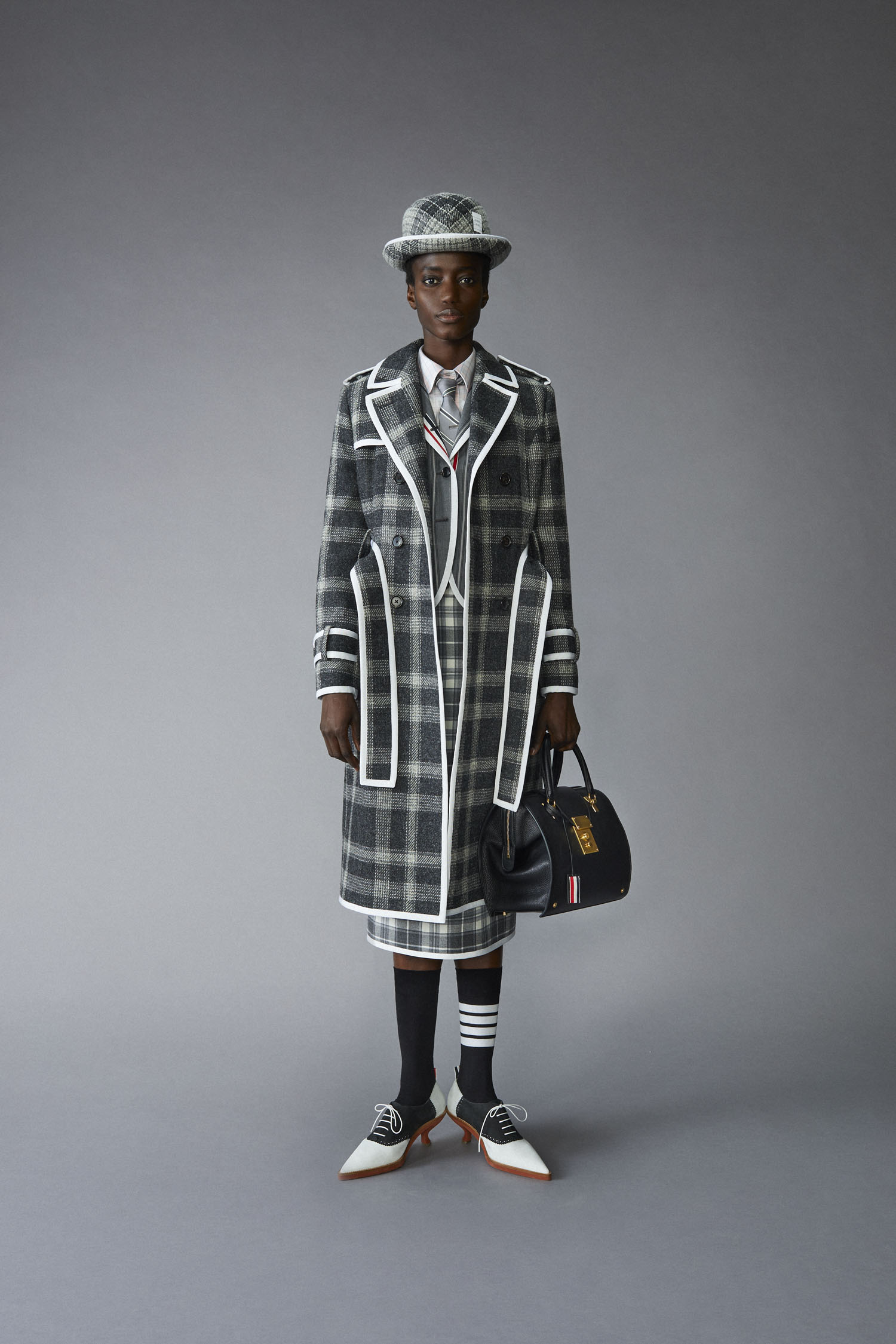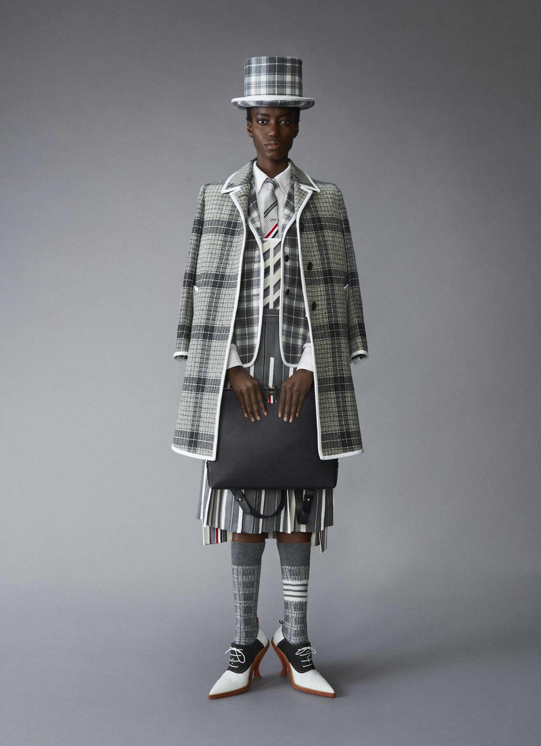 norfolk overcoat. We also introduced a high break jacket styled with the pleated skirt and an