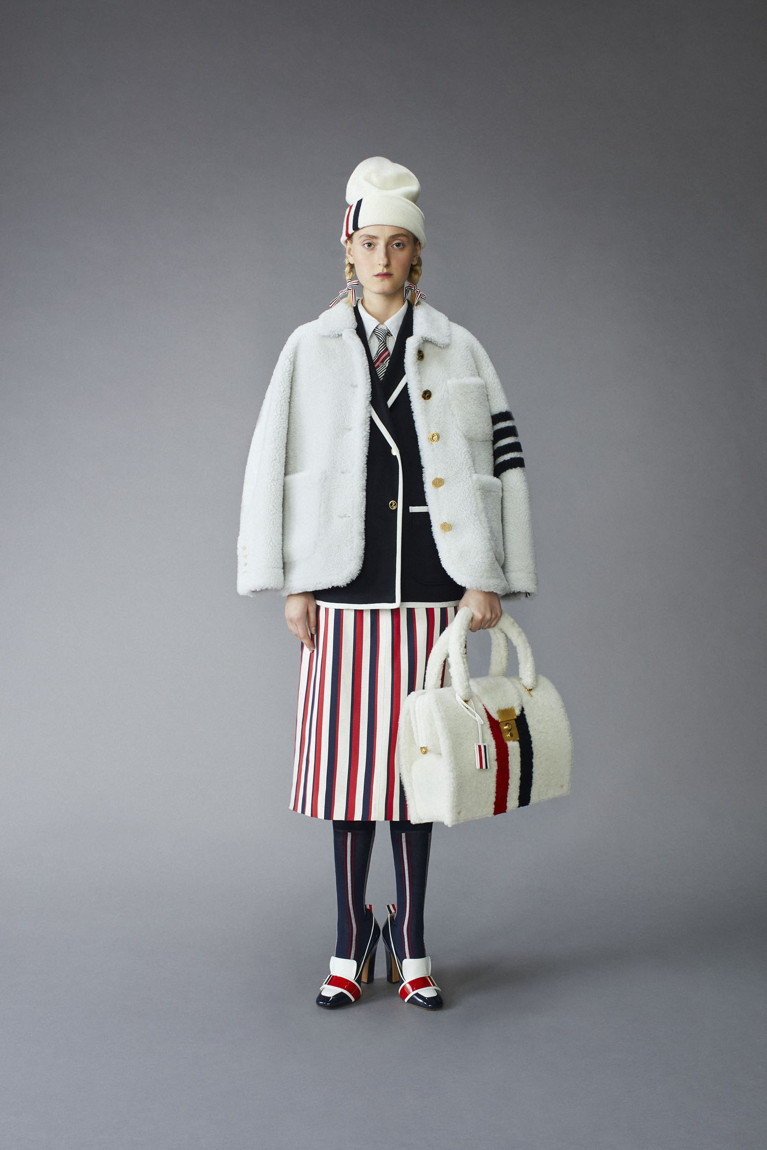 boiled wool weaved in our brand’s RWB stripe.