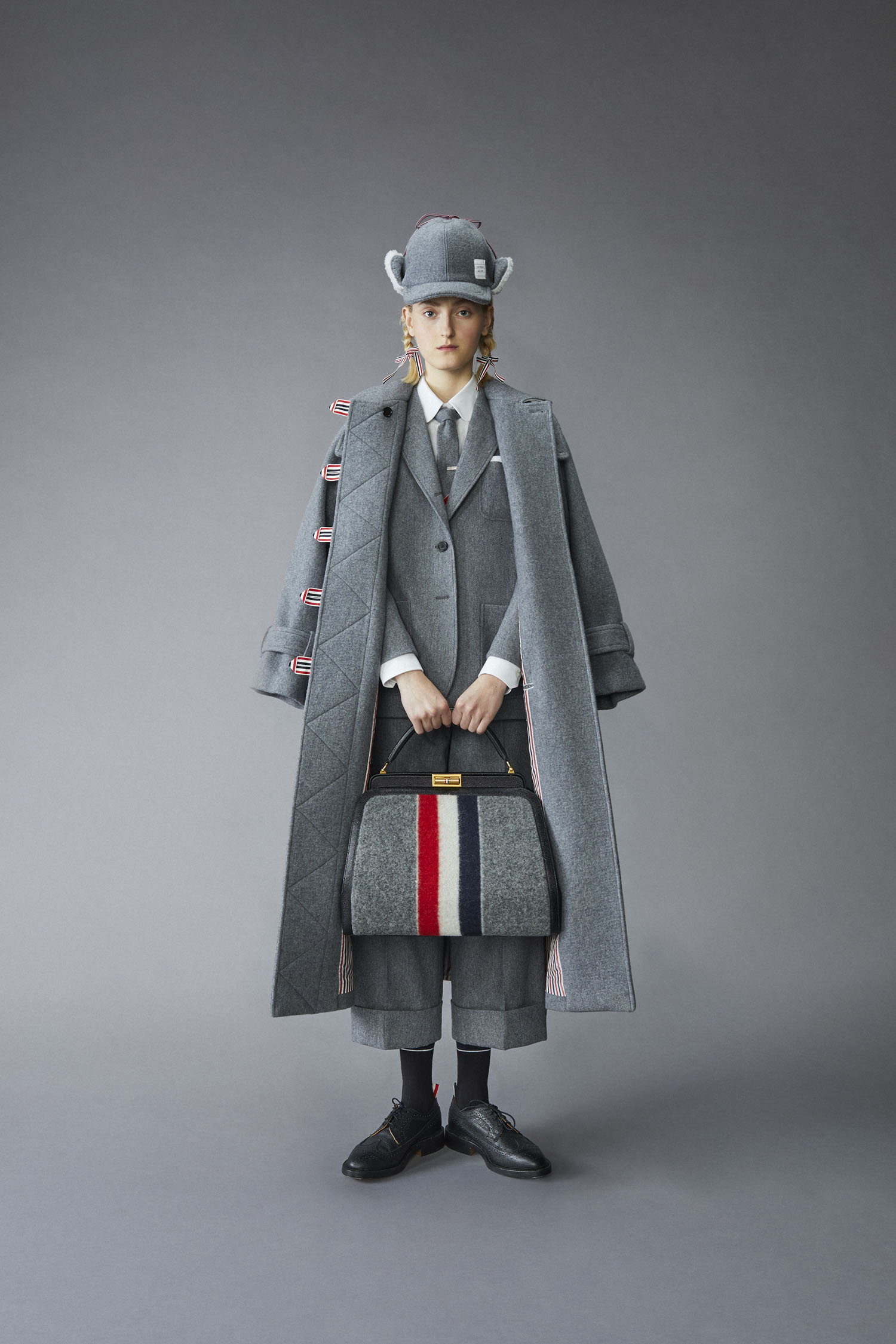 • Duffle coats, norfolk suits and trench coats continue to play with layering lengths and
