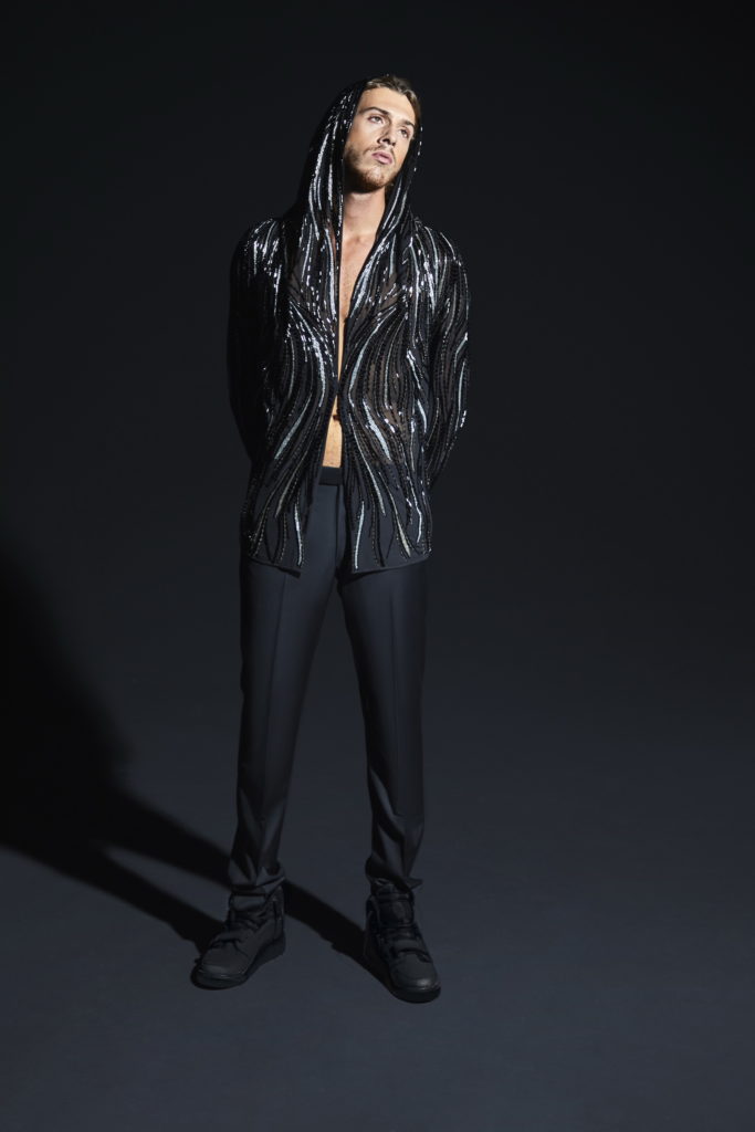 Pour lui, la ligne d’horizon de Beyrouth se reflète sur les costumes brodés sur mesure et les sweats à capuche chatoyants.