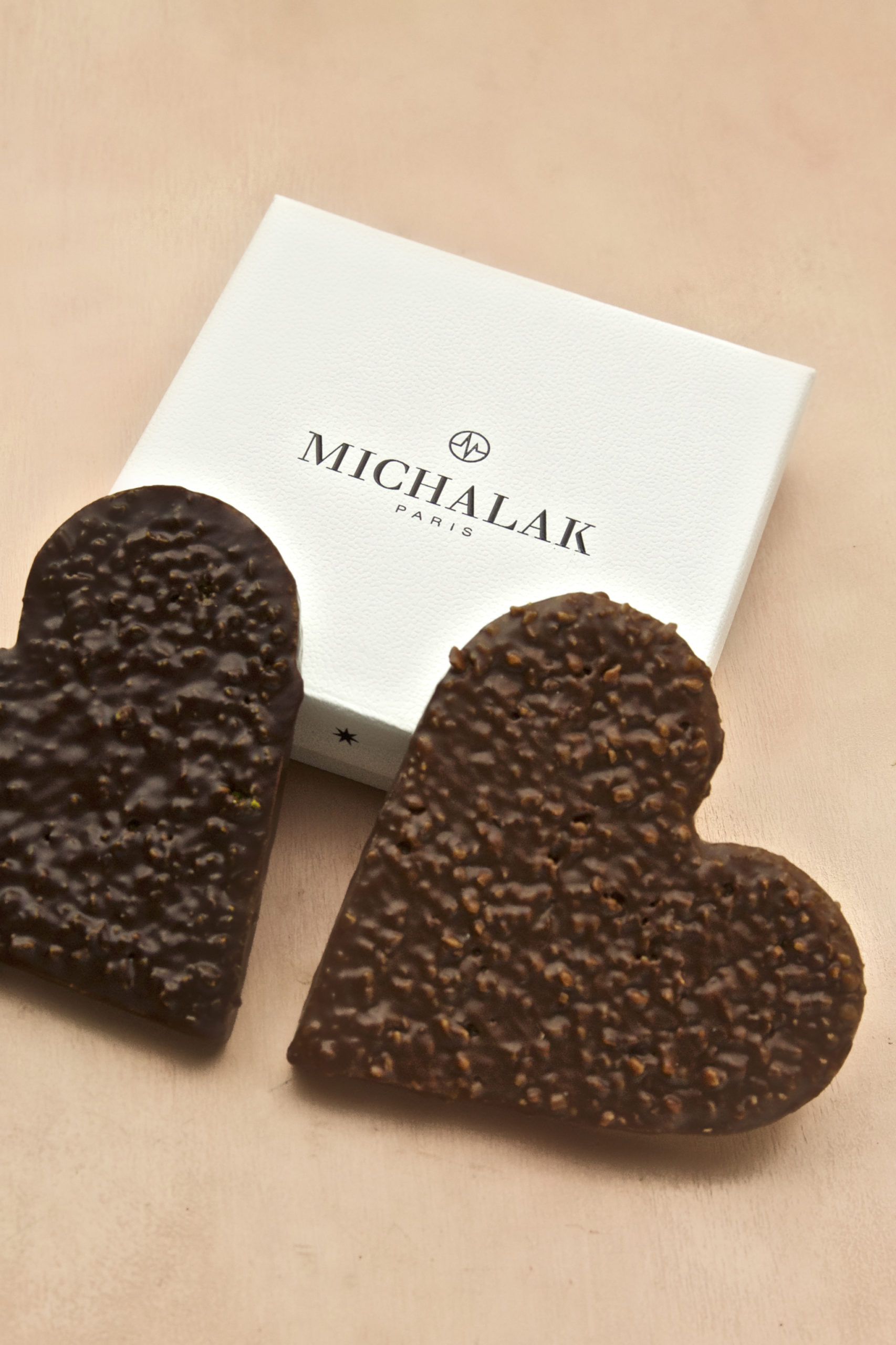 Idéal pour une pause douceur a deux, ce coffret double cœur praliné noix de pecan avec enrobage chocolat au lait et praliné noisette avec enrobage chocolat noir, incite à partager une moment complice et croquant.