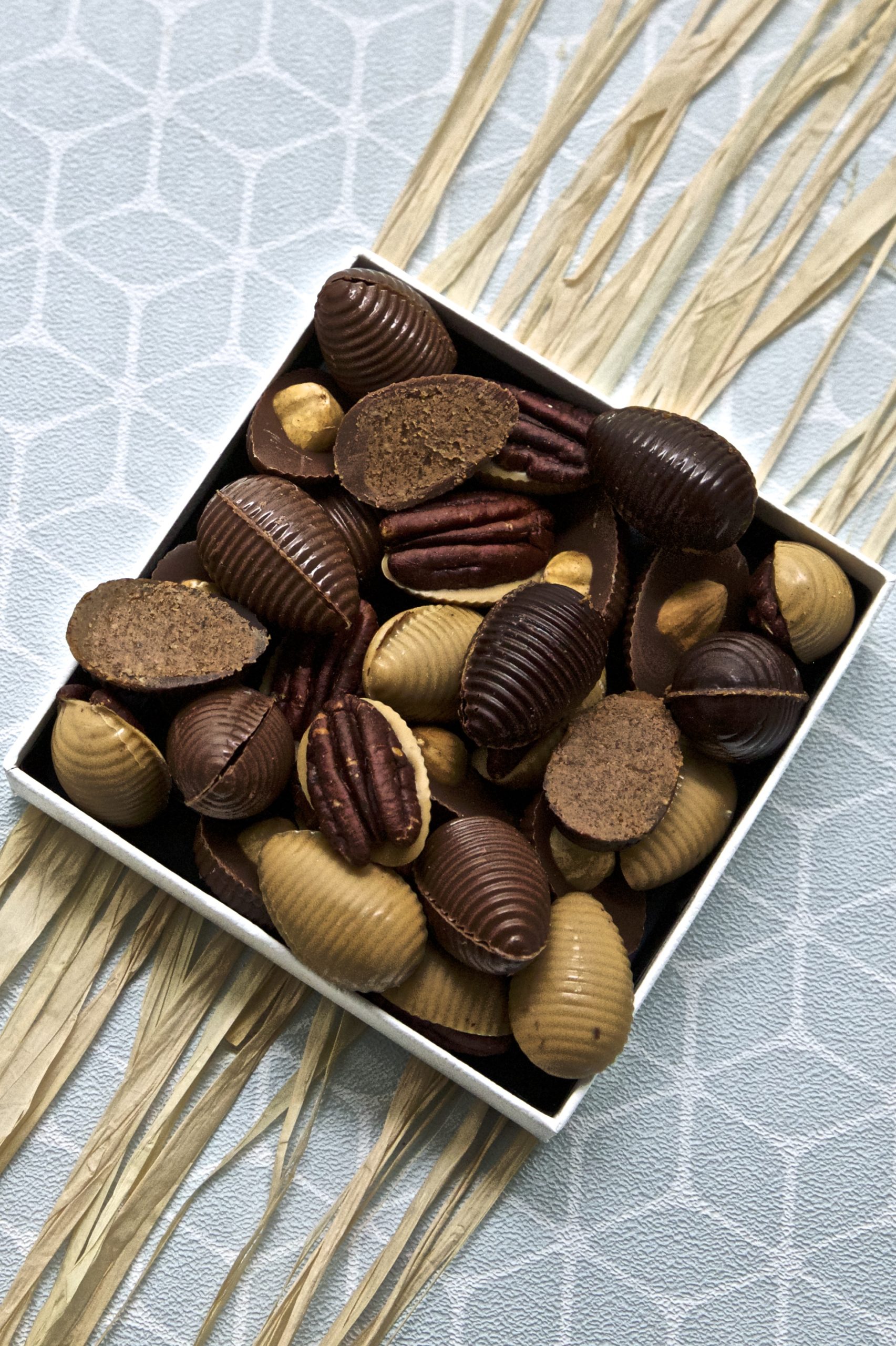 Pour accompagner toutes nos créations, notre coffret de fritures maison apportera une ultime touche chocolatée. Chocolat noir, lait, dulcey, noisettes du Piemont, noix de Pécan, œufs praliné, oeufs mendiant…de quoi ravir les plus gourmands!