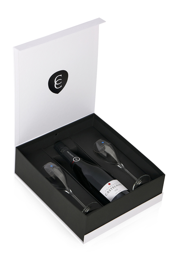 Pour célèbrer la plus tendre et romantique des fêtes, la cuvée rosé de Champagne CASTELNAU s’offre aux amoureux dans un coffret toute en simplicité et élégance. Sous ses lignes épurées, en plus d’une bouteille de rosé champagne CASTELNAU, ce coffret dévoile 2 flûtes pour mieux exhalter la délicatesse et l’onctuosité des notes d’agrumes de cette cuvée qui comme l’amour se révèle avec le temps.