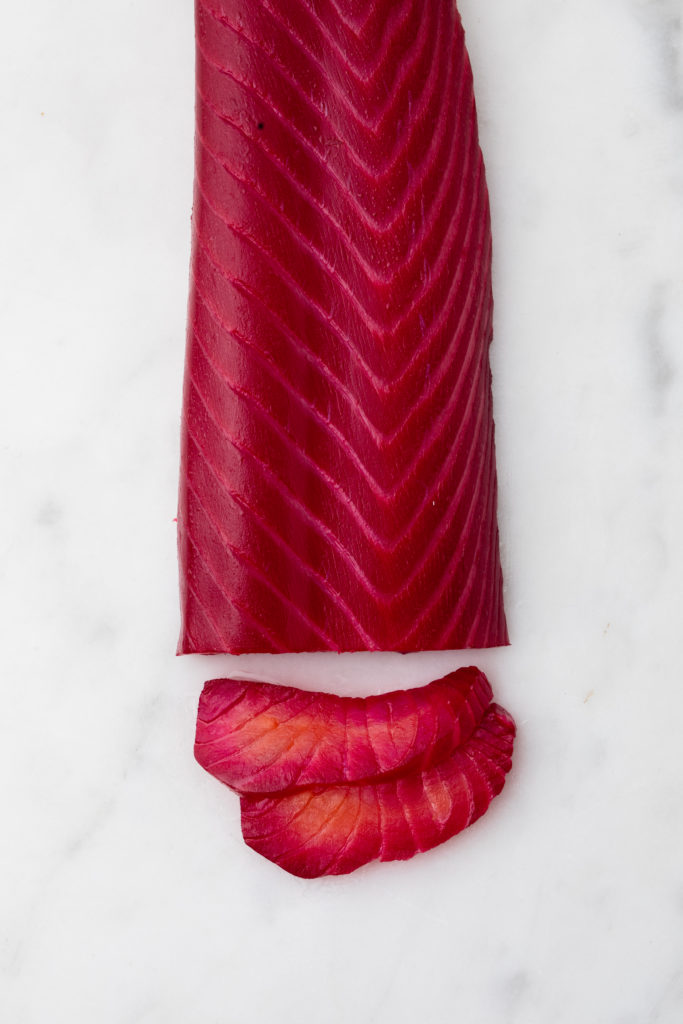 La Coupe du Tsar®, le cœur du filet et la partie la plus noble du poisson, est une recette originale de cœur de saumon fumé et mariné. Elle allie le goût du mythique saumon fumé Petrossian – préparé nature, à l’aneth, à la caucasienne, à la truffe noire ou encore à la betterave – à une texture moelleuse et un fondant incomparables.