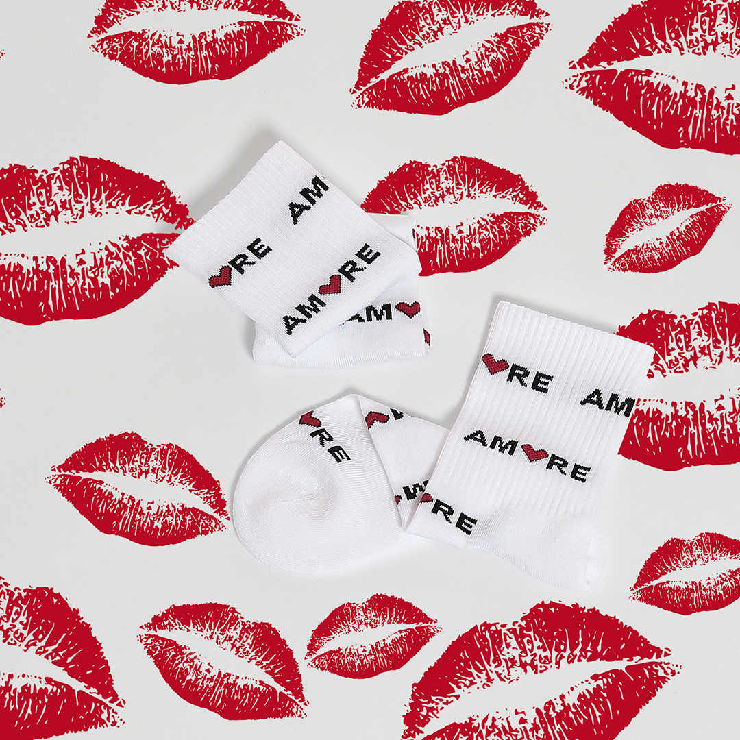 Les cœurs, les déclarations d’amour et, bien sûr, la couleur qui représente la passion, le rouge – ornent les chaussettes et les collants, en passe de devenir les incontournables de la mode.