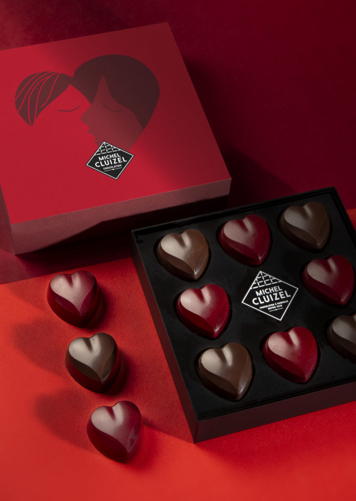 Cette année la Manufacture CLUIZEL ne souhaite aux amoureux de chocolat rien d’autre que de s’aimer tout en gourmandise. Pour cela, le chocolatier a imaginé un coffret graphique et joyeux dont les bonbons ont le goût et les couleurs de l’amour : le Coffret Coeurs n°8. À l’intérieur, des chocolats tendres comme des brins de romantisme, une ganache comme un soupçon de volupté, un praliné plus doux que le souvenir d’un premier baiser…