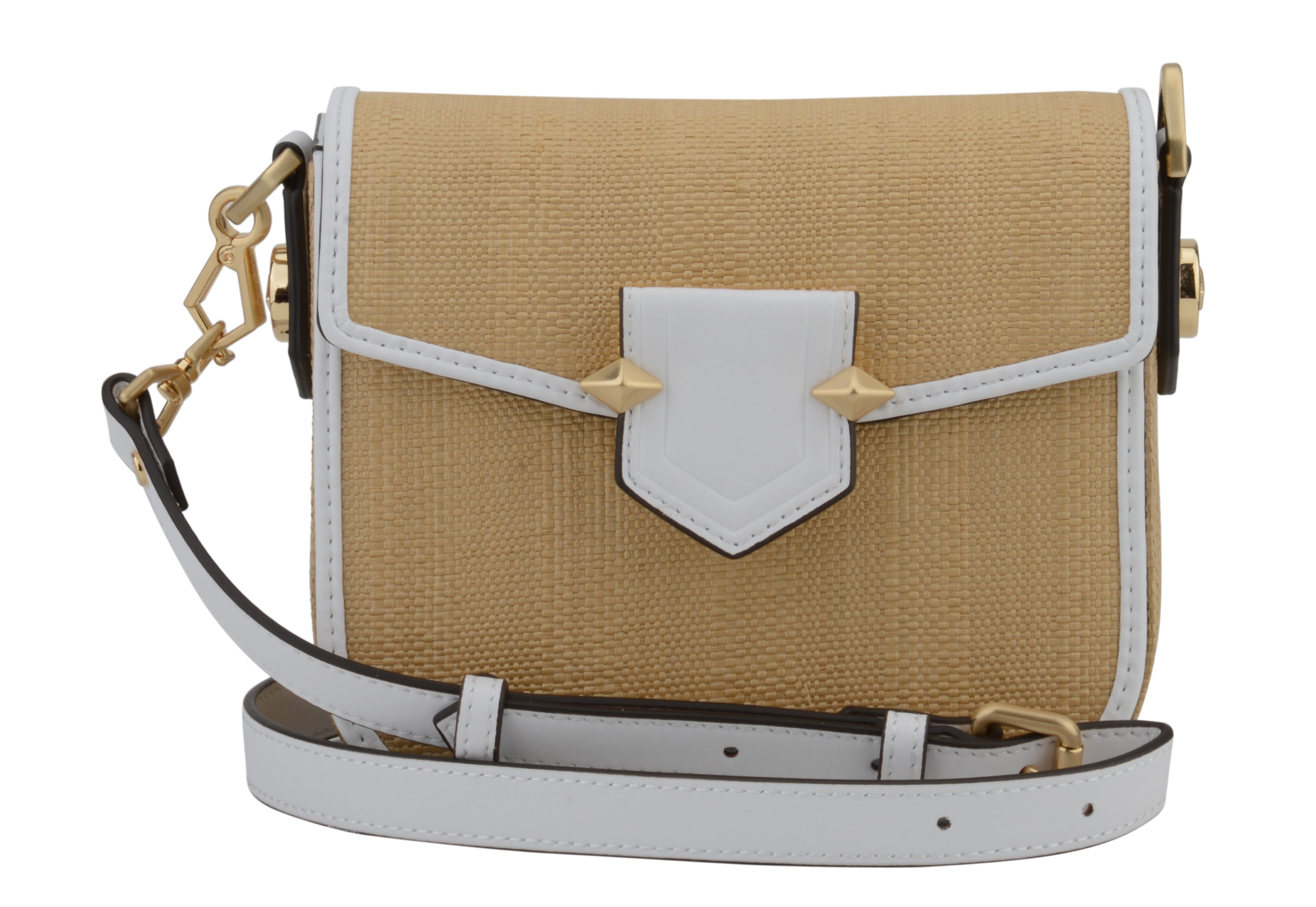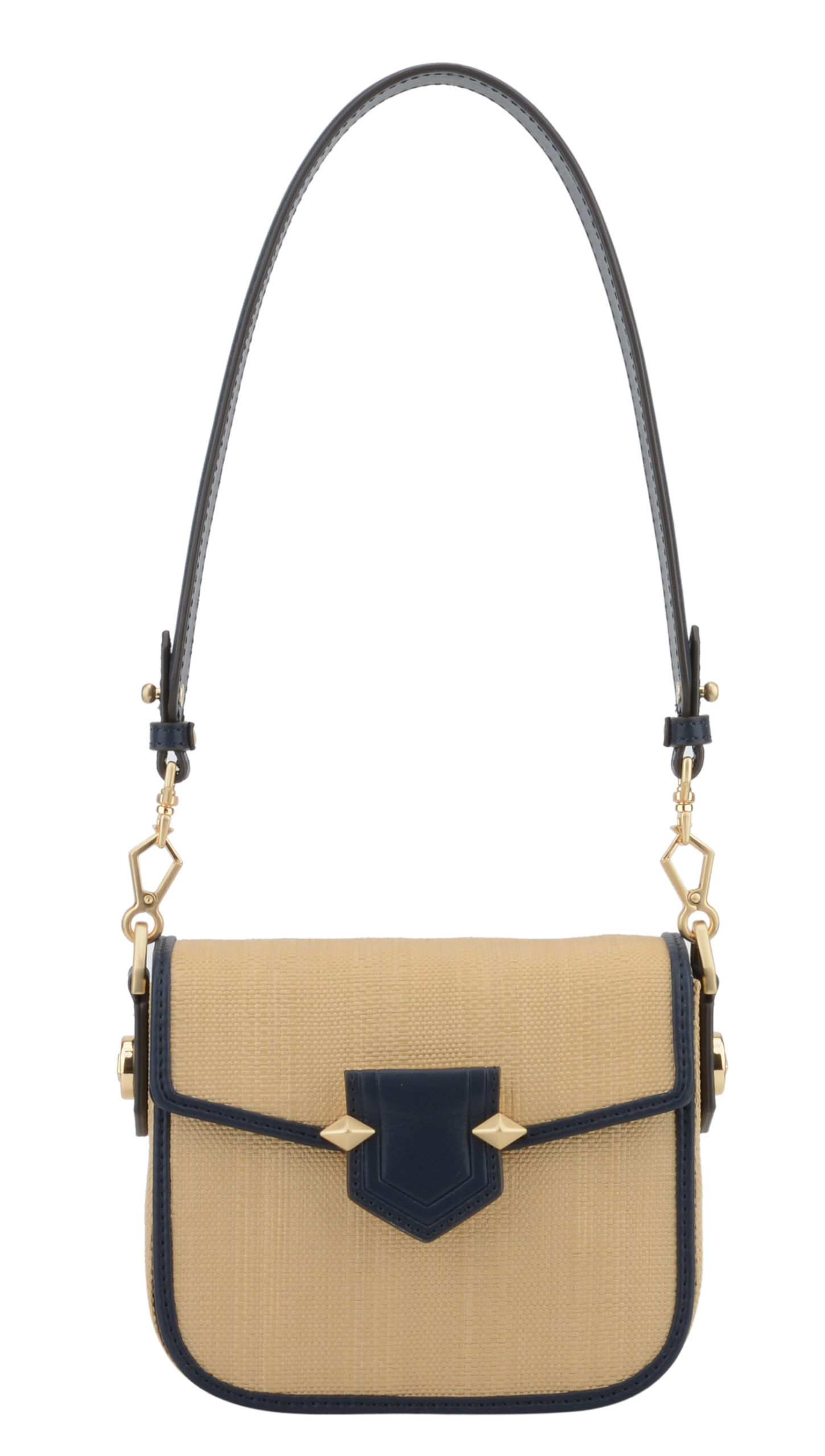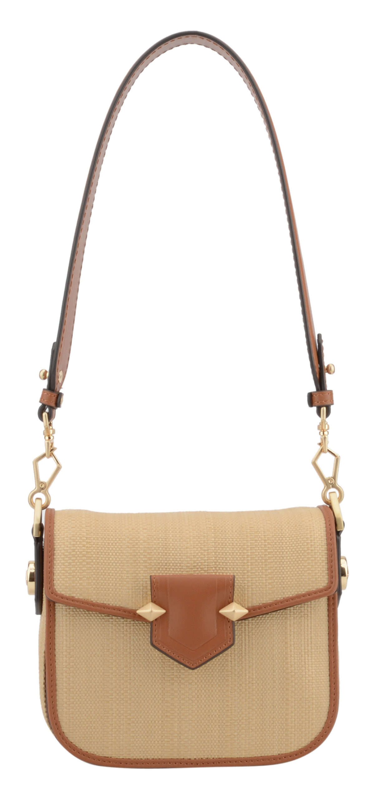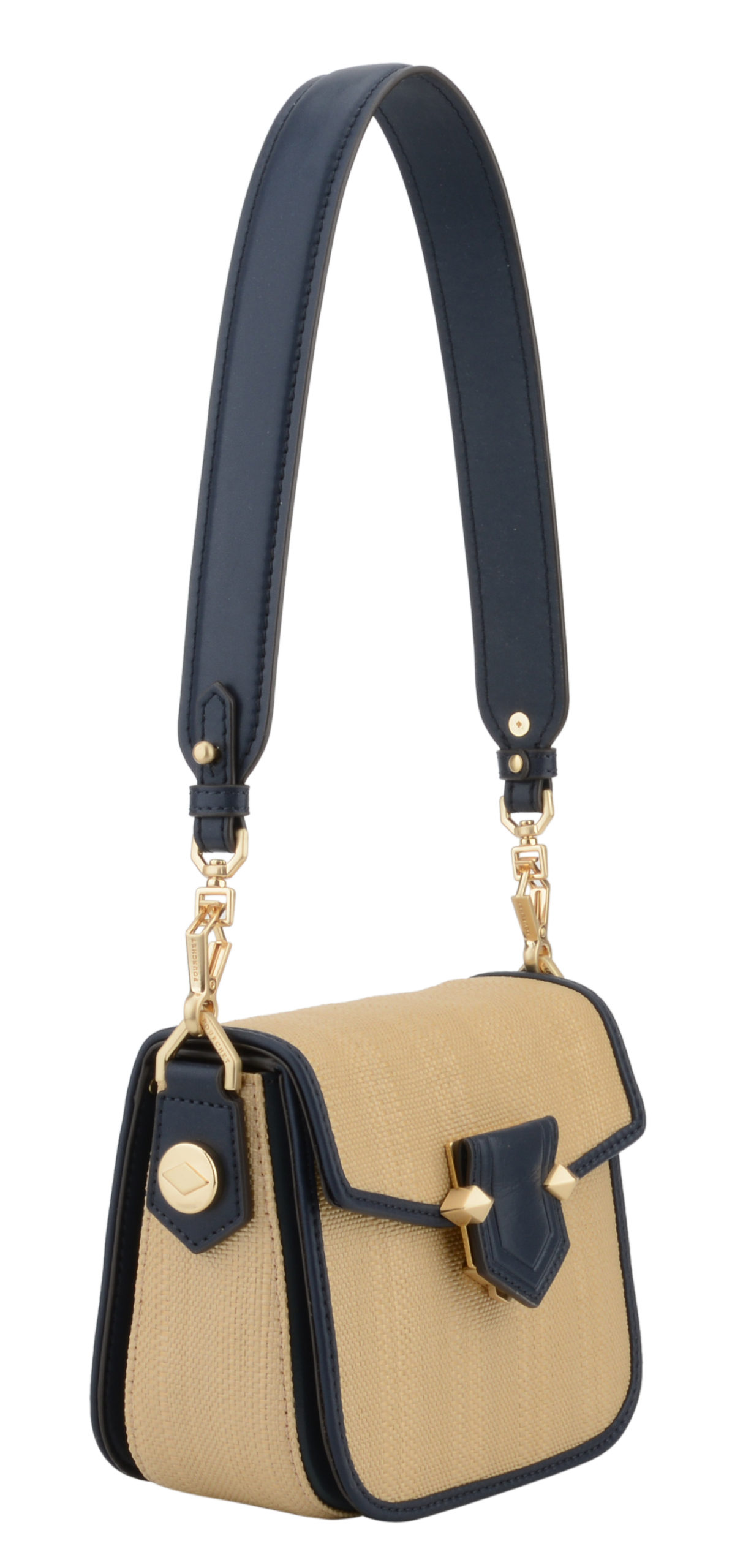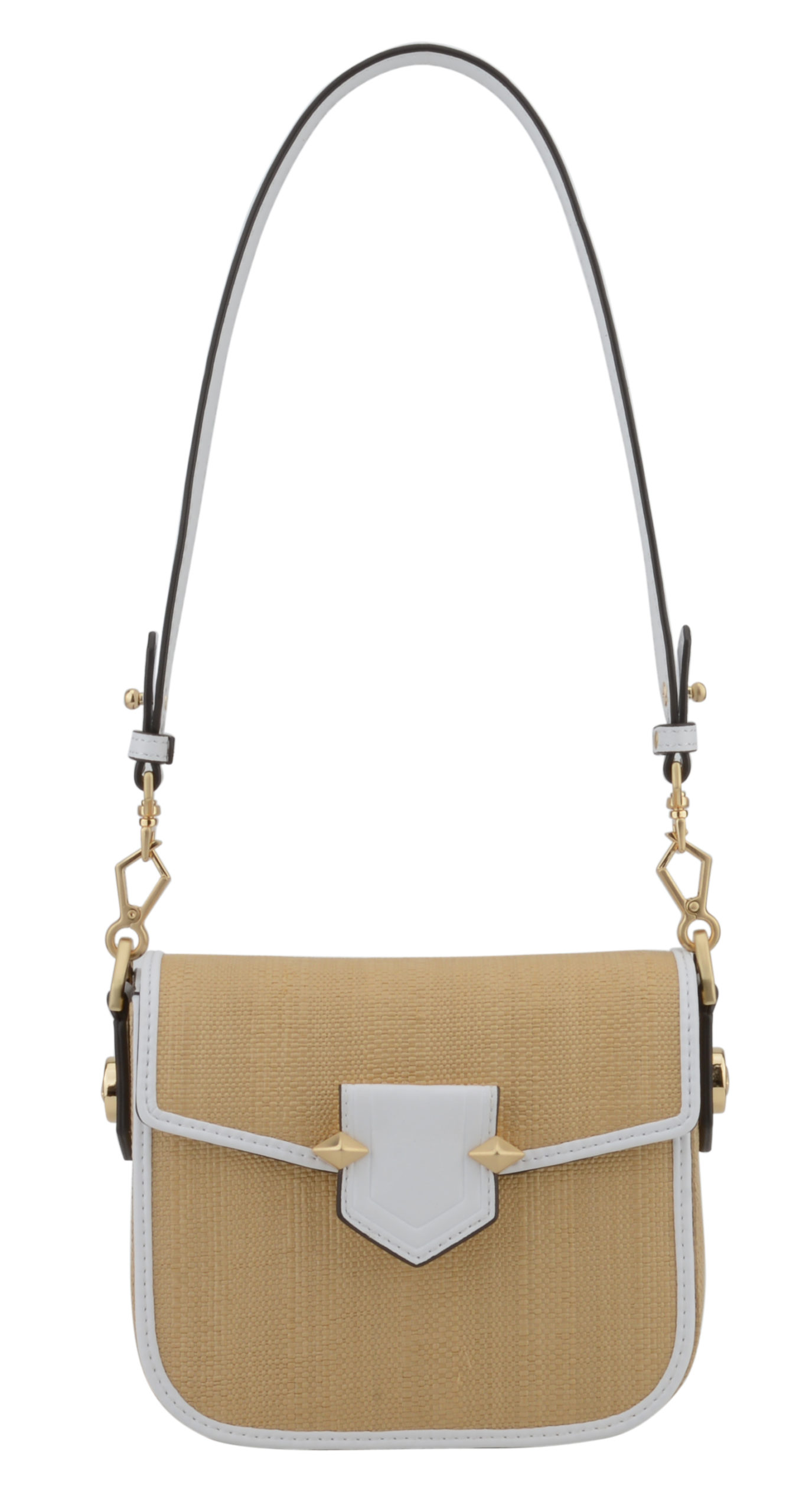 La ligne « Sèvres » s’inscrit depuis plusieurs saisons comme l’une des lignes emblématiques des collections Maison Pourchet. Composée d’une besace, d’une pochette baguette et d’un doctor bag, « Sèvres » allie élégance intemporelle et modernité. Pour cet été 2021, la besace est revisitée en une version originale et estivale. Esprit naturel et sophistiqué pour ce nouveau modèle en toile de raphia tissé gainée de cuir gold, marine ou blanc optique, toujours orné de finitions et détails inspirés des codes identitaires de la marque comme ces jolis clous losange en laiton brossé sur le fermoir. De belle contenance, grâce à son intérieur bien organisé, ce sac est agrémenté de deux bandoulières amovibles qui permettent d’optimiser les différentes façons de le porter. Besace « Sèvres » toile raphia et cuir : 175 euros