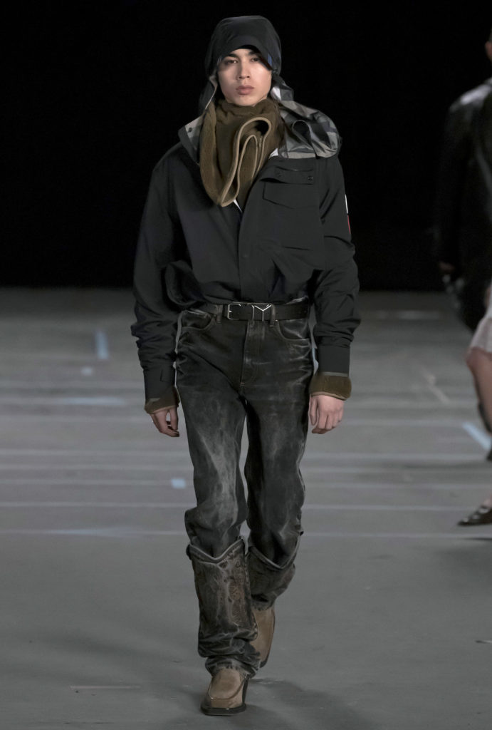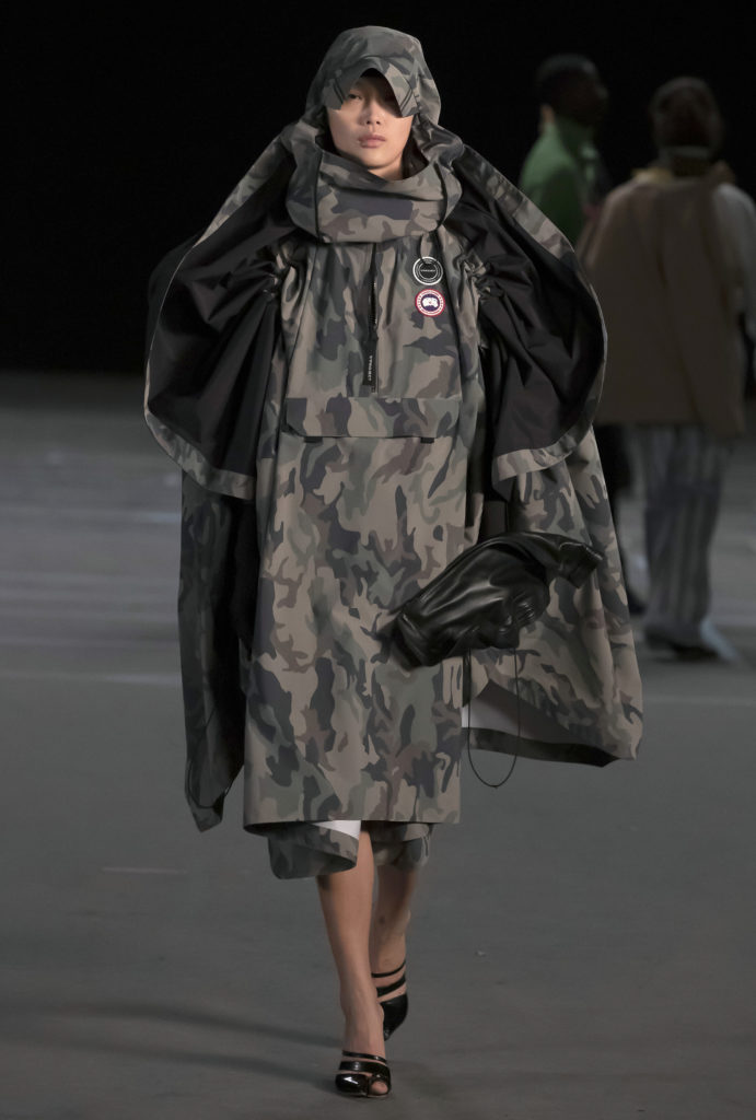 Cette saison, Y/PROJECT étend sa collaboration avec l’expert du manteau technique Canada Goose et dévoile une capsule de vêtements de pluie, dont des capes et des parkas. Le label parisien s’associe également avec la marque iconique brésilienne Melissa pour une nouvelle ligne de chaussures, présentant des mules baroques et des sandales inspirées de tapis persans.