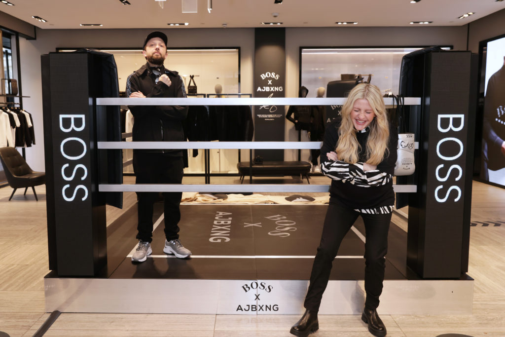L’équipe de radio s’est jointe à AJ pour le lancement, jouant le rôle d’assistants commerciaux virtuels en boutique. Chabuddy G et MC Grindah se sont prêtés au jeu de vendeurs virtuels en expliquant comment la collection BOSS X AJBXNG s’adapte à toutes les morphologies.