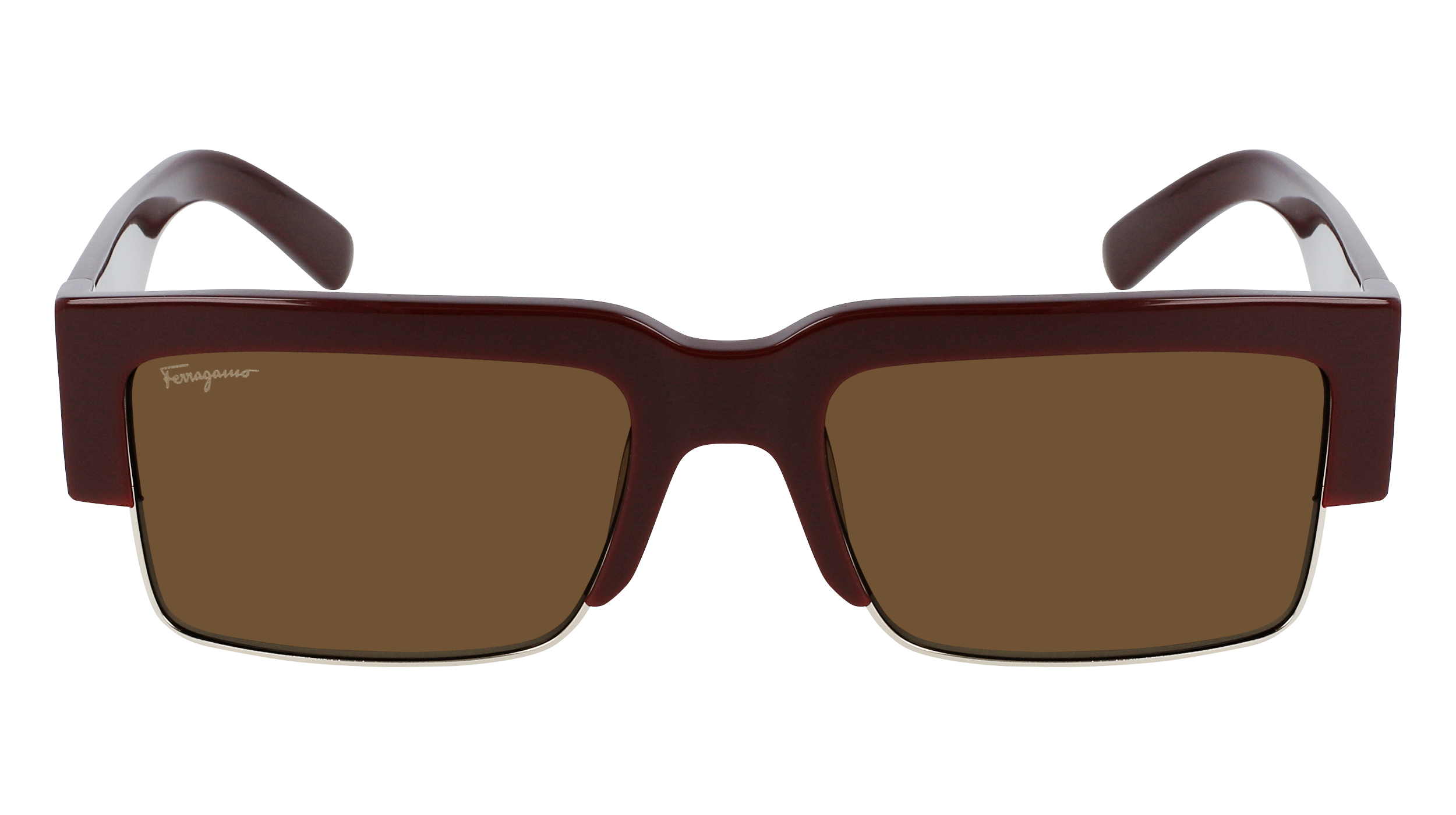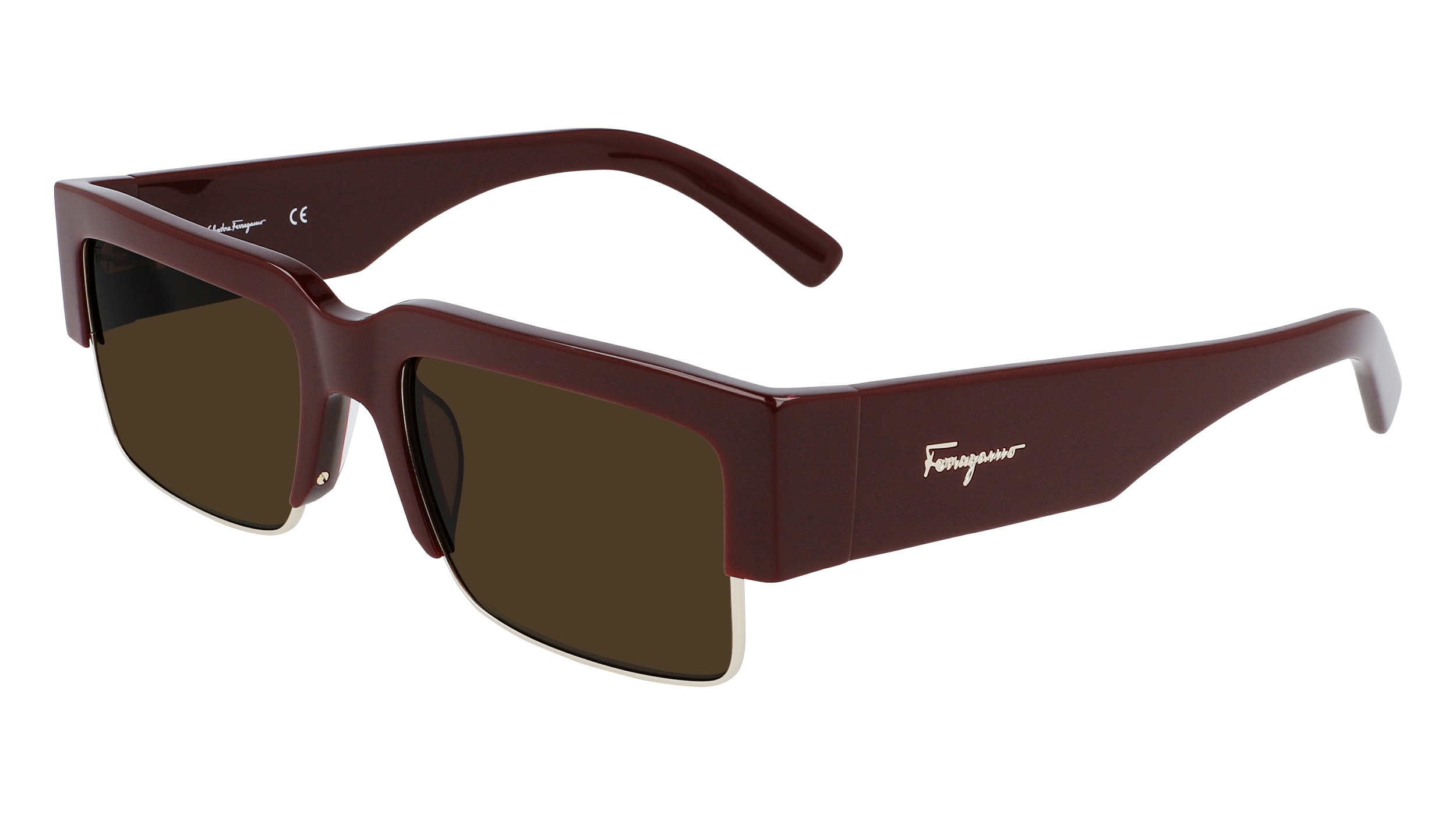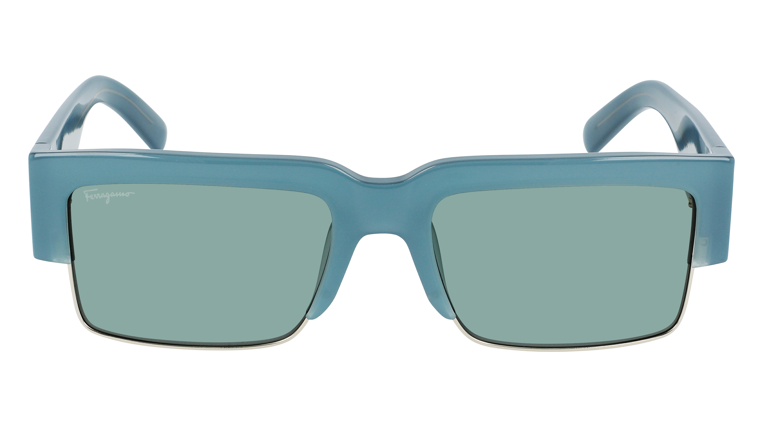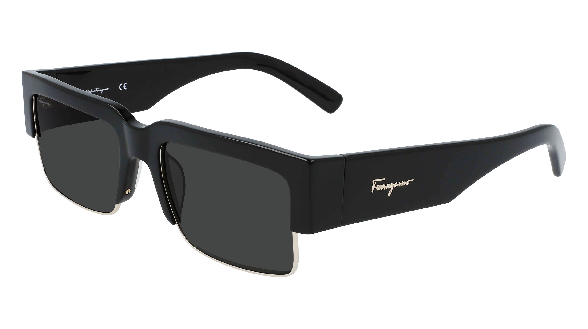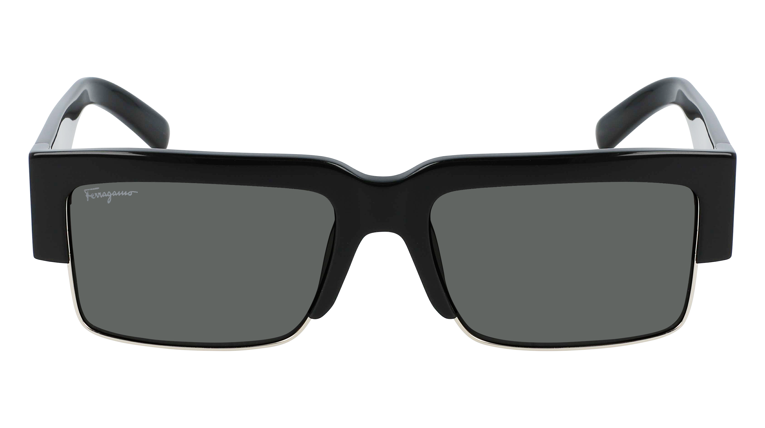Le style tape-à-l’œil est réalisé avec une forme épaisse en acétate contrastant avec les cercles fins métalliques sur la partie inférieure de l’avant de la monture. De larges branches mettent en valeur la construction avant-gardiste abritant l’inscription emblématique Ferragamo dans un ton or poli.