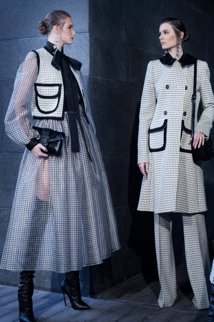 Son imagination est débordante. Elle surprend en choisissant de marier des cuissardes en cuir à une combinaison à capuche perlée, de s’envelopper dans un manteau blanc surdimensionné en laine, ou encore de créer l’illusion dans un tailleur jupe à carreaux avec des manches ballon en organza. D’une saison à l’autre, le monogramme, les encolures plongeantes et les tailles cintrées, tous signatures de la Maison, l’accompagnent tout au long de la journée.
