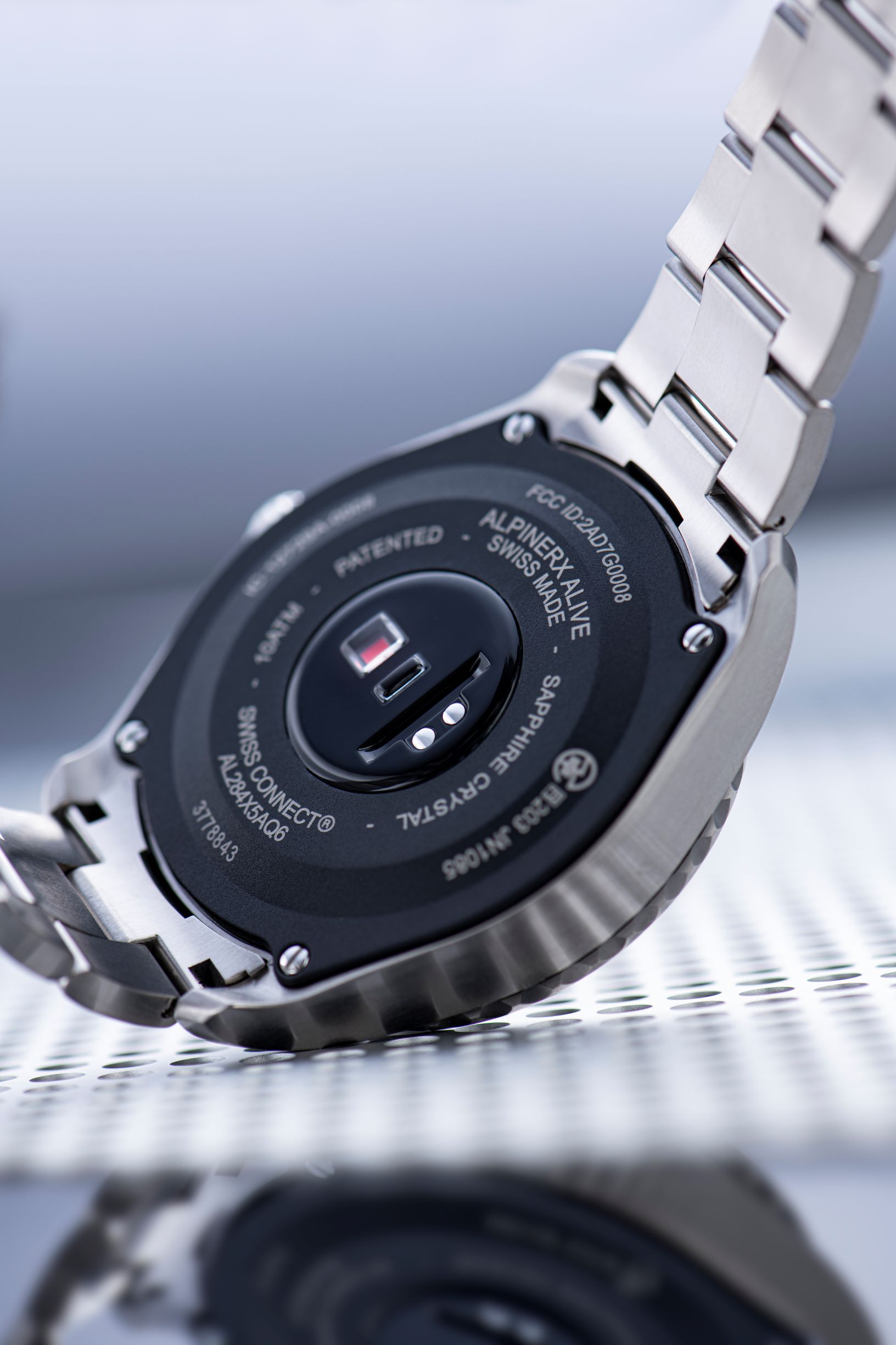 L’AlpinerX Alive Titanium intègre un capteur de fréquence cardiaque de dernière génération, développé par Philips Wearable Sensing, ainsi qu’un GPS intégré (captant au moins neuf satellites), la VO2 max et le suivi de l’hydratation. Ces nouvelles fonctions sont complétées par un calendrier perpétuel, un deuxième fuseau horaire, un chronographe, un suivi de l’activité physique et du sommeil ainsi que par des notifications personnalisées. Le tout est aujourd’hui disponible sur un nouvel écran tactile haute résolution AMOLED.