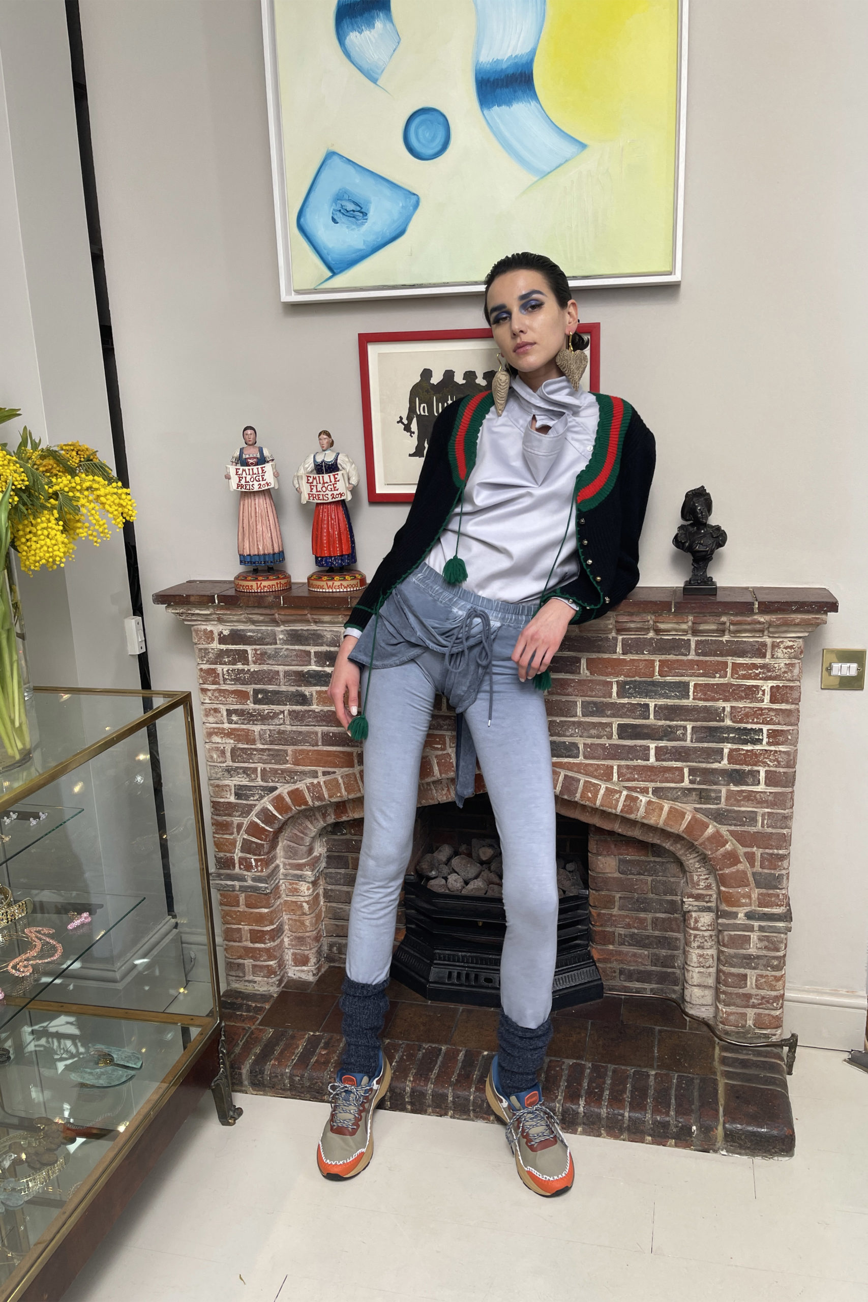 Nous avons pensé à Eliza + sa forte personnalité quand nous avons conçu la nouvelle collection. « Tout ce que je veux, c’est une chambre quelque part … » …” vendant des fleurs bandeau tricoté à la main, tutu de fée, collants à imprimés serpent, larges sandales à plateforme en satin; elle aurait pu se procurer dans un magasin de charité ; elle est protégée par Pygmalion – le cardigan à carreaux Tattersall de Higgins.