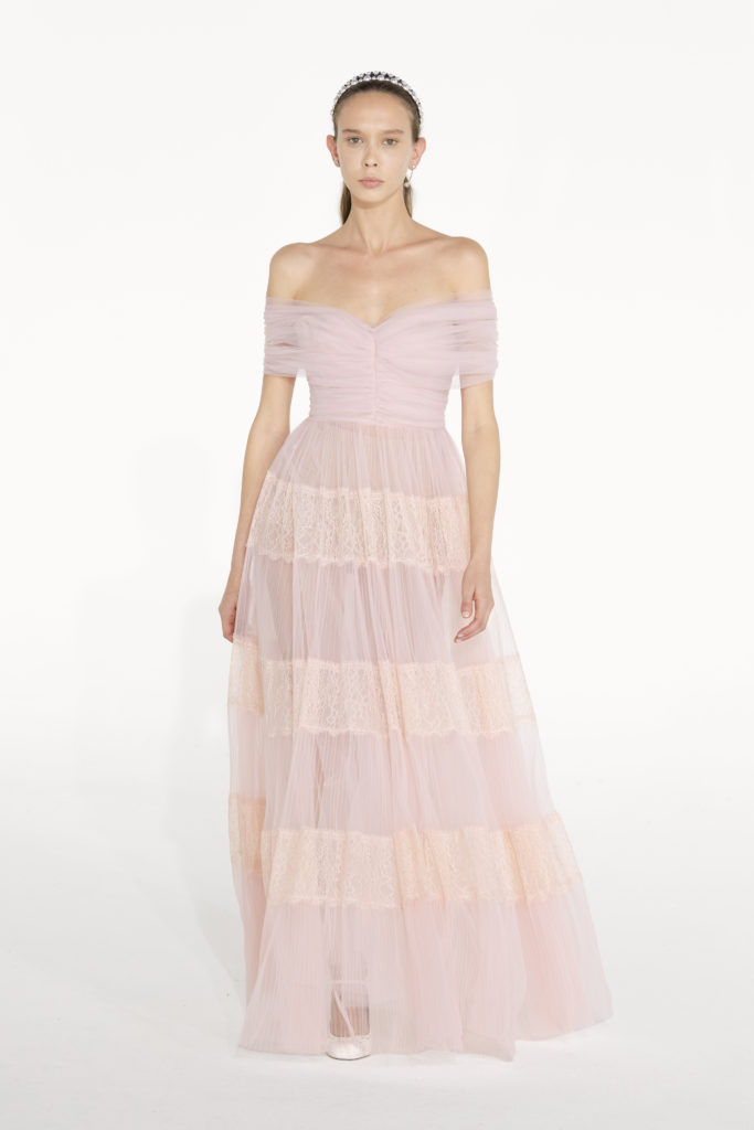 After moments of stillness and introspection, the will of movement and a new dynamism serve as the starting point for the Fall/Winter ’21 collection, where Mr.Valli takes his Parisienne silhouette on a journey to his hometown, Rome. While walking through the City, this silhouette turns into a new imaginary friend, Paolina Borghese Bonaparte, a woman ahead of her times that perfectly incarnated the balance between the Italian and French cultures and whose spirit applies to the Valli woman; a progressive and eclectic creature completely independent in her sense of style.