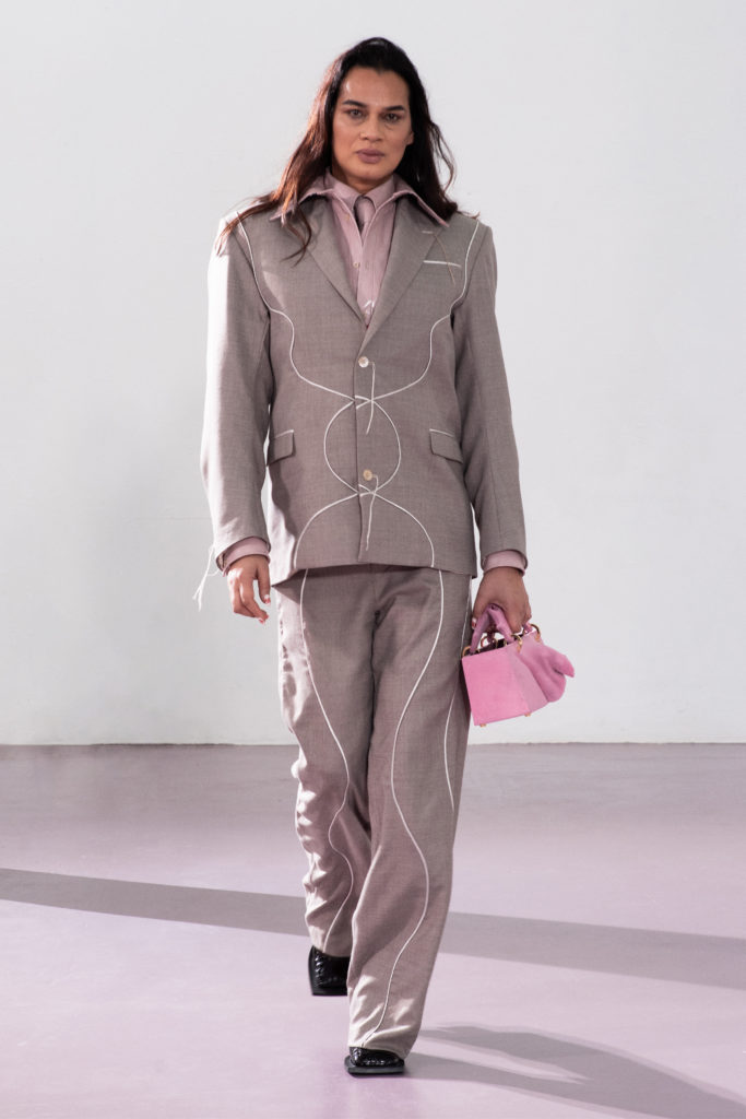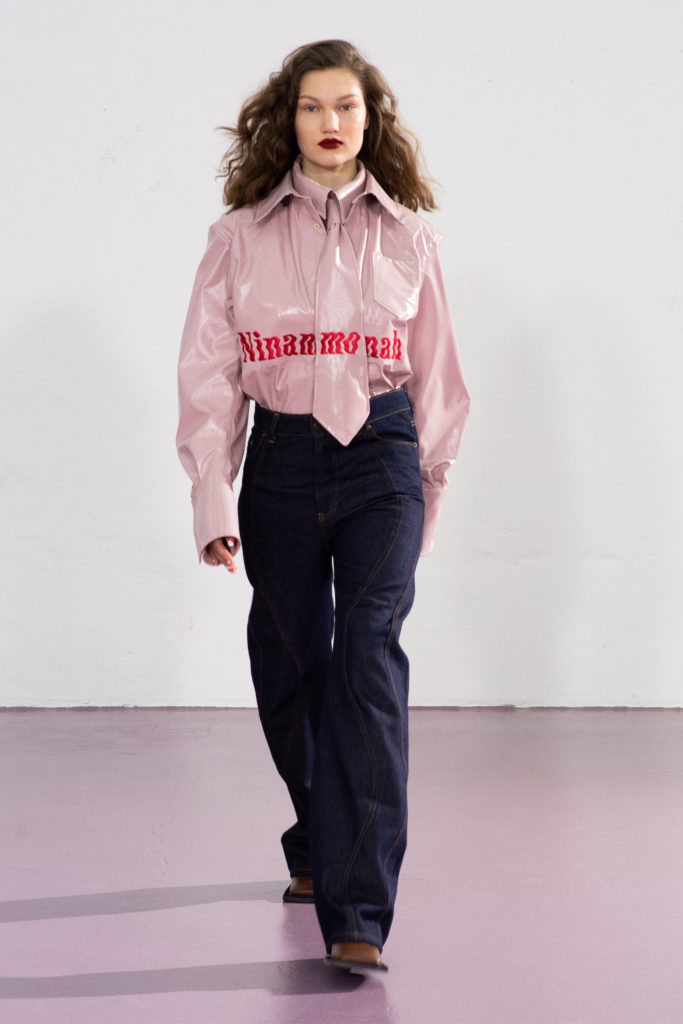 This is the second season Ninamounah collaborates with artist Stef Van Looveren, with whom the brand has developed a revisited line of accessories starring their already signature bags depicting human male and female gonads in a wide range of colours, from bubblegum pink to metallic gold.