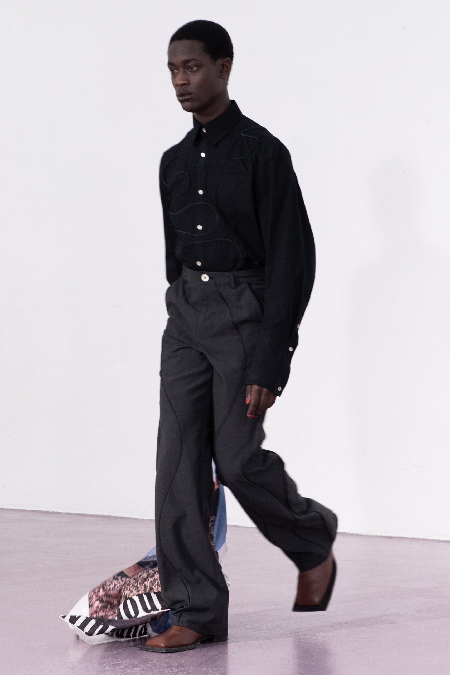The collection, presented with an audiovisual piece in runway show format, marks a new chapter in the path of the Amsterdam based brand, debuting at Paris Fashion Week this season.