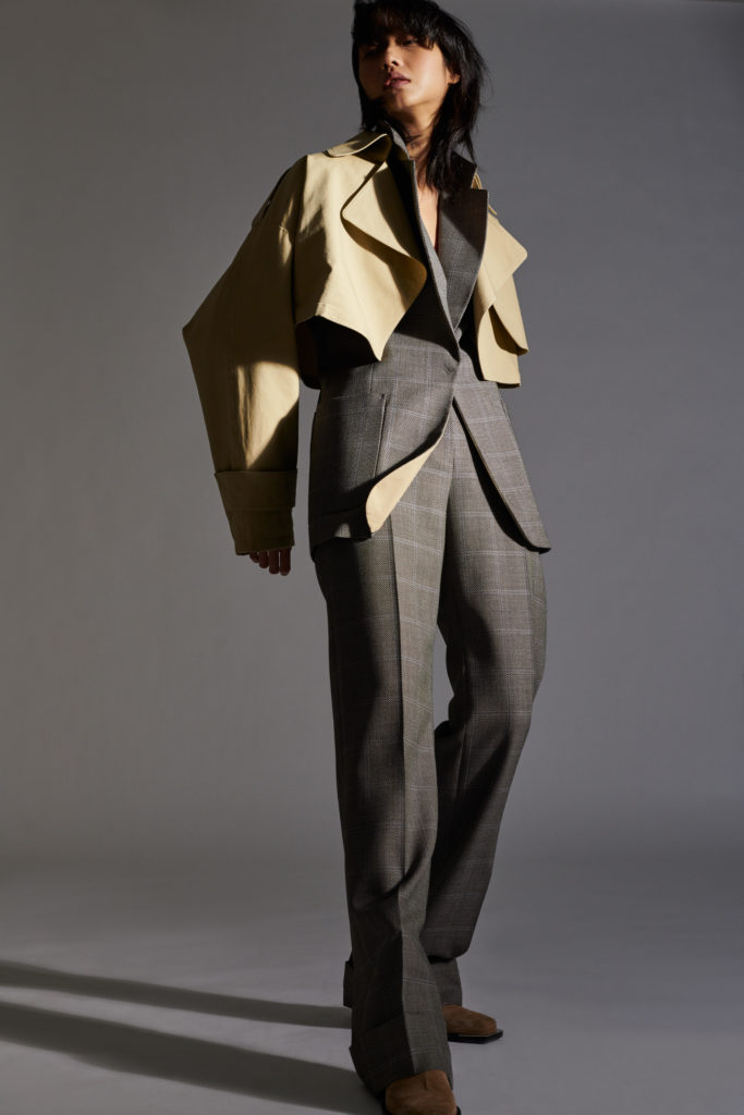« It’s all about a partition around trench and tailoring, playing with superposition and layering. The simplicity of a total look : coat and over-the-knee boots. Straight to the point. » – Barbara