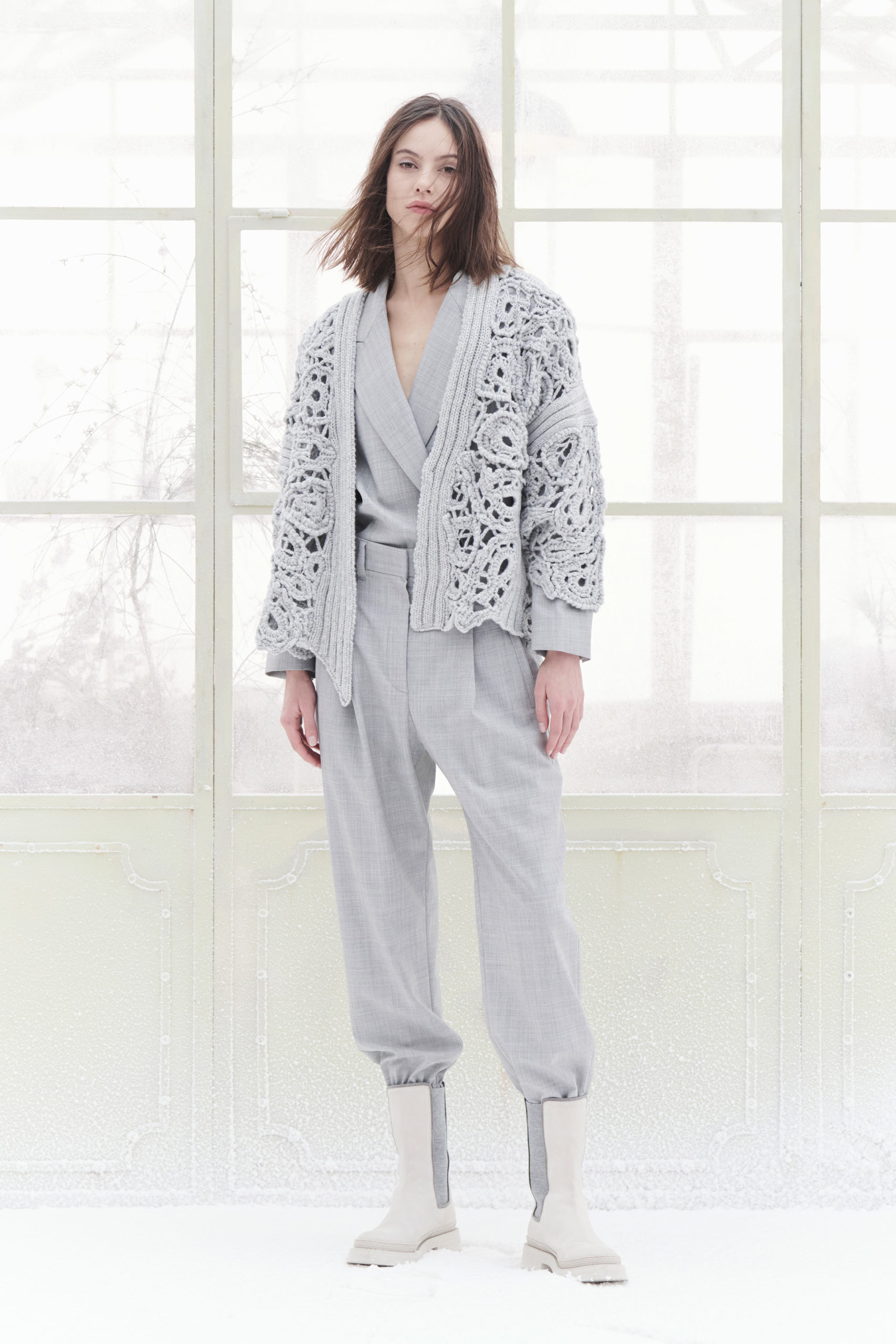 Les qualités inimitables des mailles influencent agréablement chaque catégorie de la collection pour créer une enveloppante saison de tricot. Pas seulement les souples et légers manteaux, blazers, doudounes ou encore tailleurs, mais aussi les robes, total look et ensembles, et enfin même les sacs et les chaussures sont parcourus par ce rassurant fil conducteur, qui diffuse partout un confort à la fois précieux et moderne.