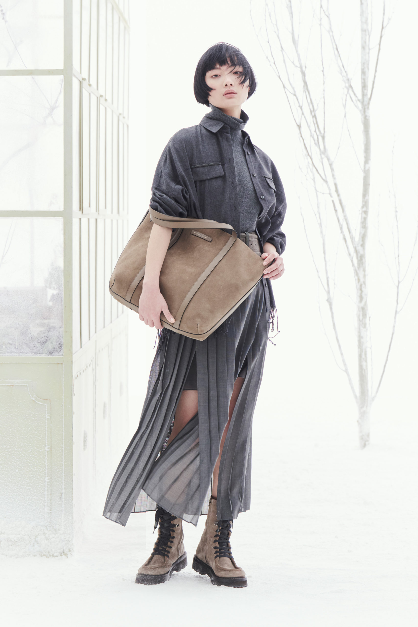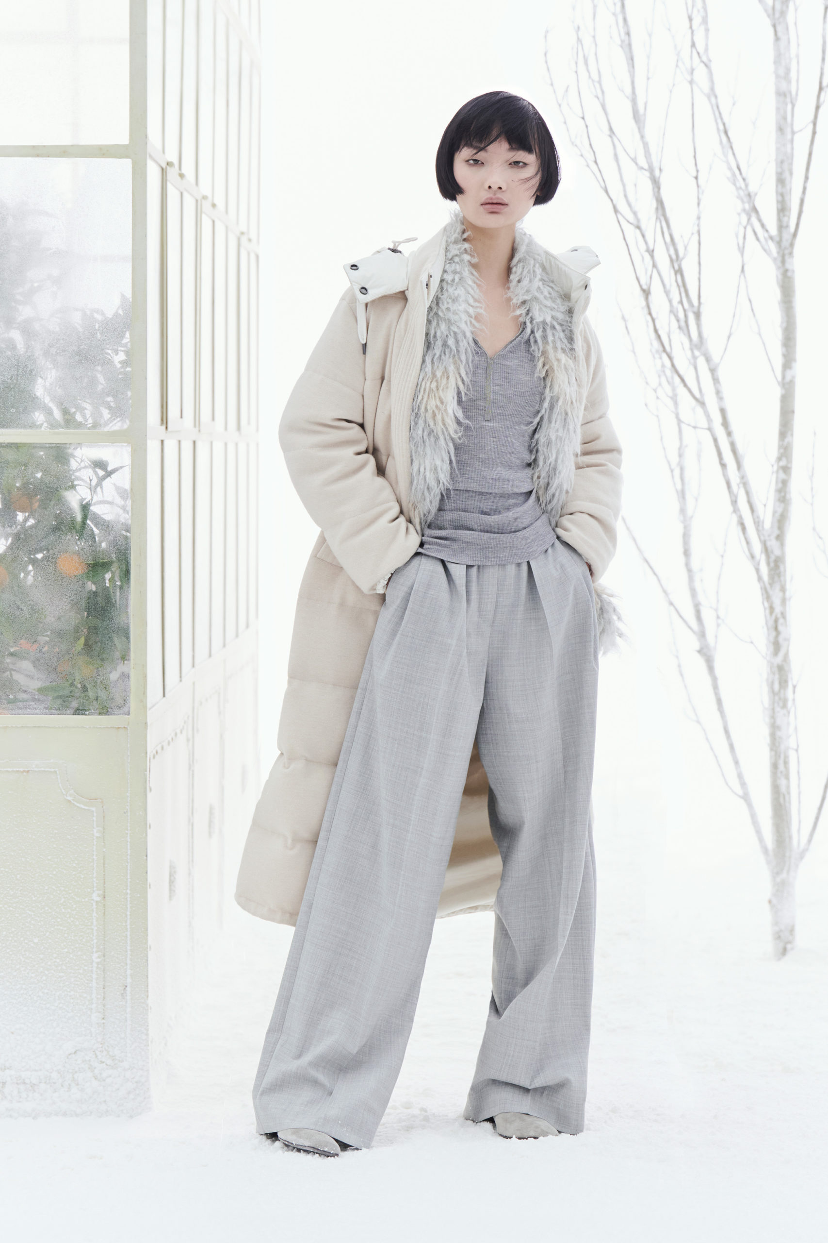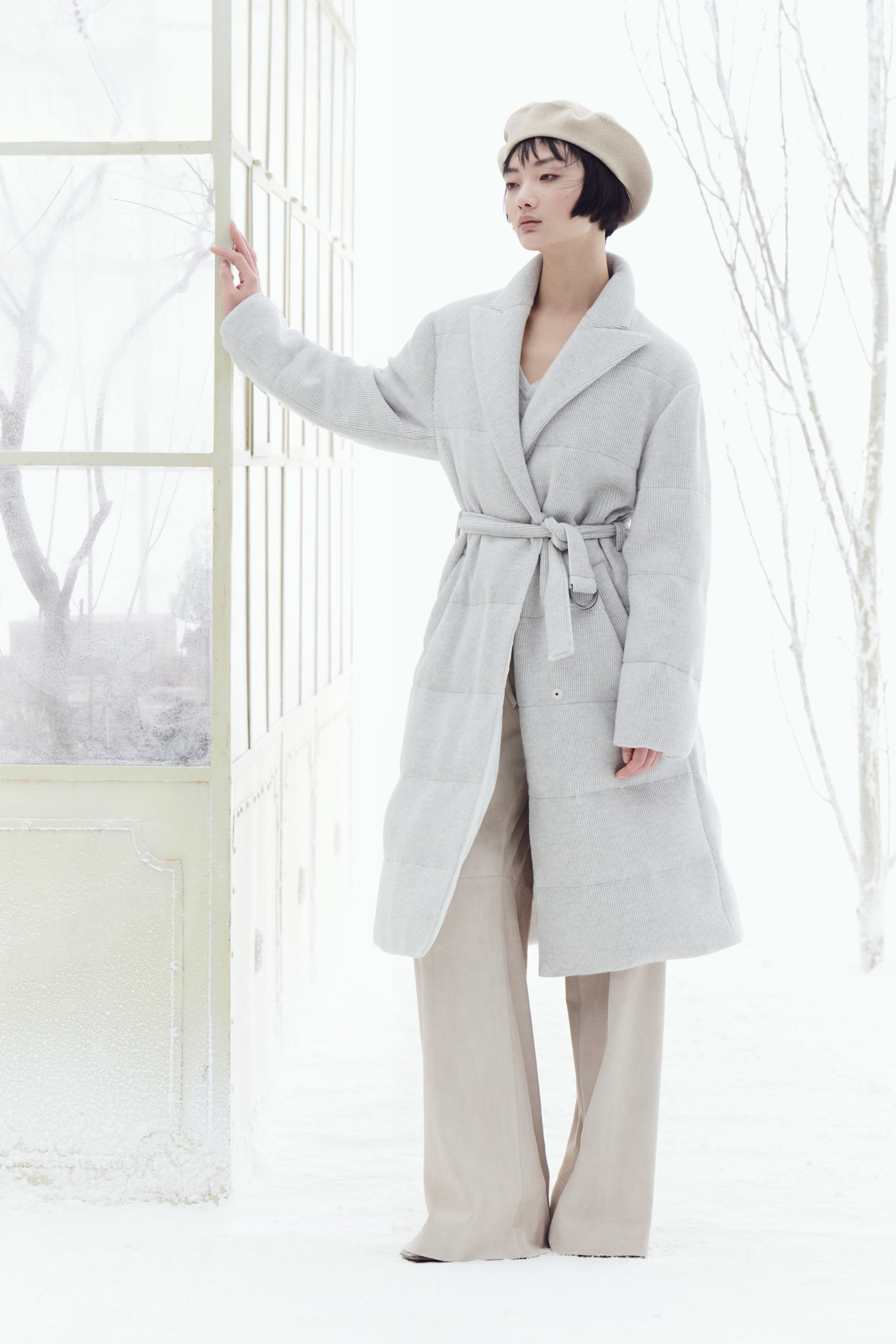 Les techniques uniques de fabrication, la douceur des tissus, les volumes souples représentent les principes d’une pièce confortable, flexible et proportionnée. Les fibres nobles sont soulignées par des tissus intemporels, s’associent à de fascinants effets organiques et à de délicats reflets brillants, toujours sous le signe d’un goût raffiné et minimaliste. Malfilé, tweed et checks dans les tonalités intemporelles nous suggèrent des atmosphères outdoor plus proches de la nature que de la ville.