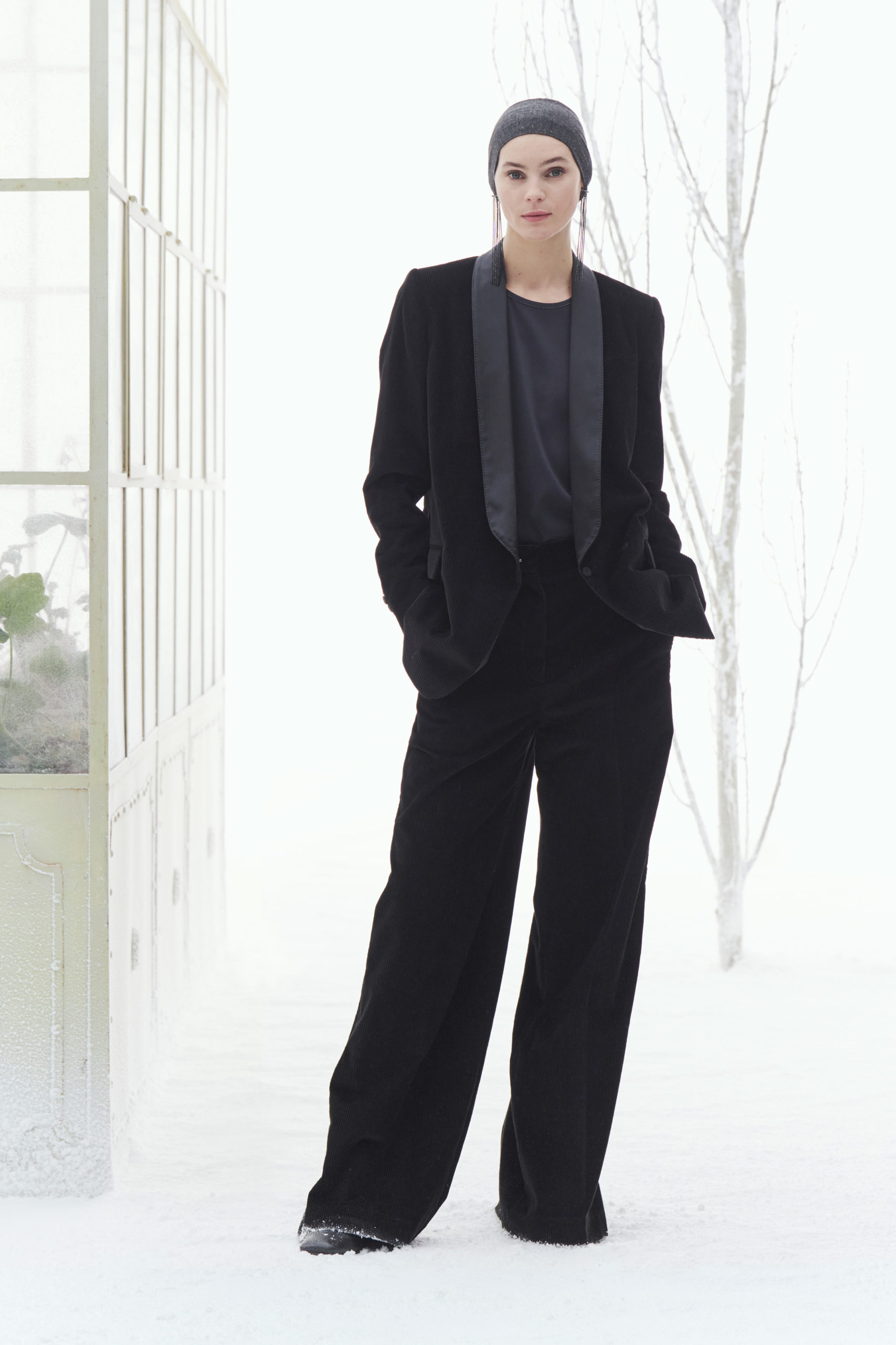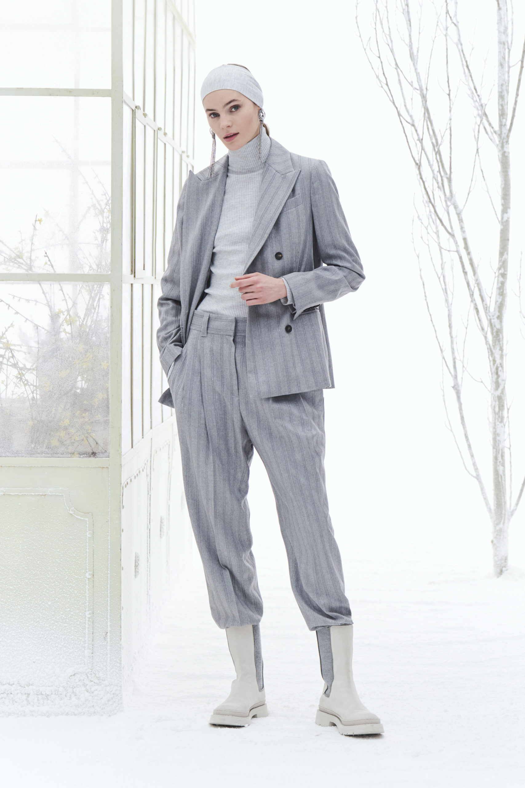 De plus, la mode a le regard tourné vers le futur et se prépare de façon positive à dessiner les frontières d’un style « nouveau formel ». Les tailleurs assortis en jersey de fibres nobles interprètent au mieux la recherche d’un bien-être équilibré et élégant, aux formes fluides et à l’esprit polyvalent, adaptés pour être associés, selon l’occasion, à des bottes, des sneakers ou encore des chaussures plus formelles.