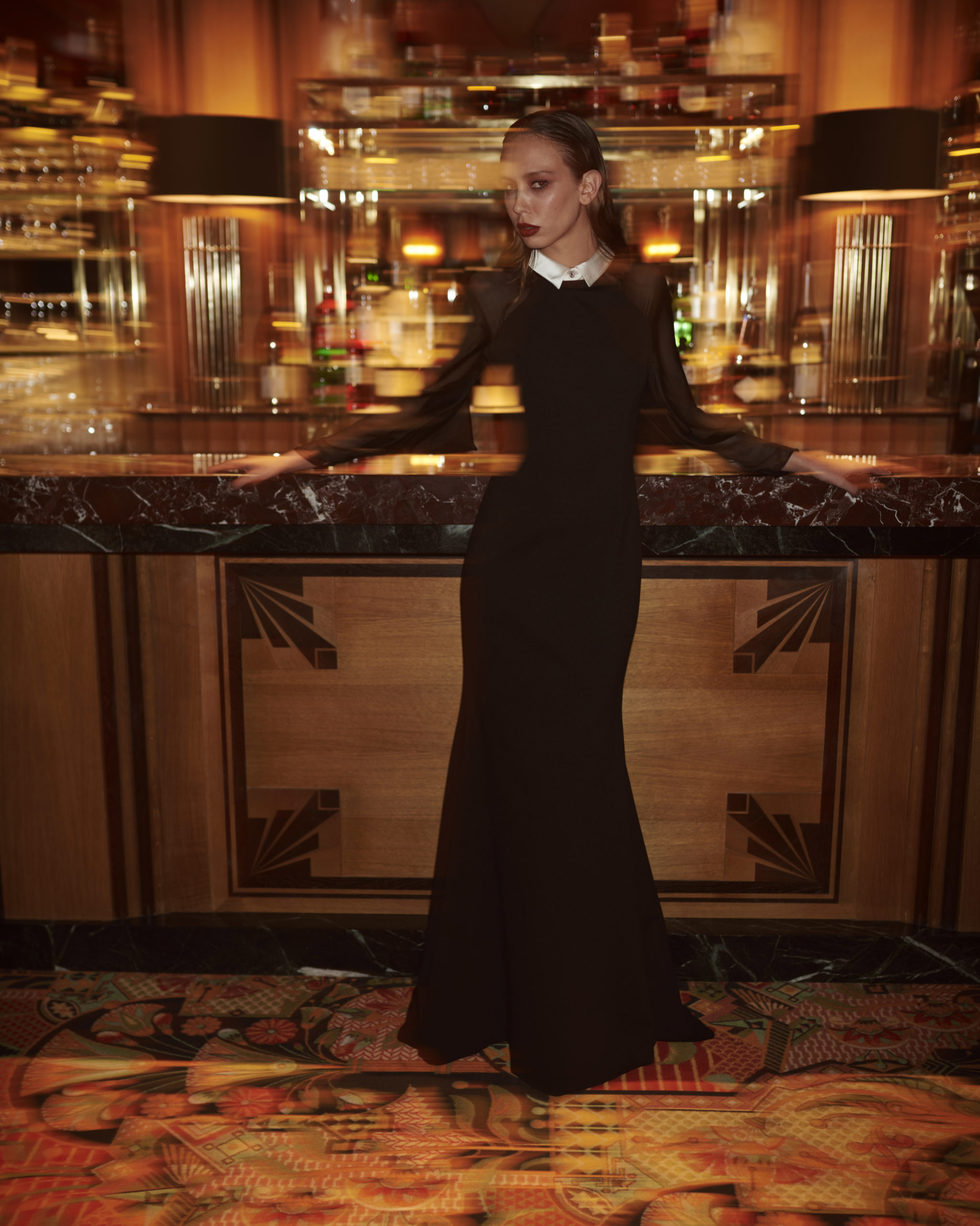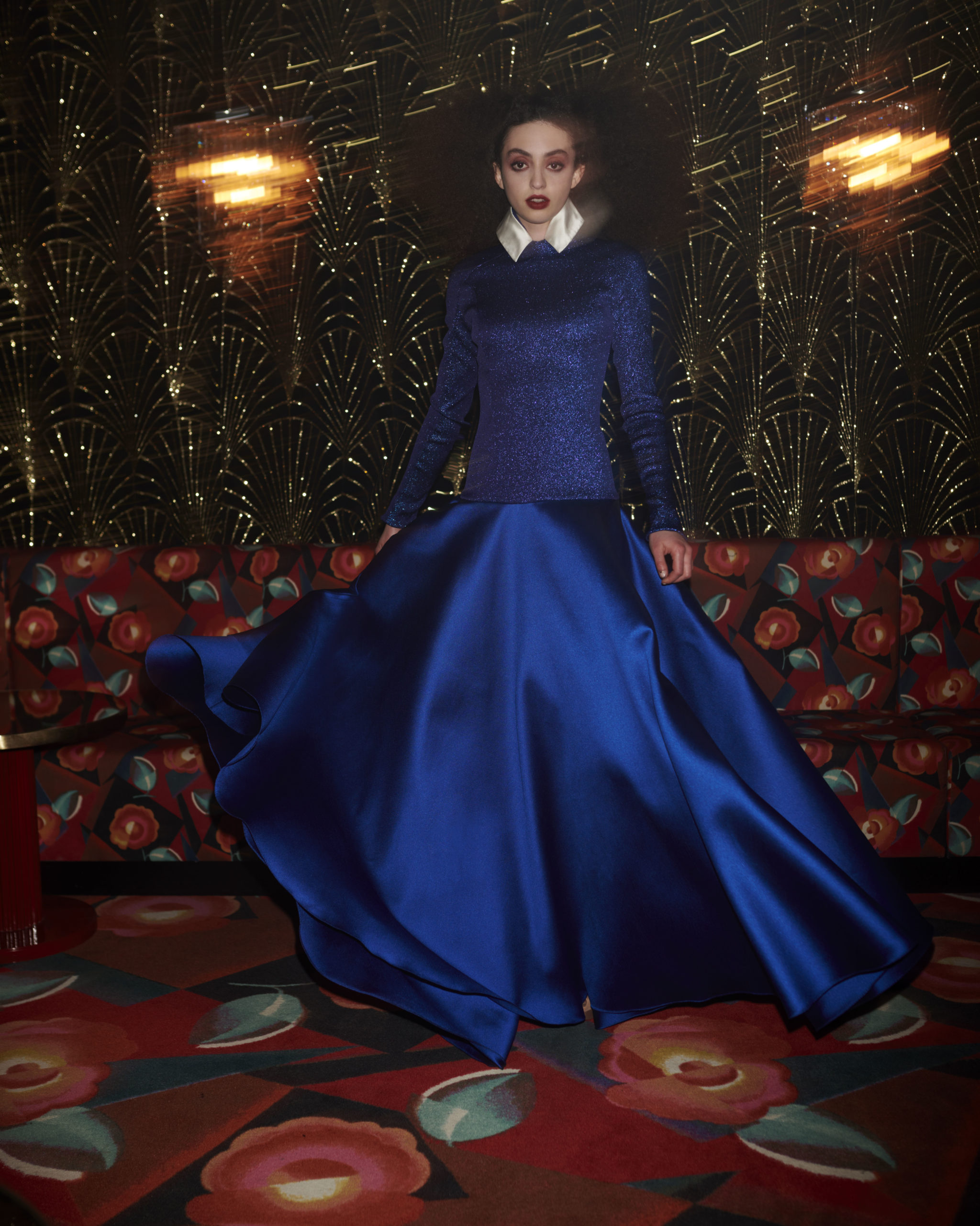 Alexis Mabille vous fait entrer dans son univers éclectique pour célébrer une liberté bientôt retrouvée. Dans ce décor hors du temps qu’il a créé pour le plaisir et la fête, il propose un vestiaire qui joue avec les volumes et la lumière. Maniant les textures pour créer des reflets mats et brillants, il offre une palette mêlant les tons jaunes et beiges dorés, les bleus et noirs, ponctués de blanc. Une silhouette précise qui construit le mouvement pour vous entrainer dans une danse exaltante.