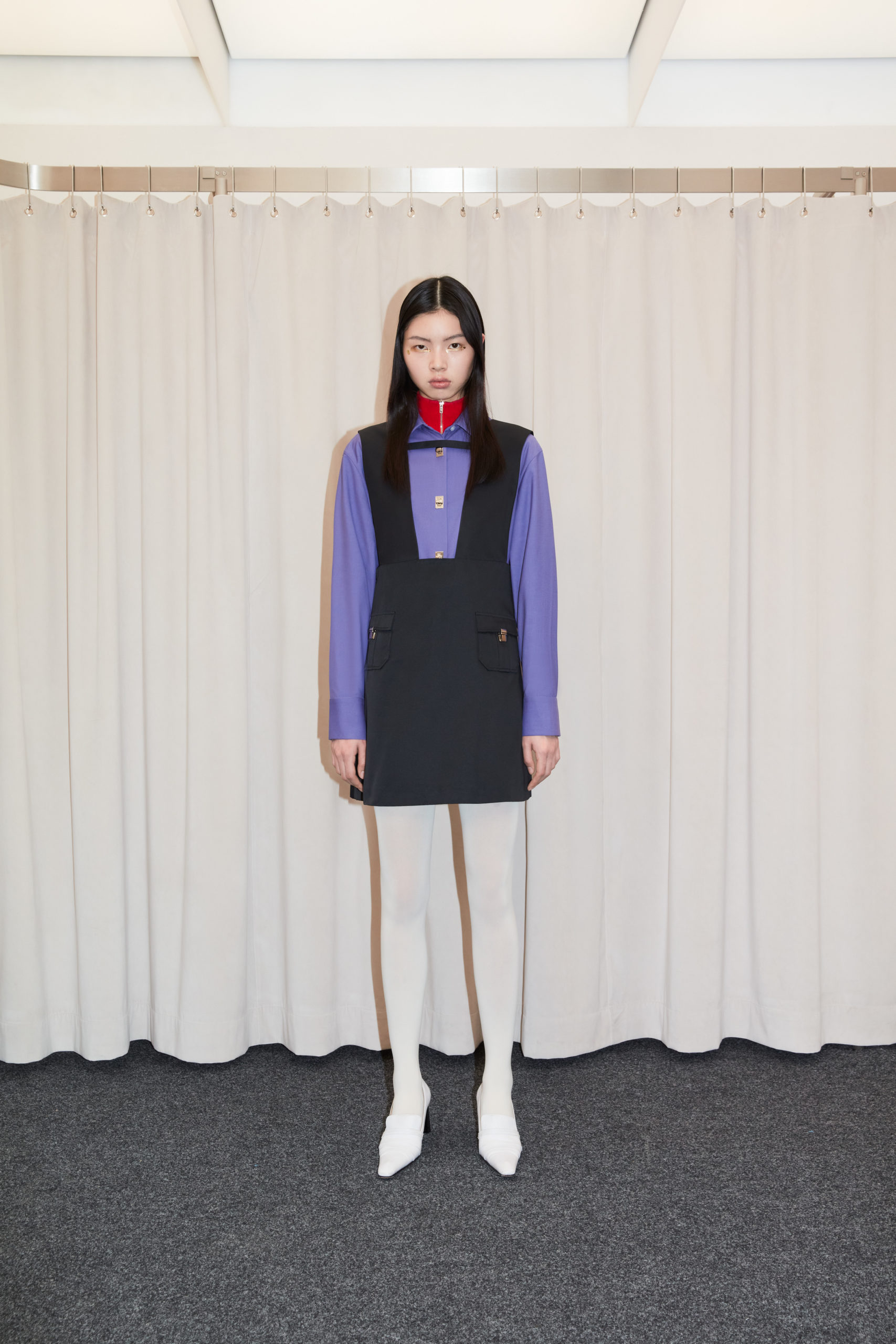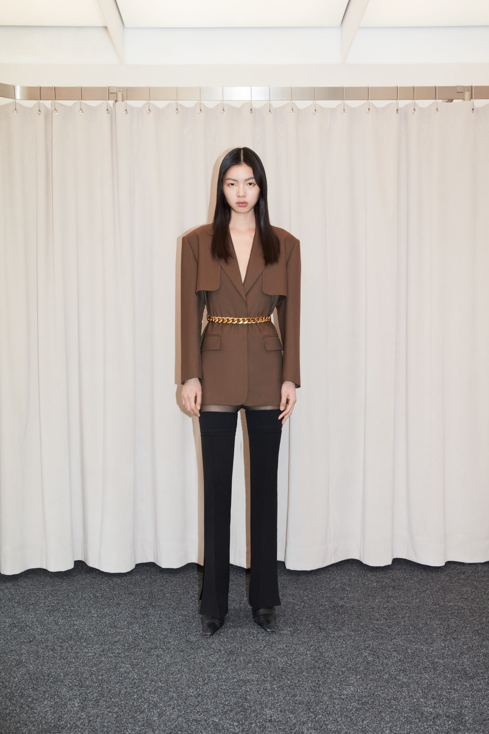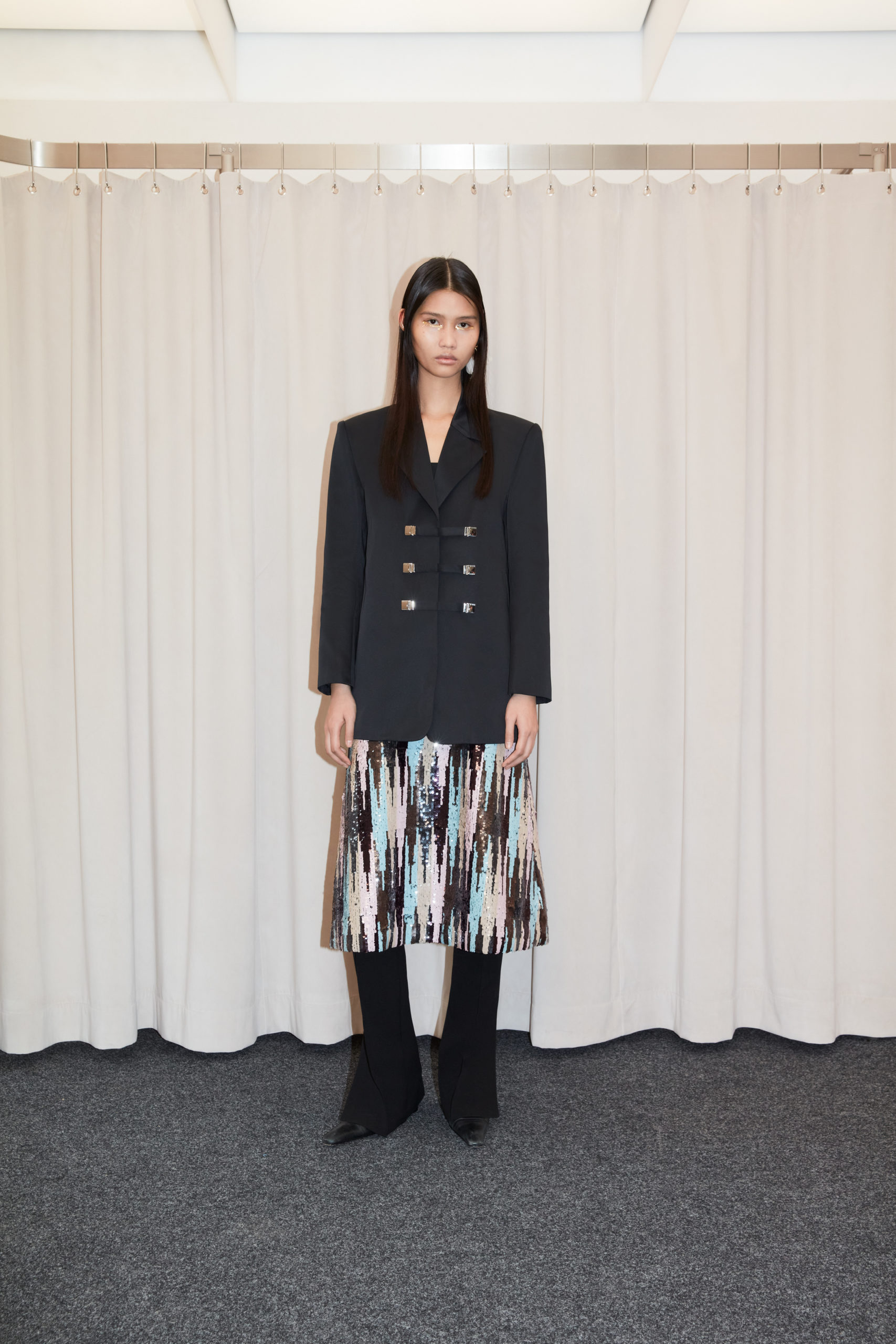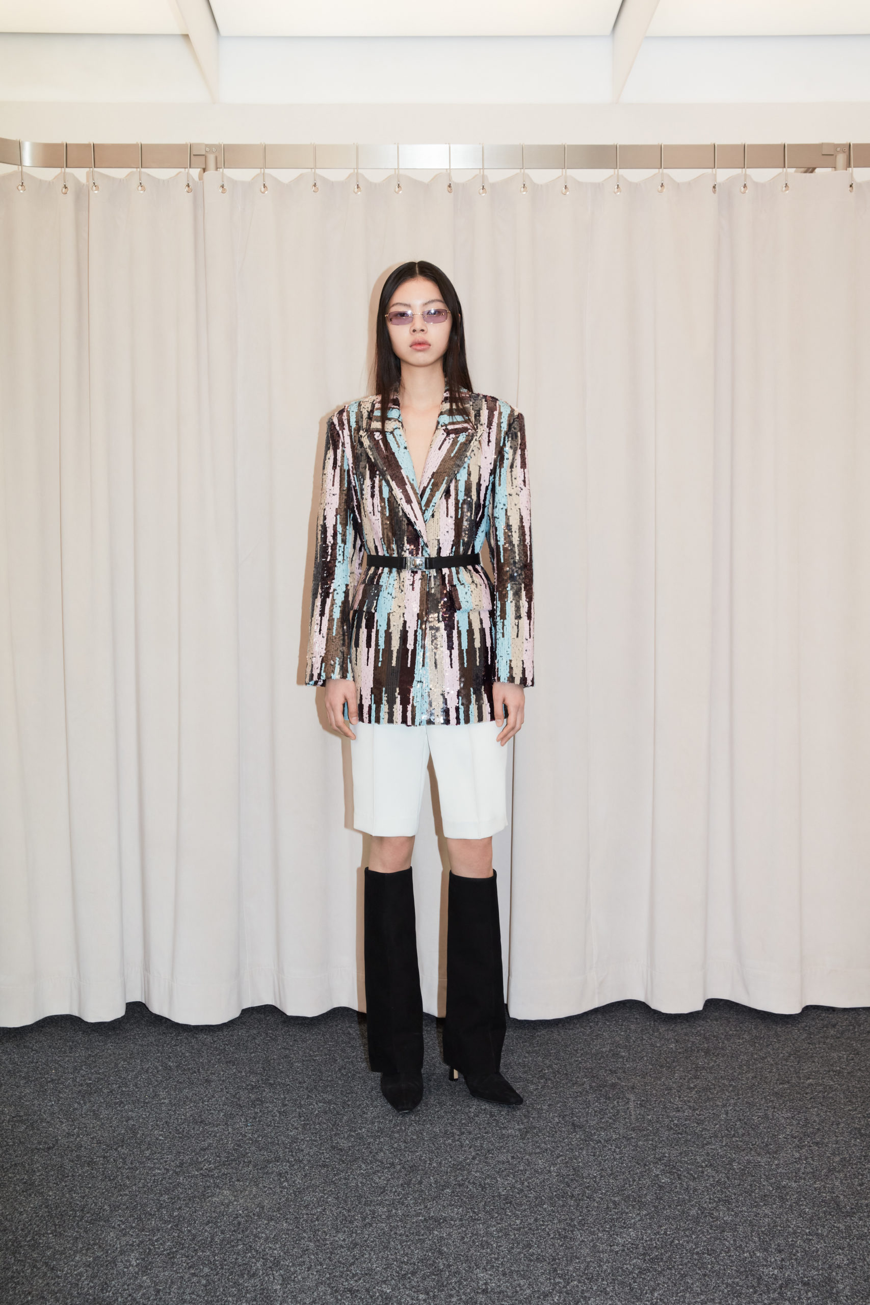 The CALVINLUO Fall/Winter 2021 collection celebrates its icons while it ushers the brand into a new era: the iconic cropped blazer recurs in richer colors and fabrics, the simple and crisp long windbreaker is now embellished with a textural metal chain, the abstract sequin embroidery – borrowed from the oversized dresses of previous seasons – now adorns an every-day camisole, basic sweaters and stretch knit shirts vibrate in colored patchworks. The icons are emboldened.