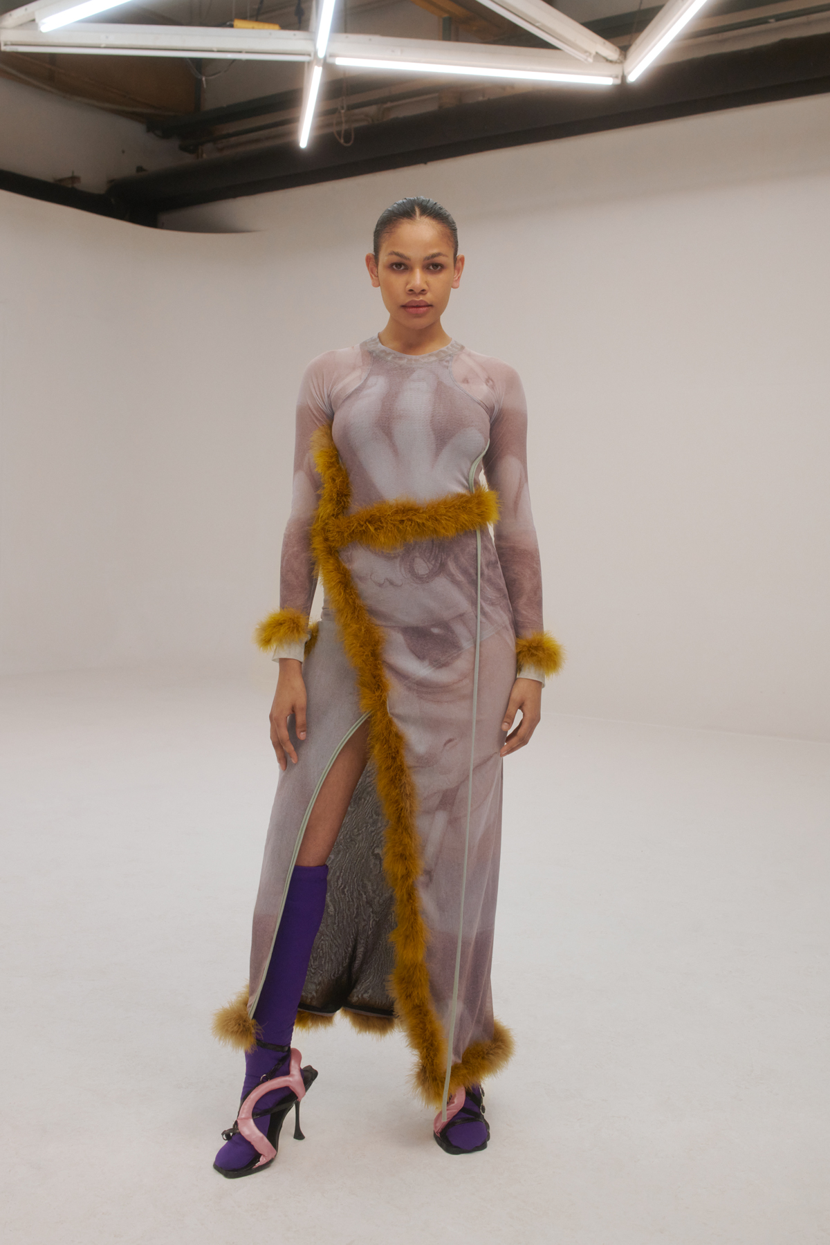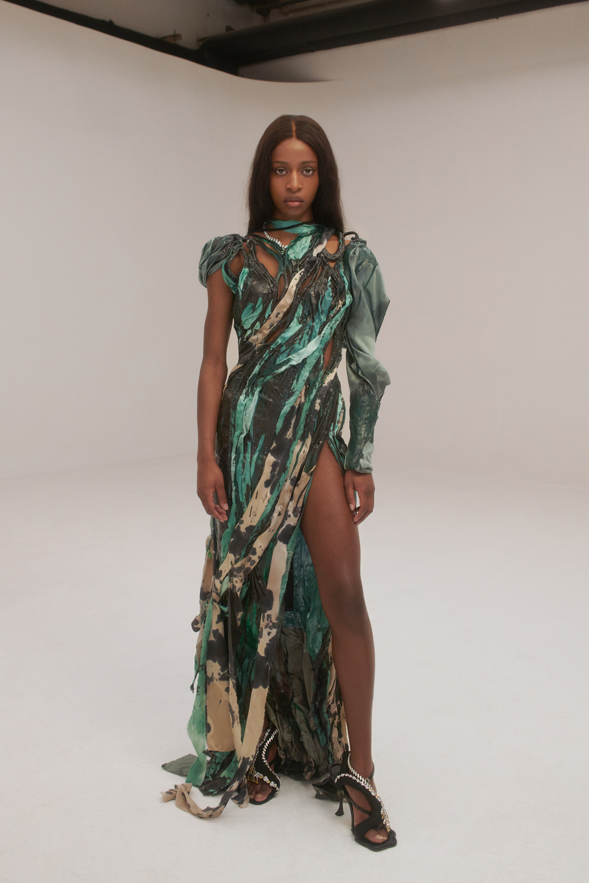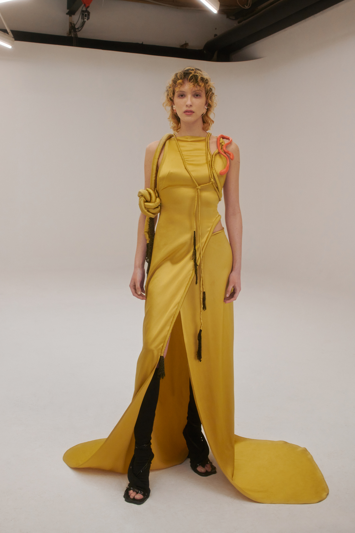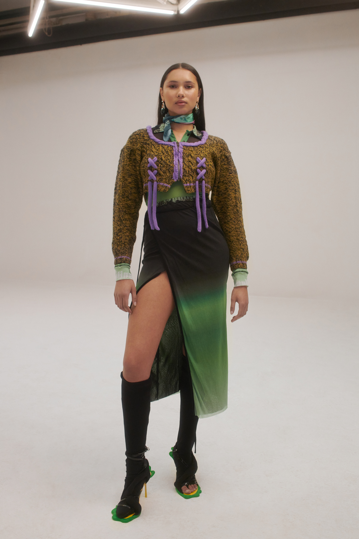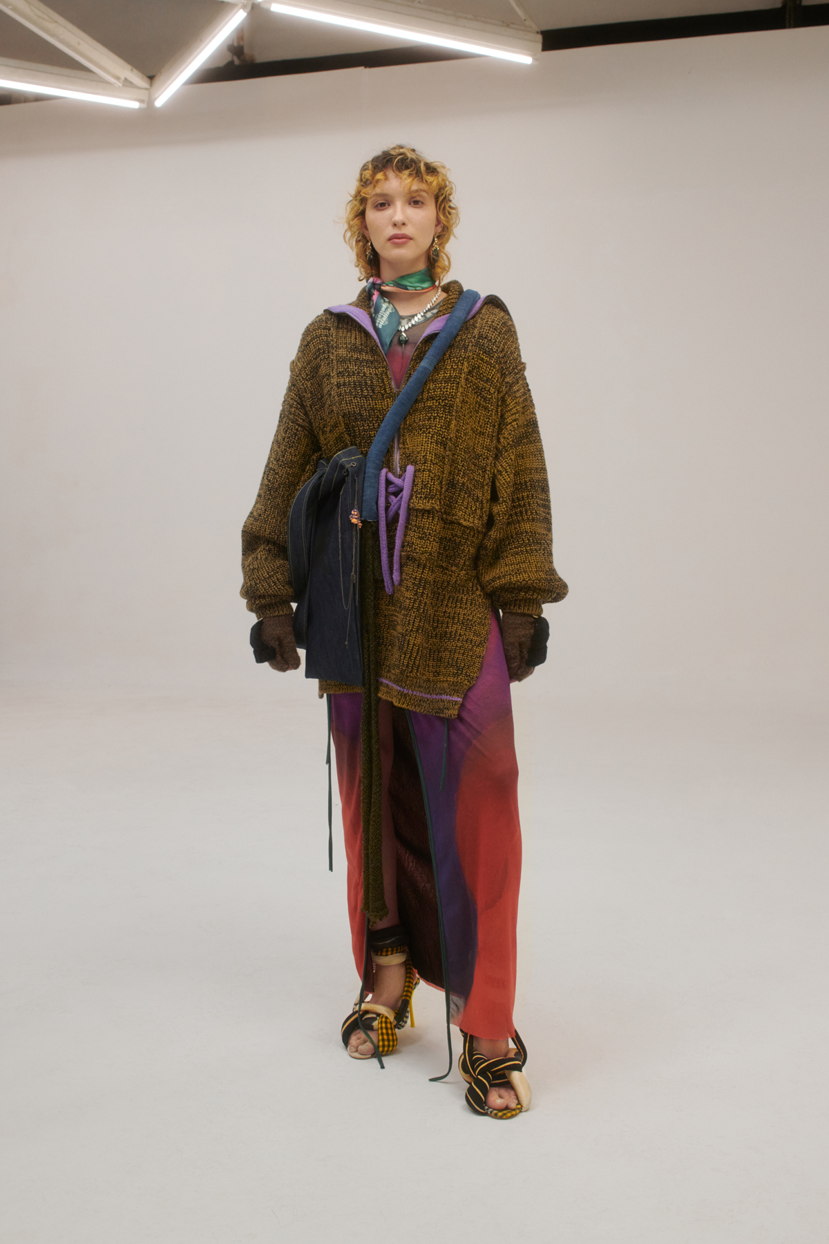 Ottolinger AW21 est fondamentalement un grand récit à la fois réaliste et magique, un mélange de réinterprétation du passé et d’espoirs pour l’avenir, qui s’appuie sur les thèmes de la rébellion, de la résistance, de la transformation de la tradition et du défi de l’autorité : tous les piliers clés de l’esthétique de « future-elf ».