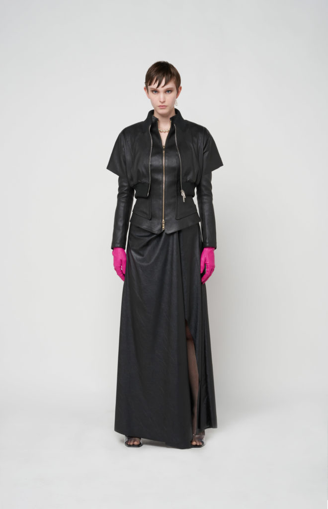 Les robes ou les blousons en cuir ou daim stretch suivent parfois le corps, retiennent les