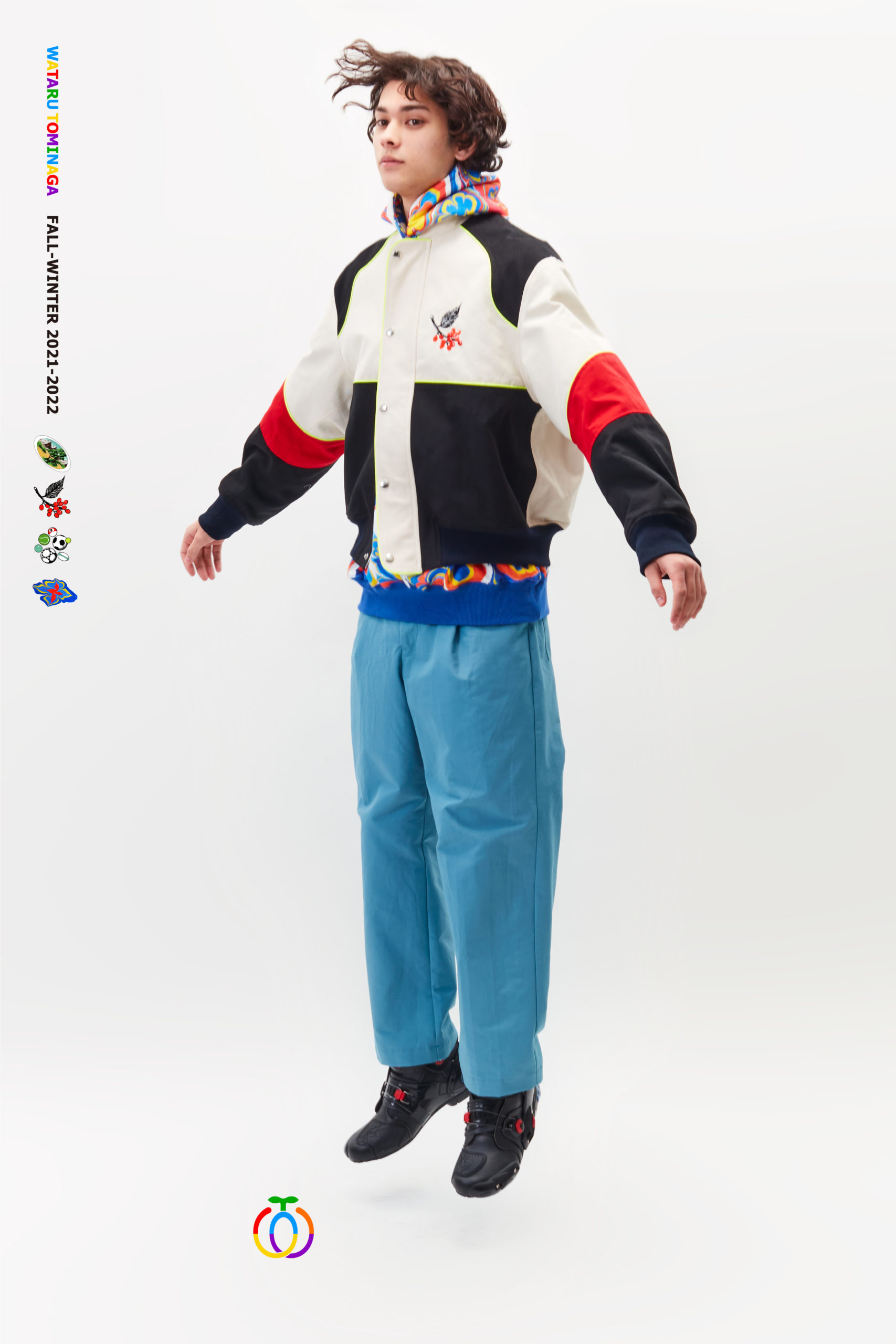The designer’s Fall-Winter 2021-2022 collection is derivative of the colors, textures and aged patinas of vintage pieces from the 70s-90s, sourced from all over the world during his global expeditions. Tominaga is most interested in the culture clash of various styles and backgrounds, merging distinct nuances to produce pieces that are conspicuous yet harmonious. Details of a racing jacket, paired with a marble print textile or a photo-printed design from a foreign land, are examples of the dynamic tension the designer hopes to project. He aims to create a playful collection of retro, yet contemporary, pieces with utilitarian details. His work is the true embodiment of eclecticism.