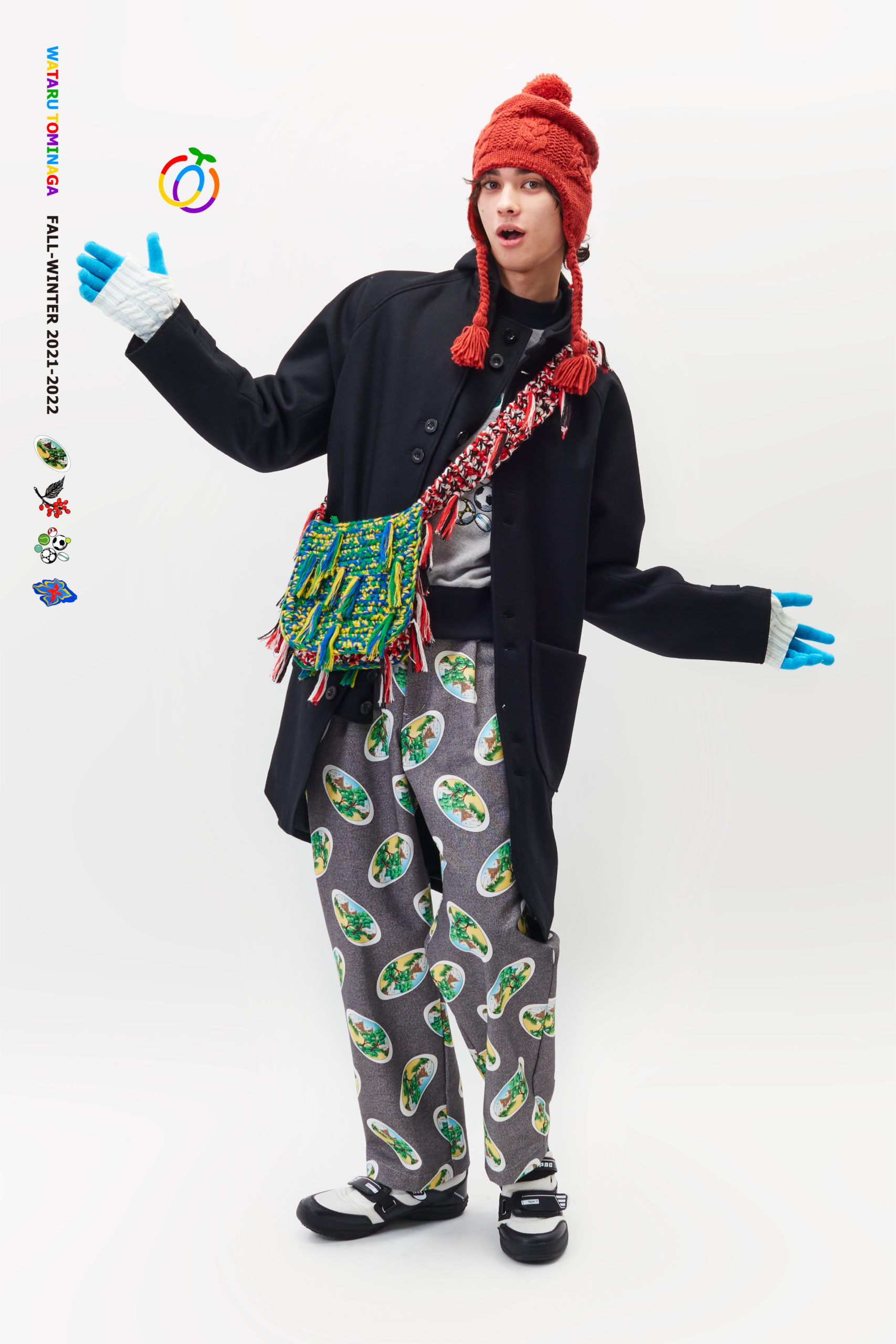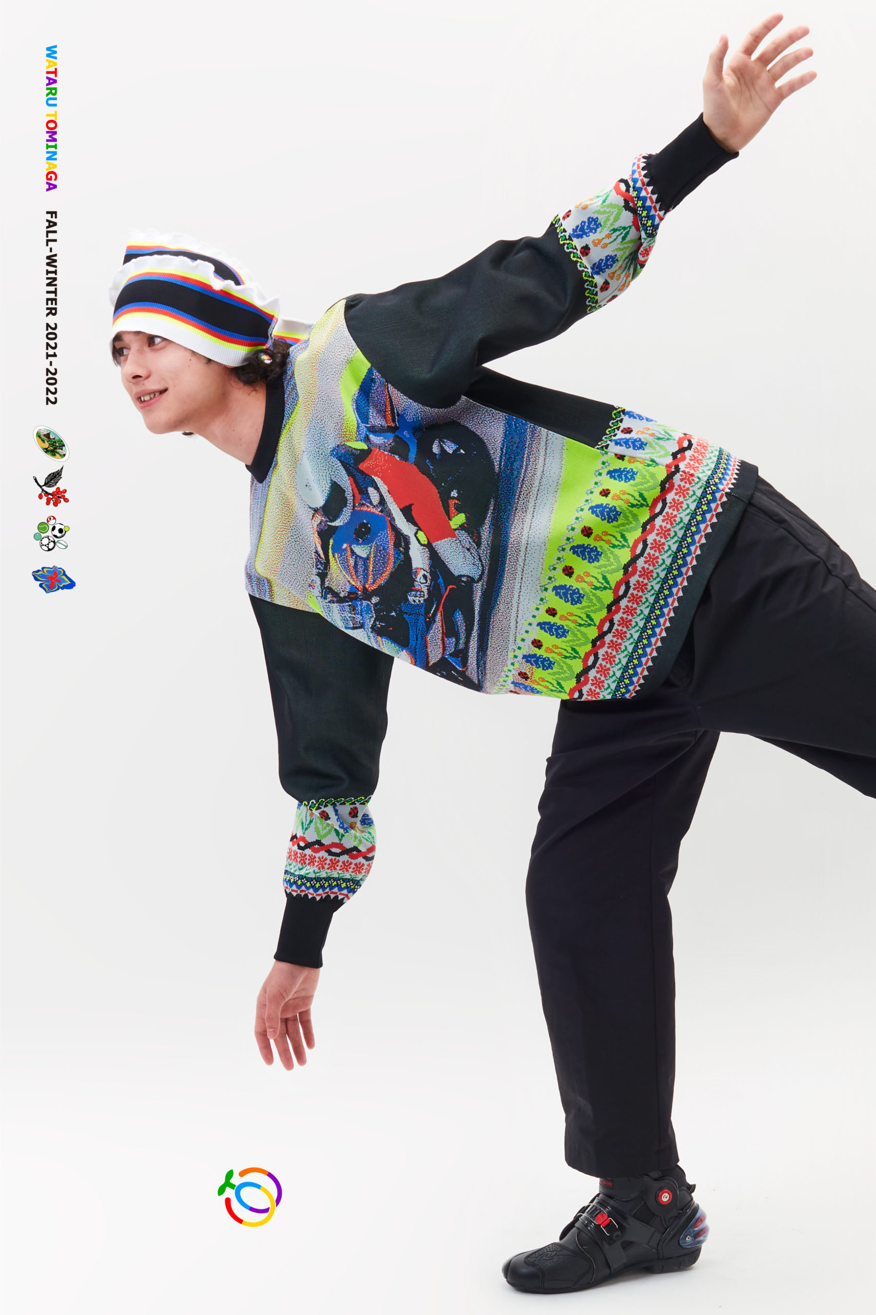 Born in 1988 in Kumamoto, Japan, Tominaga currently lives and works in Tokyo. With an international outlook, Tominaga pursued his education in Japan, the UK, and Finland. He attended the Musashino Art University and Bunka Fashion College, the University of Art and Design in Helsinki, and Central Saint Martins College of Art and Design, receiving a BA for Fashion Print. His global education has enhanced the vastness of his design aesthetic. He has since worked with illustrious design houses such as John Galliano, Eddie Peake, and BLESS. Additionally, he has earned a MFA at the Chelsea College of Arts at the University of the Arts in London.