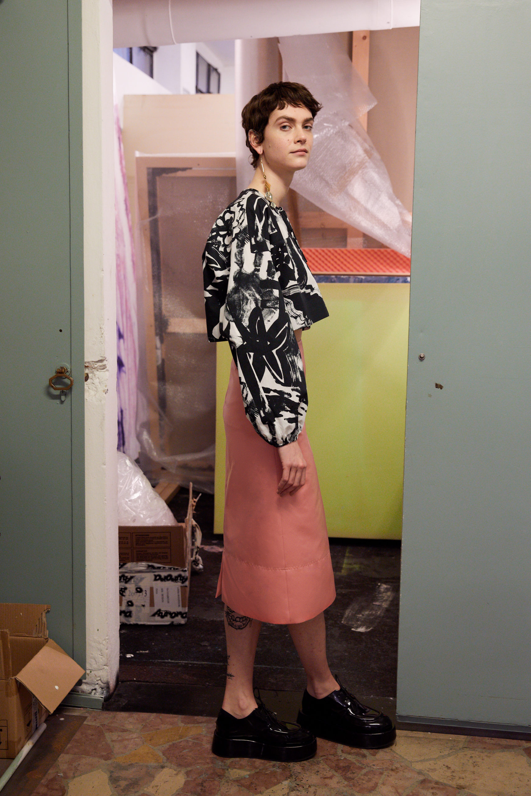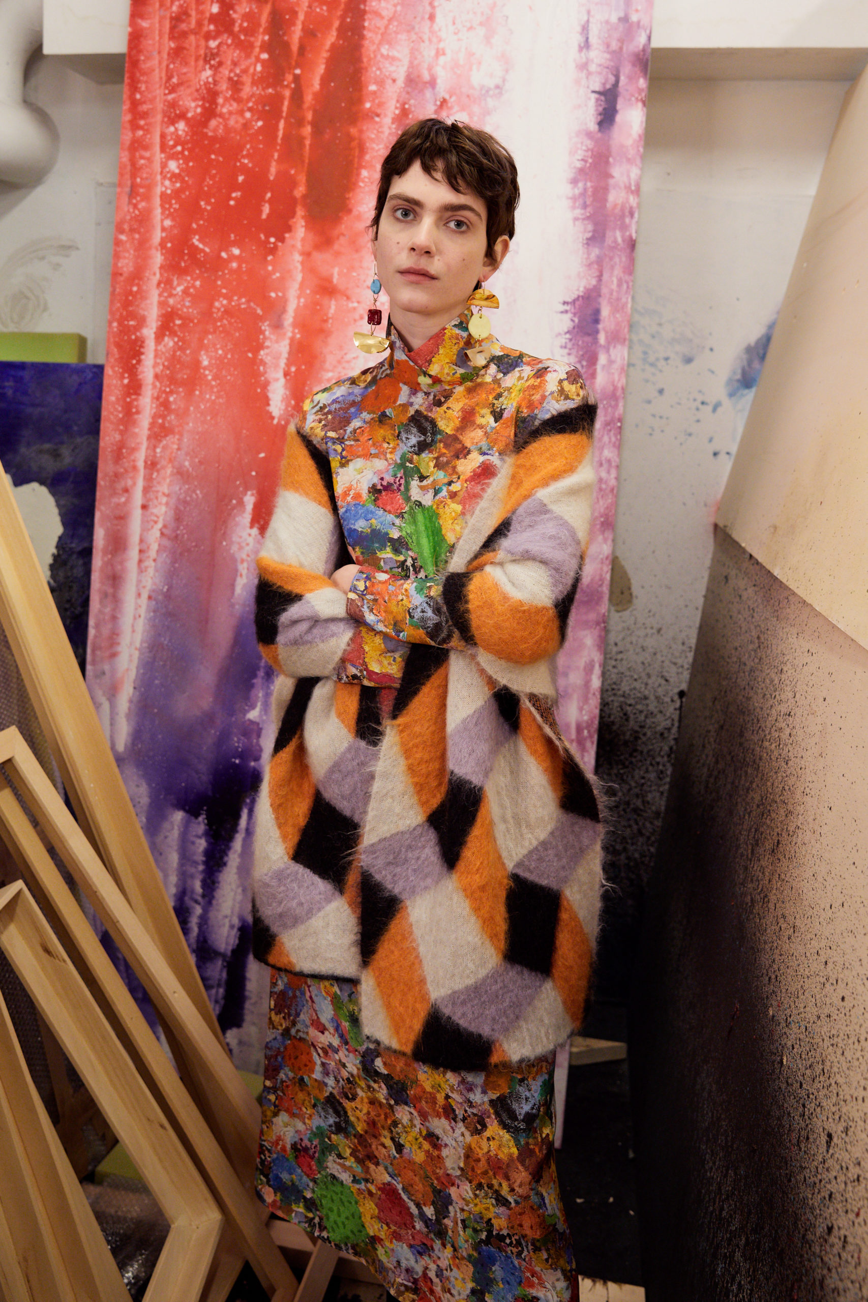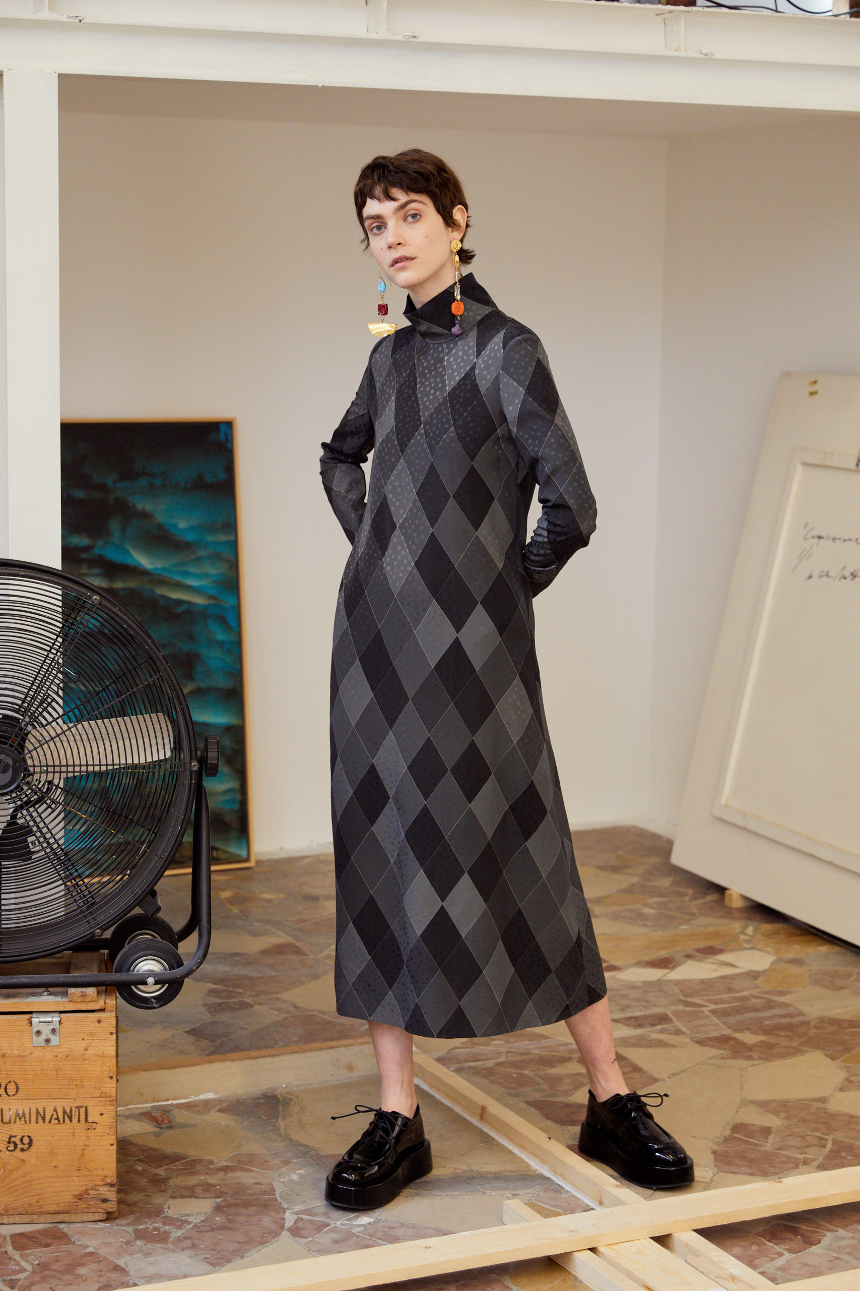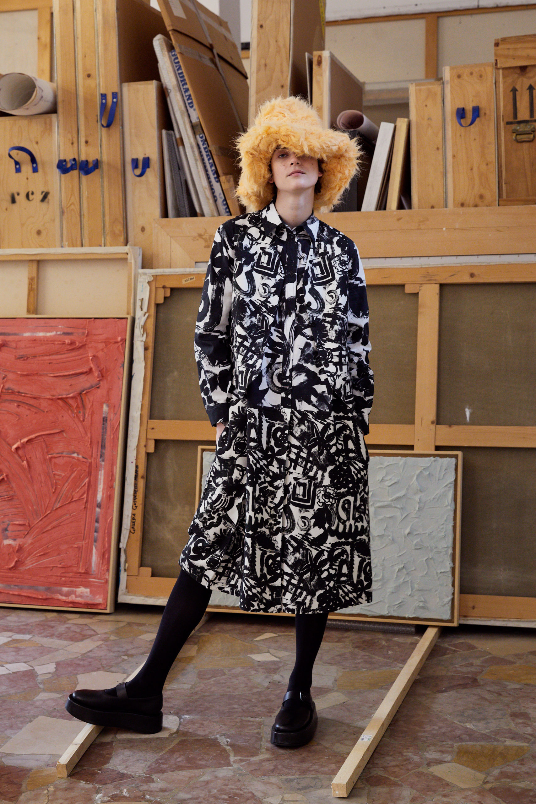 The lookbook was shot at designer’s friend, the painter Roberto Coda Zabetta’s studio in Milan where the collection felt very much at home since their clothes have always resonated with the art world.