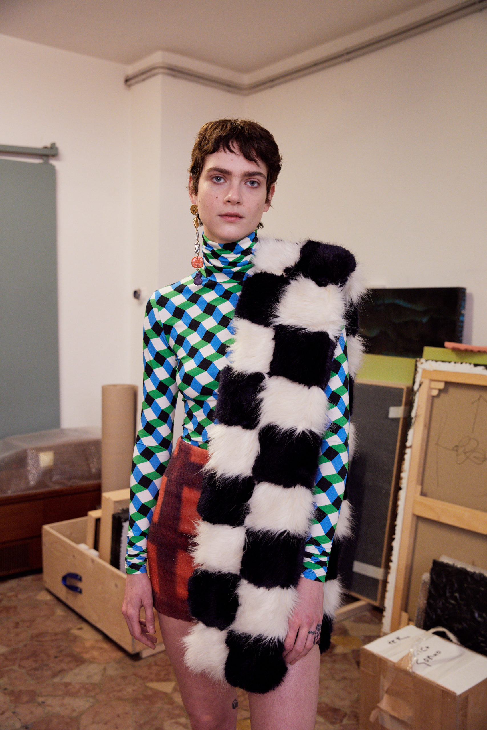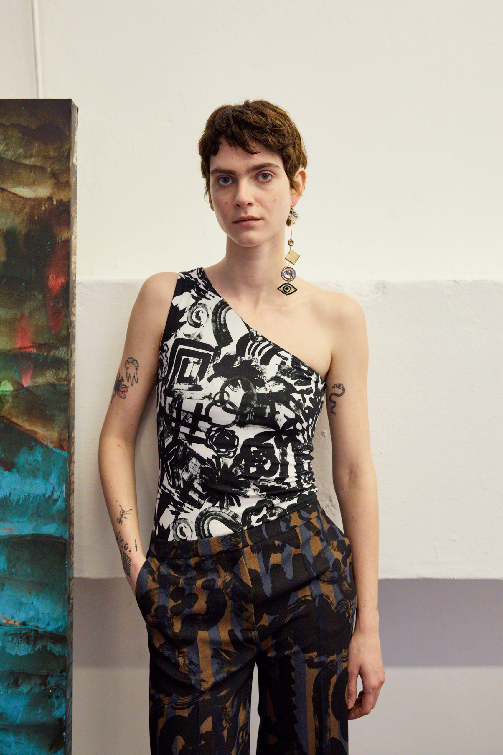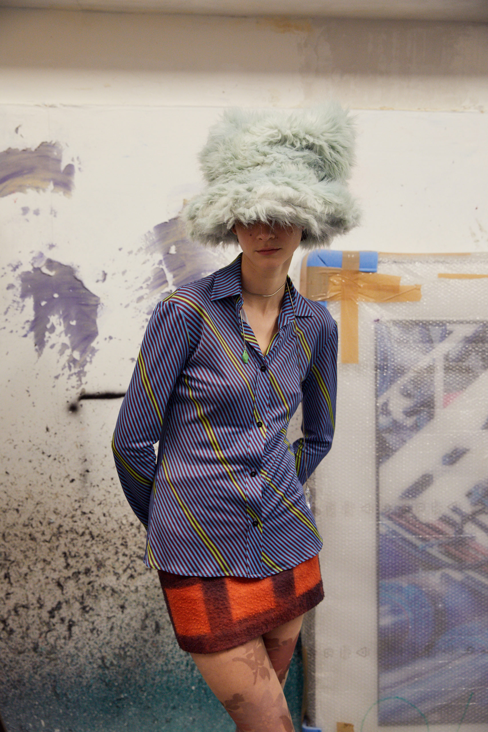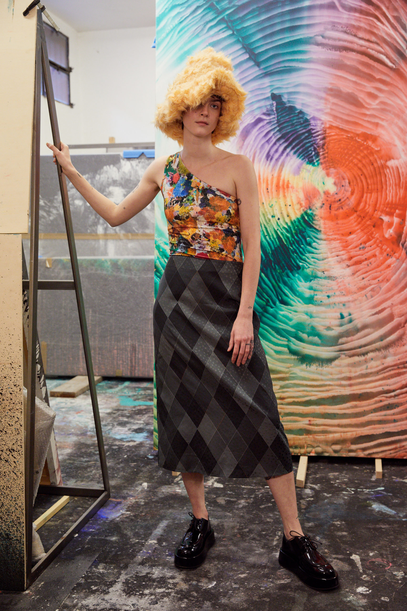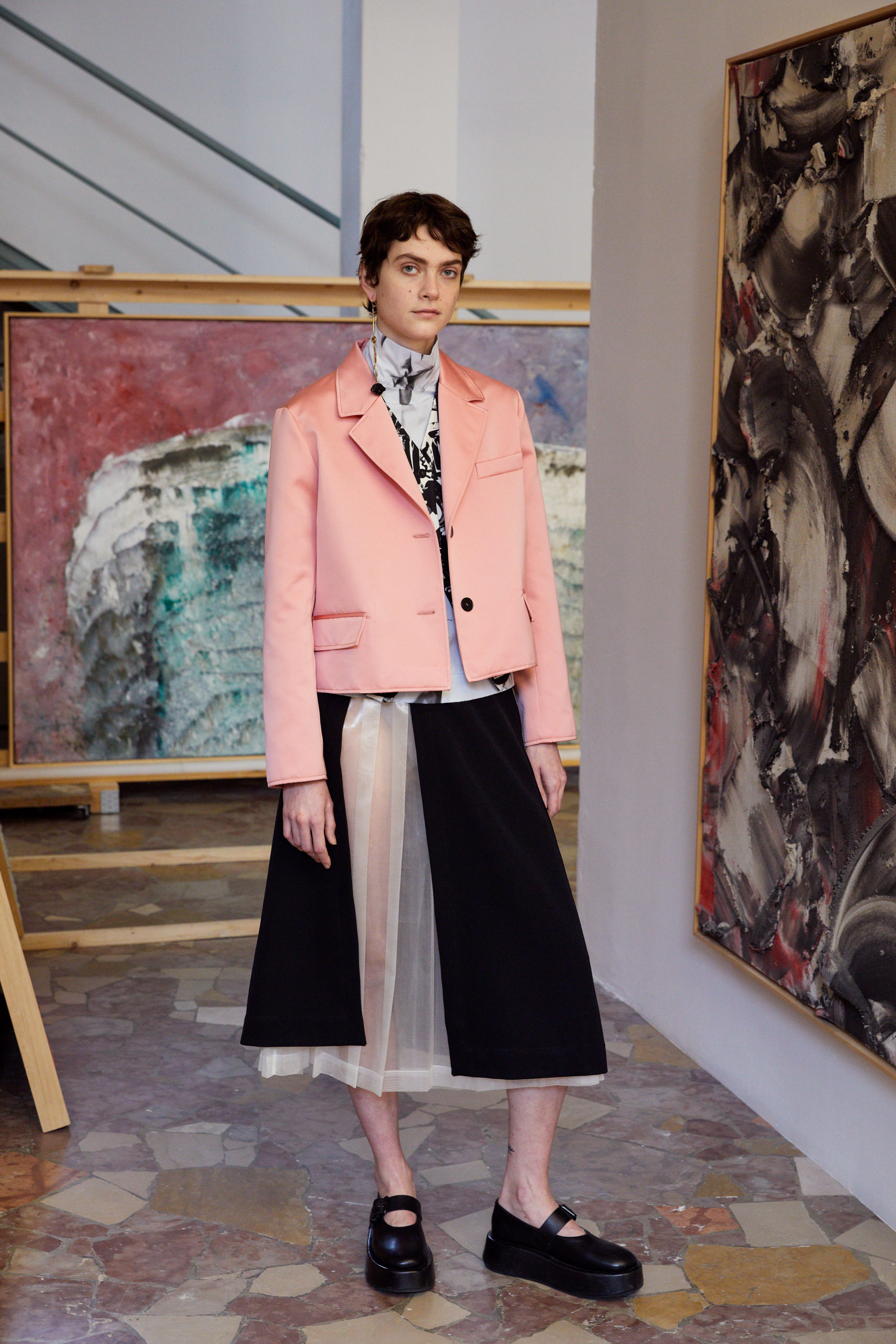 The lookbook was shot at designer’s friend, the painter Roberto Coda Zabetta’s studio in Milan where the collection felt very much at home since their clothes have always resonated with the art world.