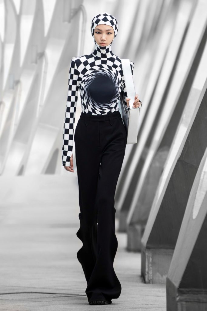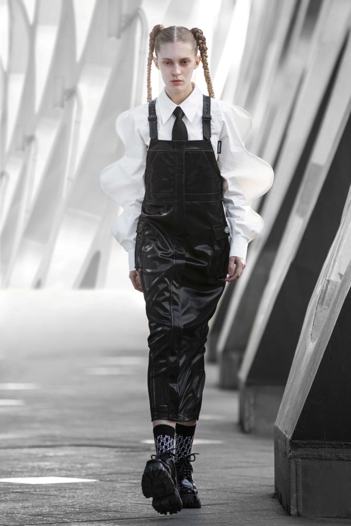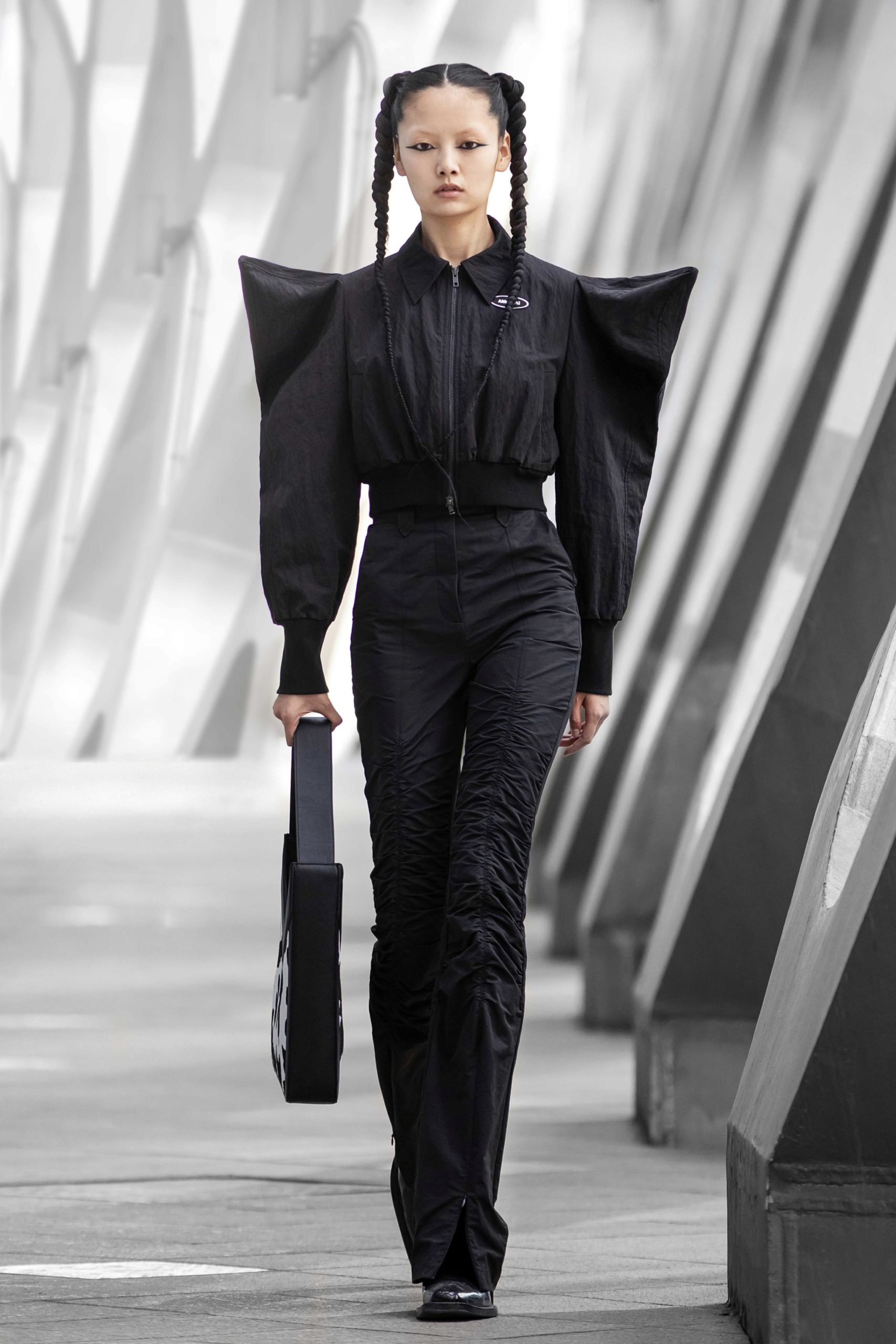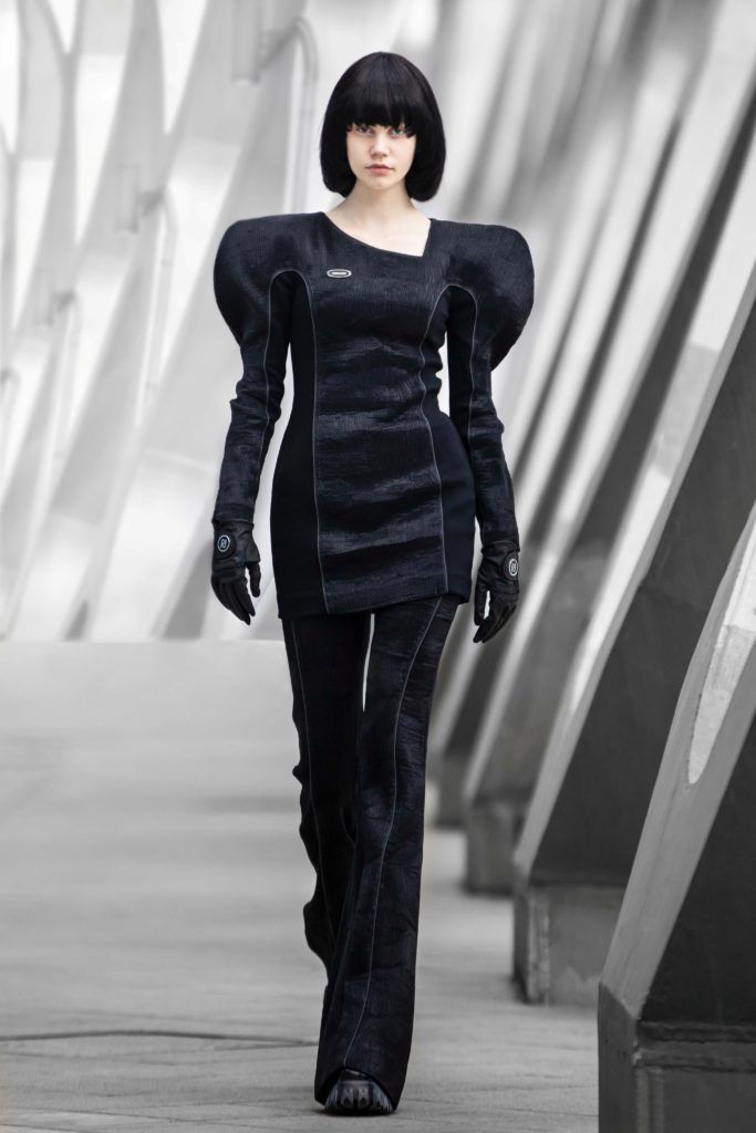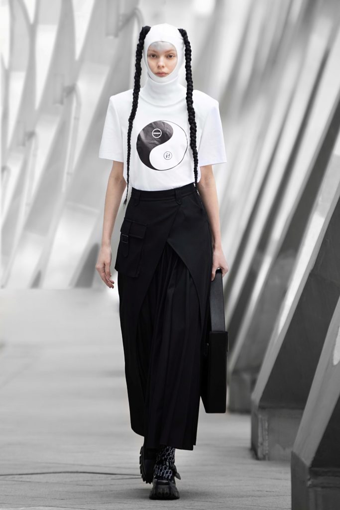 ANИAKIKI fw 21.22 collection inspired by the American film « Source Code », where the protagonist lives, and lives again, the last 8 minutes of another person’s life in a parallel space. With the feeling of the exploration and thinking of quantum dynamics and unknown parallel spaces, ANИAKIKI 2021 Autumn/Winter collection presents the human fantasies about the universe. At both sides of the wormhole, folding the space and the time, we are able to see the two sides of ANИAKIKI – explorations of the past and the future. Looking back and view the future for a brand whole new dimension chapter of ANИAKIKI. Through the wormhole we are going to visit four different young cultural scenes, through cultural icons, the symbol fragments of the times, deconstruct the new ANИAKIKI 2021 AW cosmic view. Scene #1: Millennium Waves Each era has its own new cultural movement, exploring underground clubs and the secrets of technology and the religions. This time, the wormhole takes us to the boundaries between real and illusory, decrypting the unknown.This chapter is based on Cybergoth, behind Y2K aesthetics and RAVE culture. Scene #2: The Great Space Age 1960s, the period of The Great Space Age for the US. This chapter traces the modern aesthetics of the universe 60 years ago, deconstructing the modern charm of ANИAKIKI 2021 AW, with the space as the back of the times. Scene #3: Tape Futurism Into tape futurism, the collision of 80s synth pop and gorgeous rock is the spark of Art Deco and rebellious silhouette. Scene #4: Galaxy Tribe the wormhole finally takes us back to the end of ANИAKIKI universe and visits the cosmic beliefs from the depths of the exclusive galaxy. The design uses winding braid weaving techniques,acid universe graphic print,3M retro-reflective materials, 3D shape of the sleeves and volume-sense profile, representing quantum entanglement and parallel space: In this season’s colour palette is discarding the high saturation colours from the past, only to retain the universe’s purest black, white and grey as the base tone, and use the futuristic silver and space blue as embellishment. Retro and futurism metallic makeup with the 60’s braid hair, like a female warrior walking between the future and the past, shuttle back and forth in two parallel spaces. The past and the future, regardless of the civilization of any era, even they are separated by hundred years, in two different eras and spaces, even if they are not connected to each other, energy forms and frequencies will coexist. From now, ANNAKIKI will use future and technology as the design language, jumping outside the box, Fashion vs Technology to express the key concept of the brand “the two faces of the mirror”. Extend the edge of design, explore more impacts between present and future. Fashion, technology and aesthetic are no more separated but tightly blended together. The fw 21.22 collection will also be presented as a futuristic digital fashion video and published on the MFW official schedule.