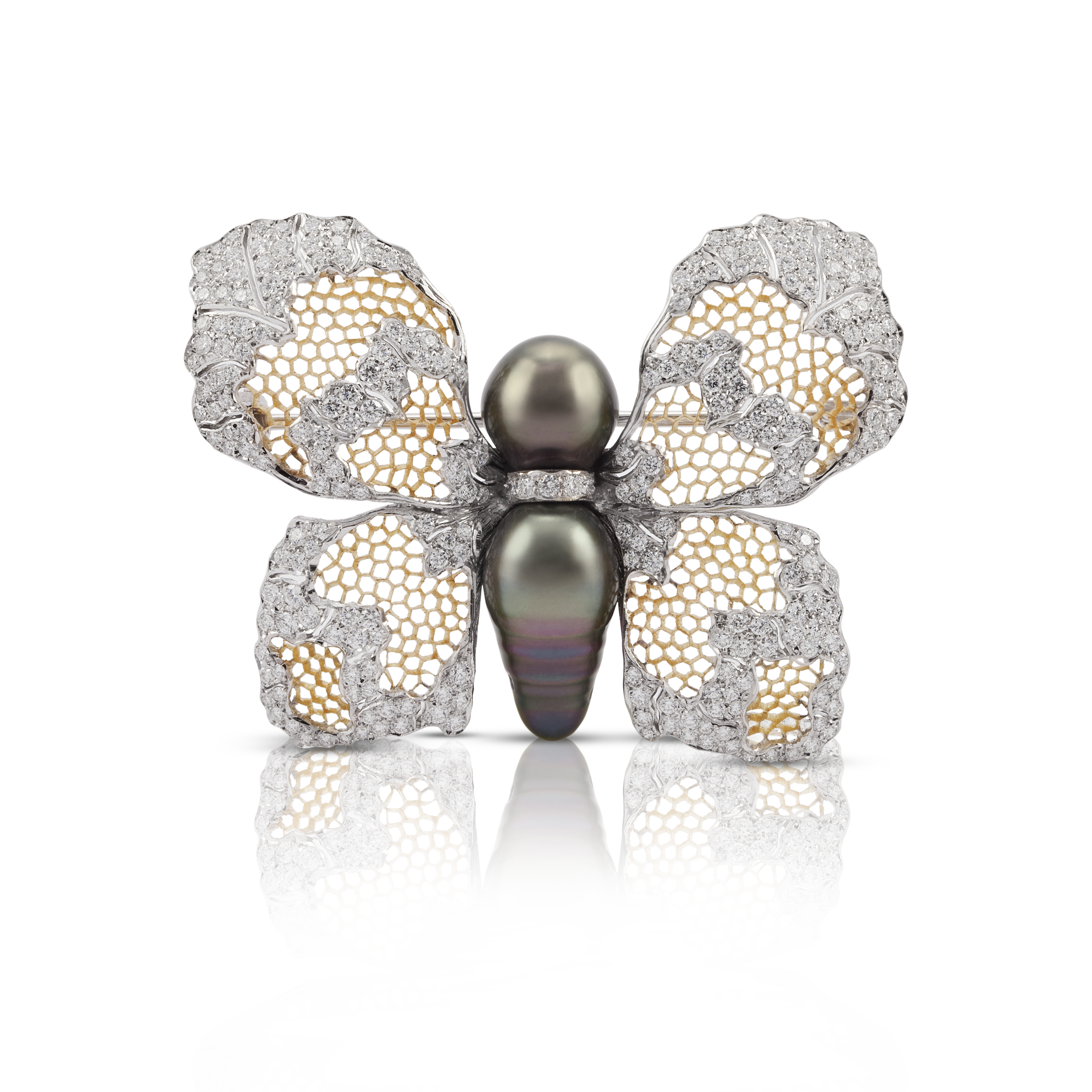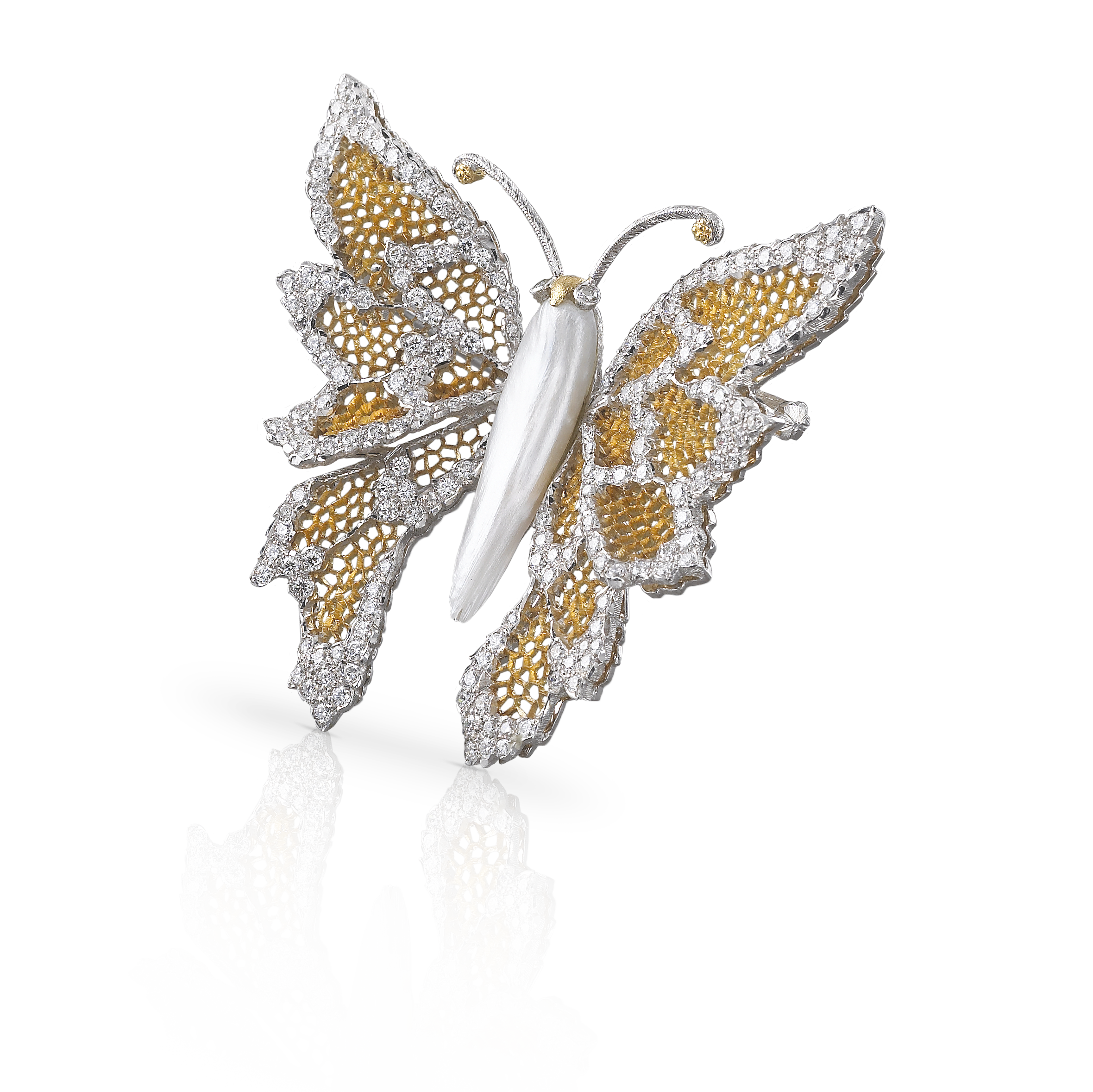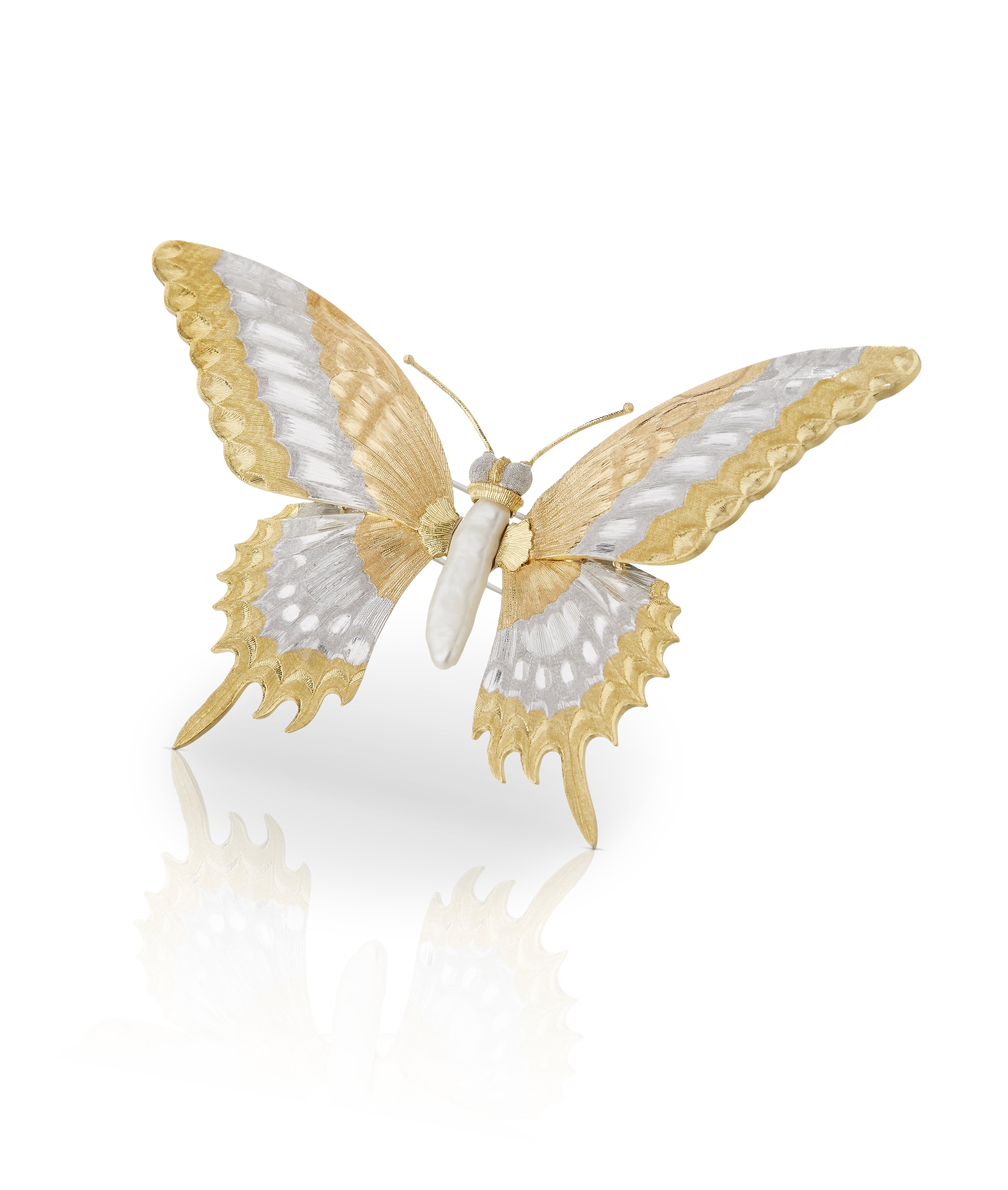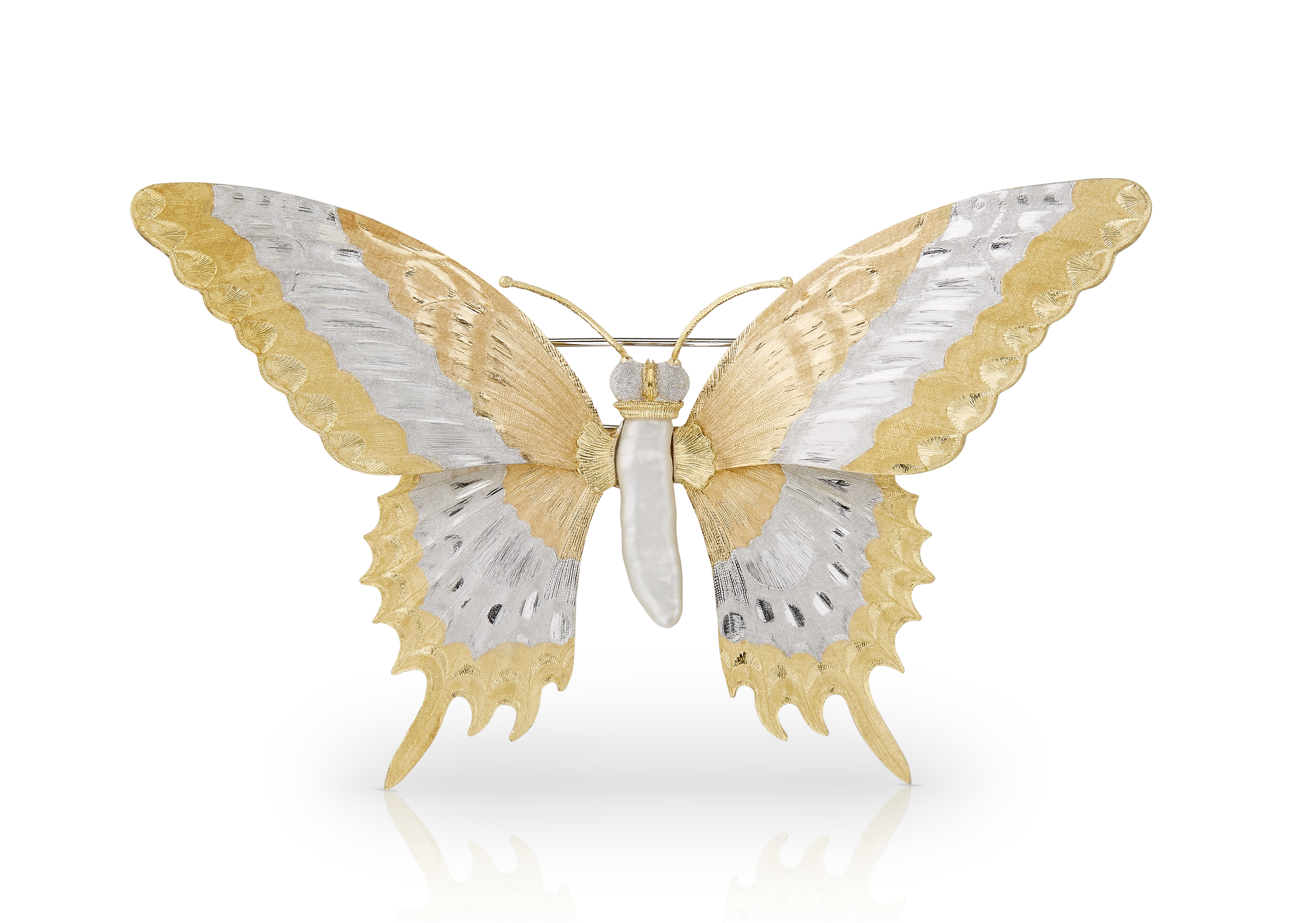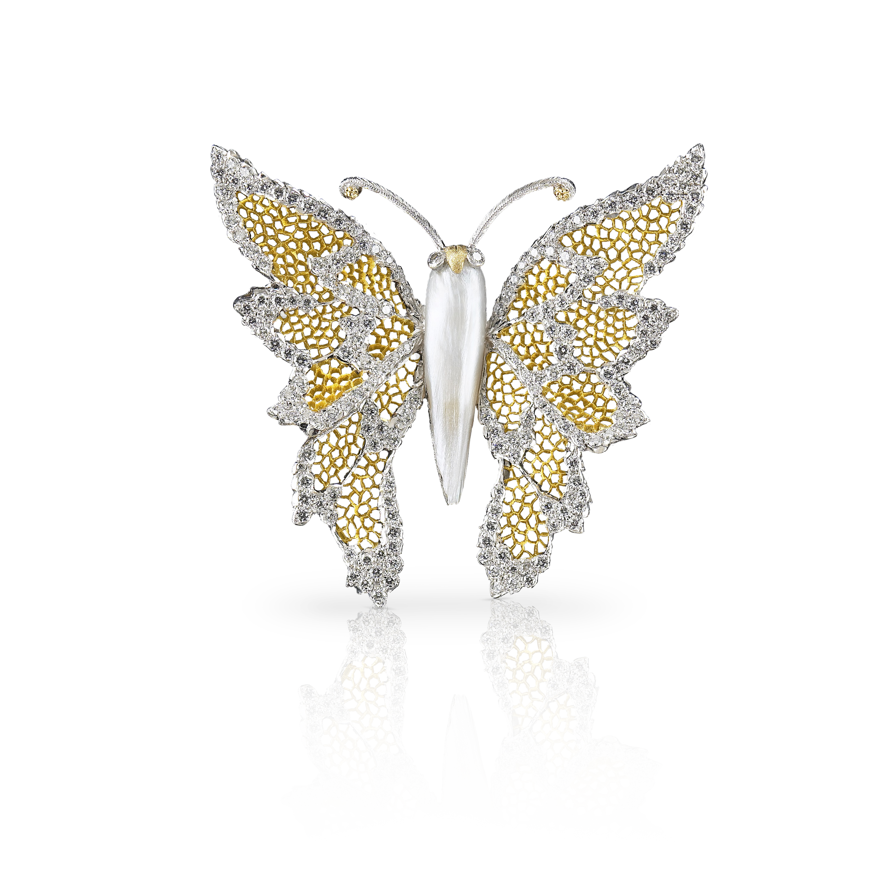 Broches papillon Buccellati en or gravé et diamants blancs, pièces uniques, prix sur demande.
